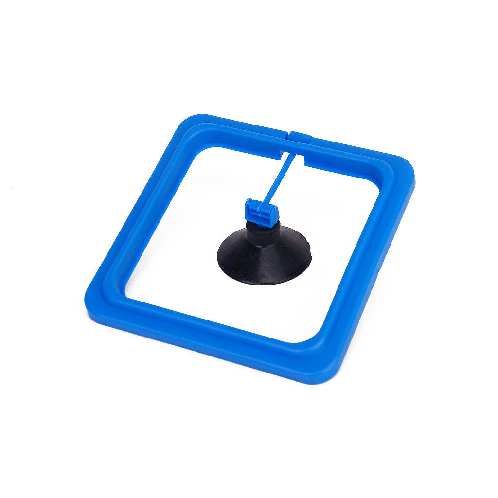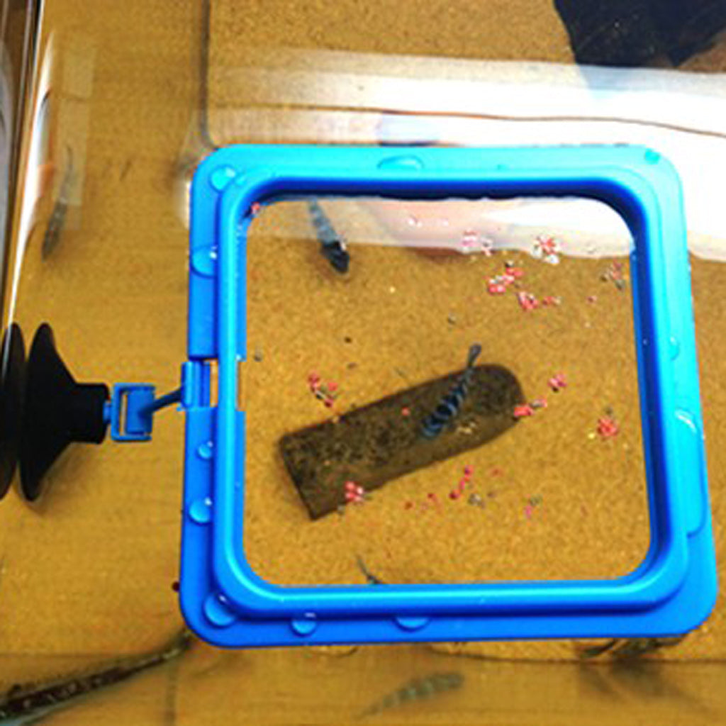 The fish feeder is a unique tool for making the feeding of flake foods and other floating foods. The fish feeder floats on the surface of the aquarium water and the other ends adhered to the inside surface of glass or acrylic aquariums.