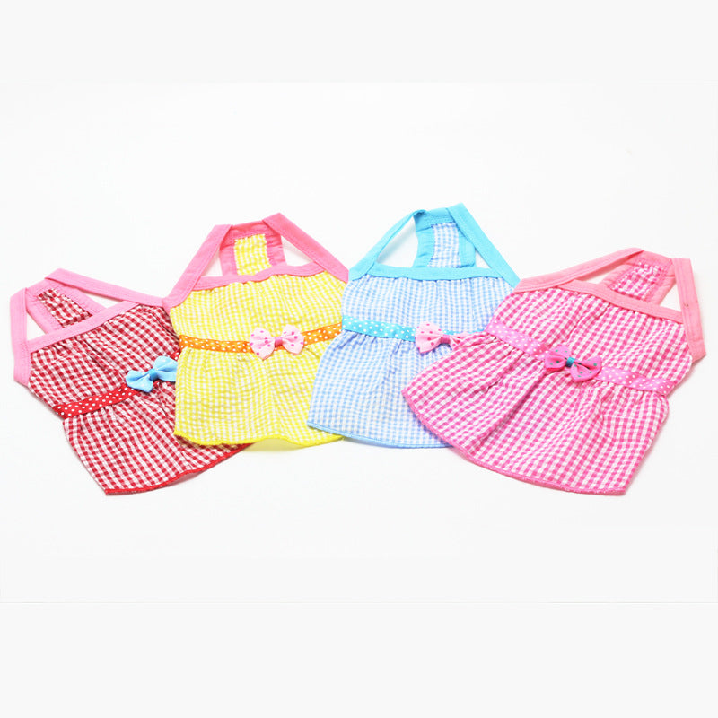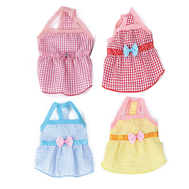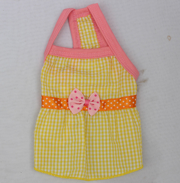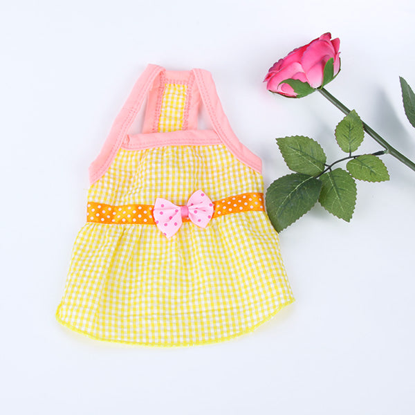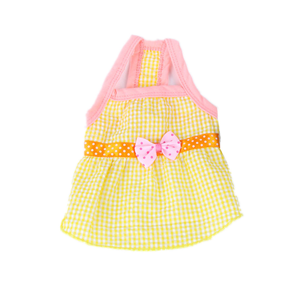 Puppy Dress Dog Vest T Shirt Plaid Summer Apparel Bowtie Costume Yellow-M