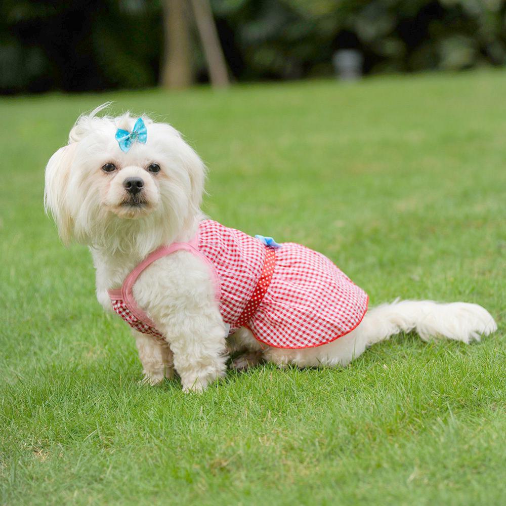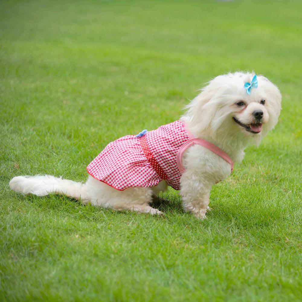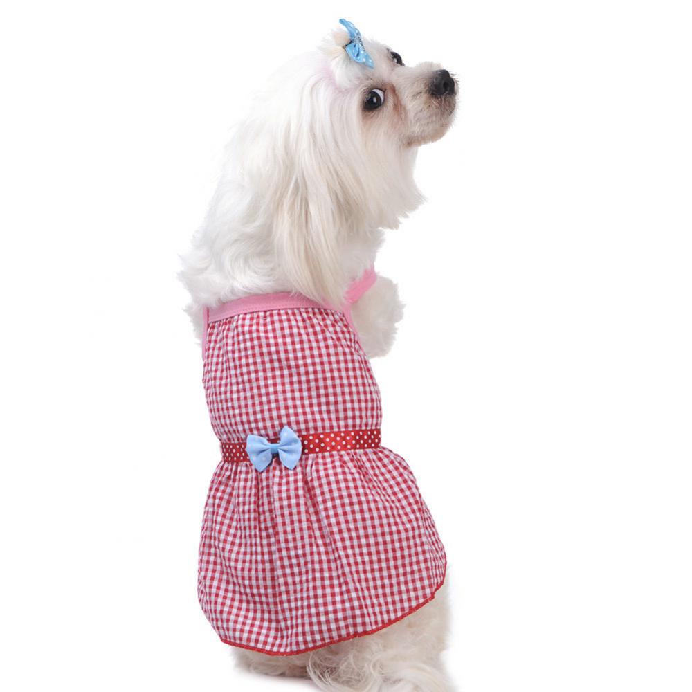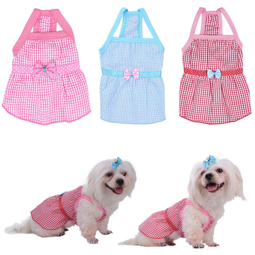 Puppy Dress Dog Vest T Shirt Plaid Summer Apparel Bowtie Costume Yellow-M