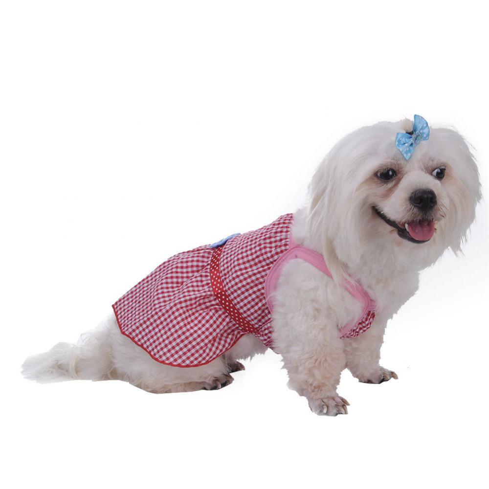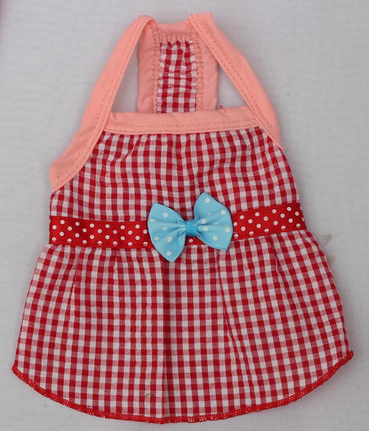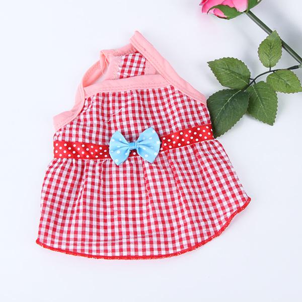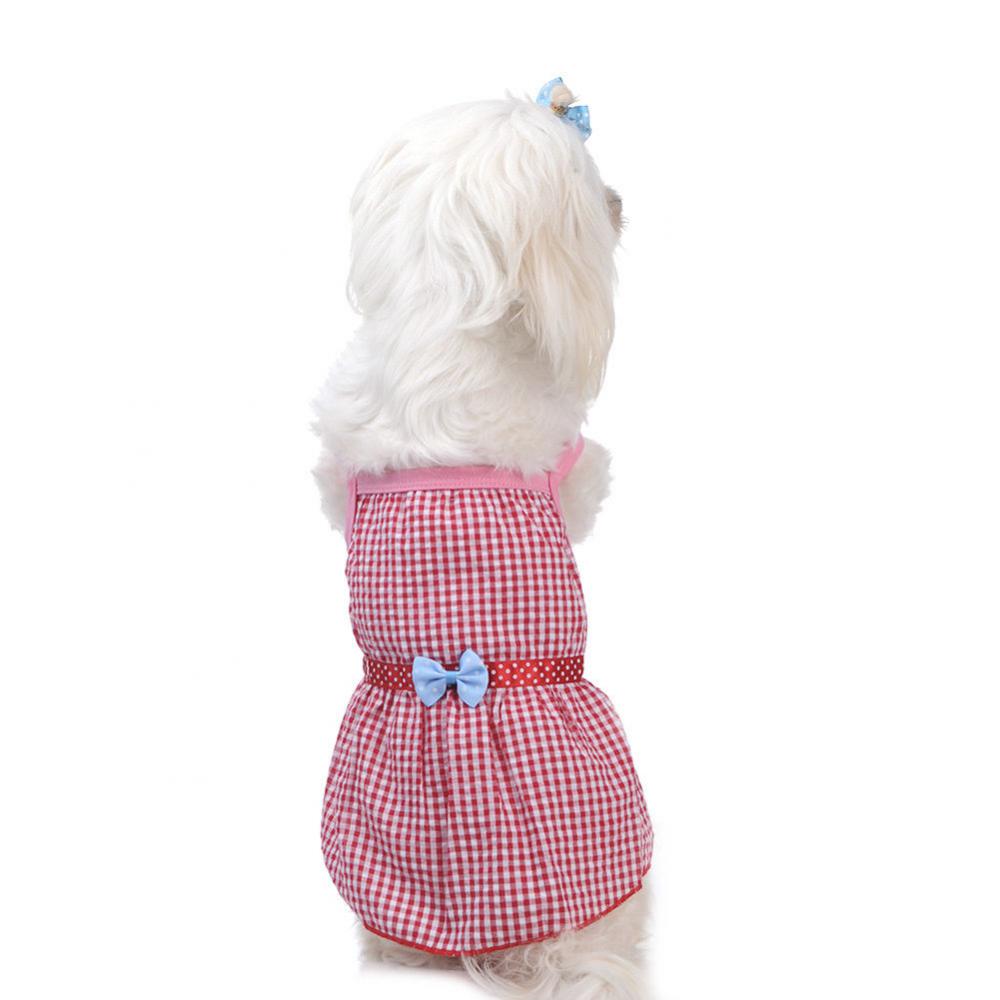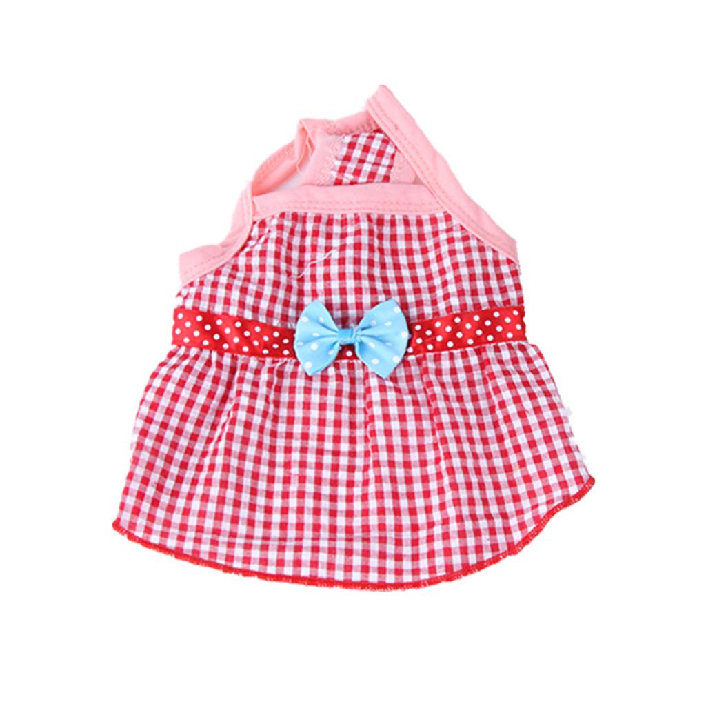 Puppy Dress Pet Dog Vest T Shirt Plaid Summer Apparel Bowtie Costume Red-M
