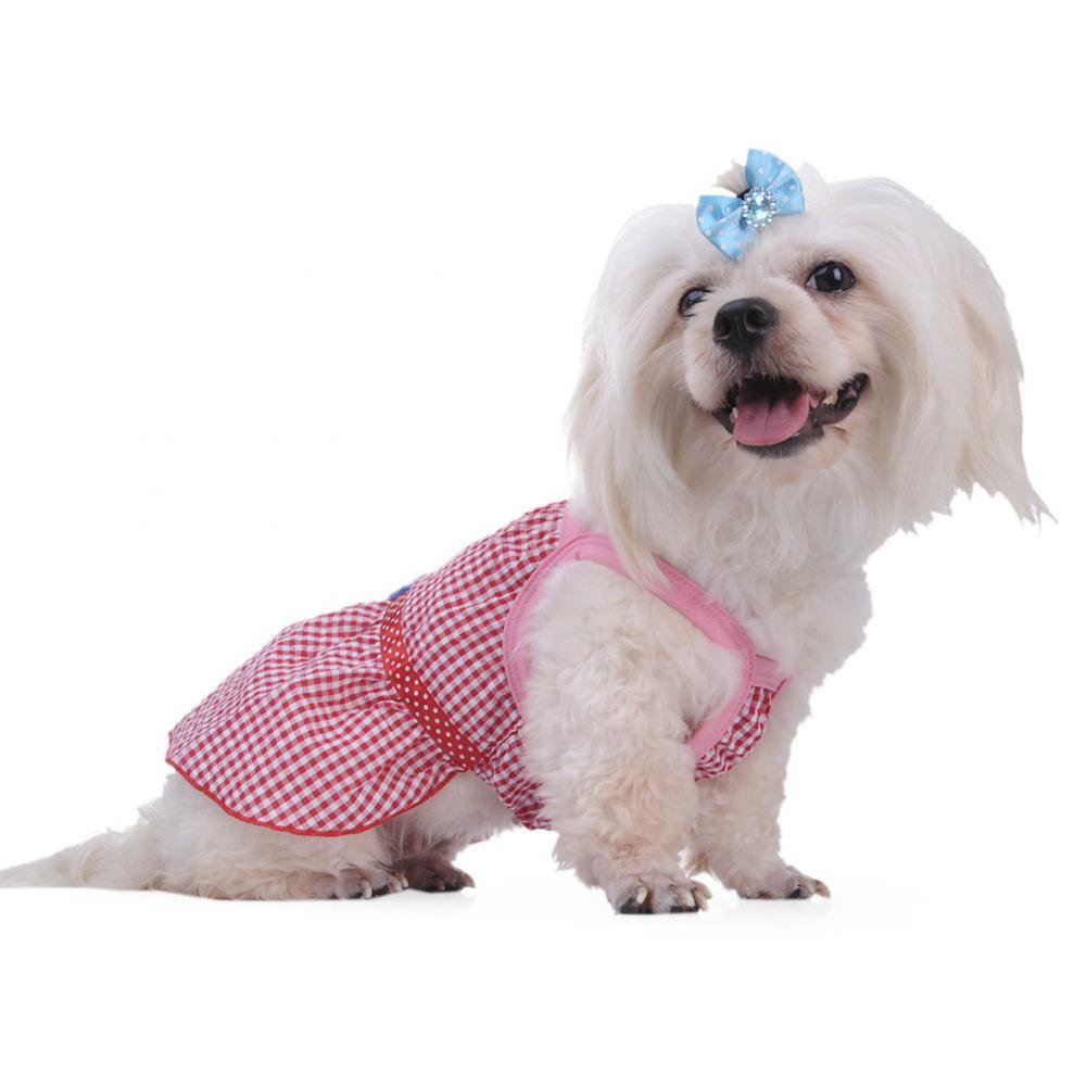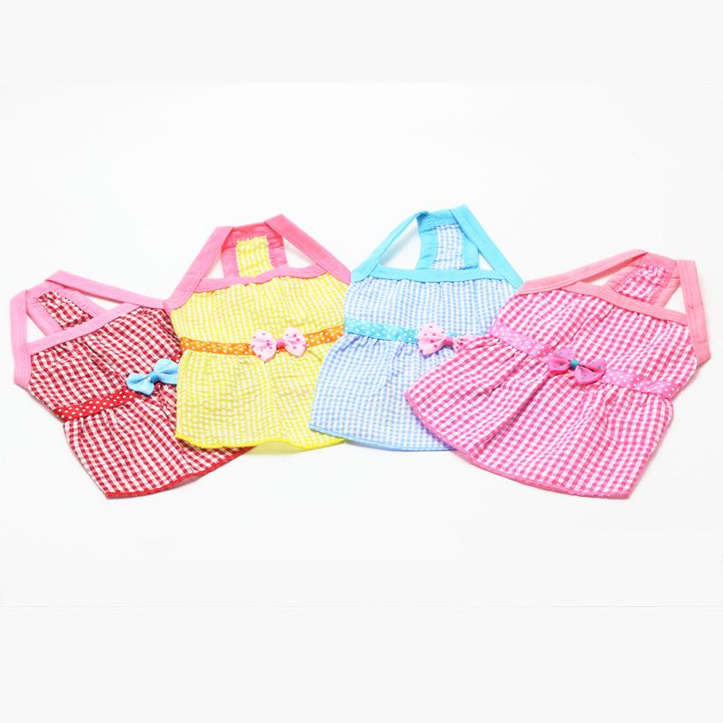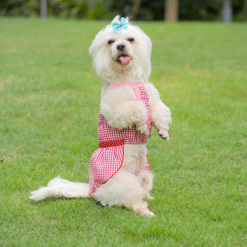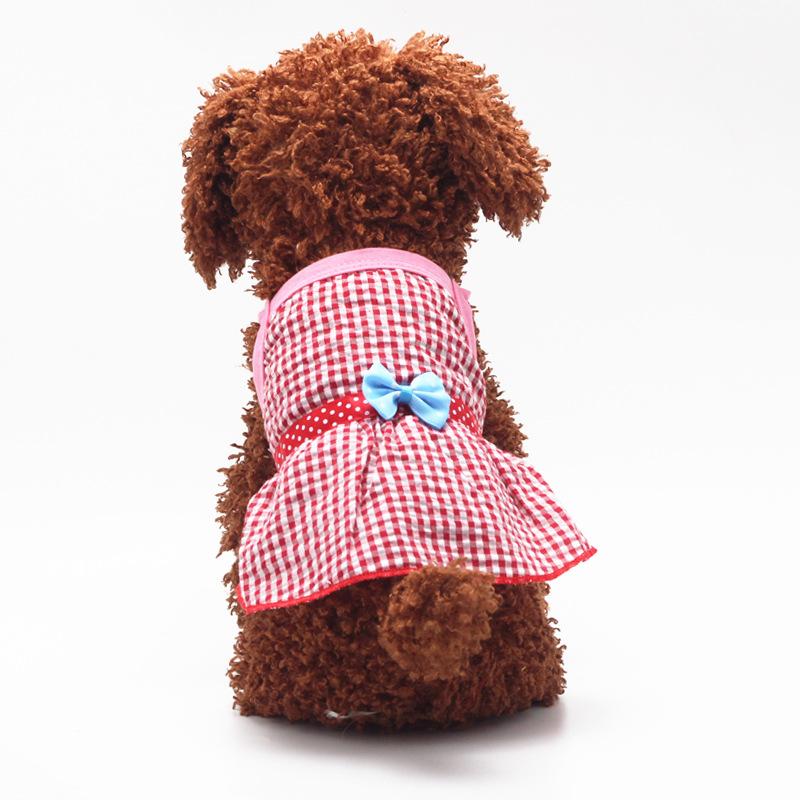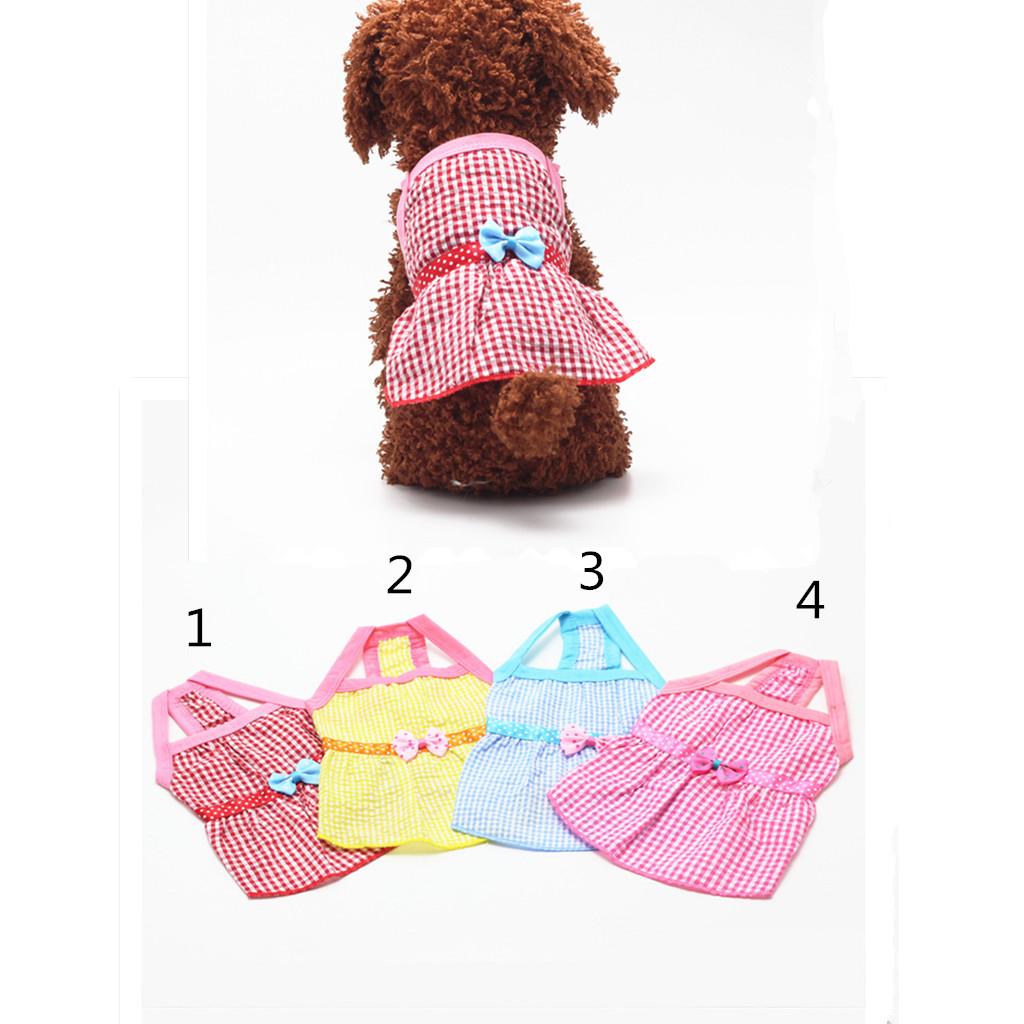 Puppy Dress Pet Dog Vest T Shirt Plaid Summer Apparel Bowtie Costume Red-M