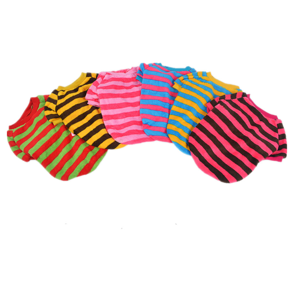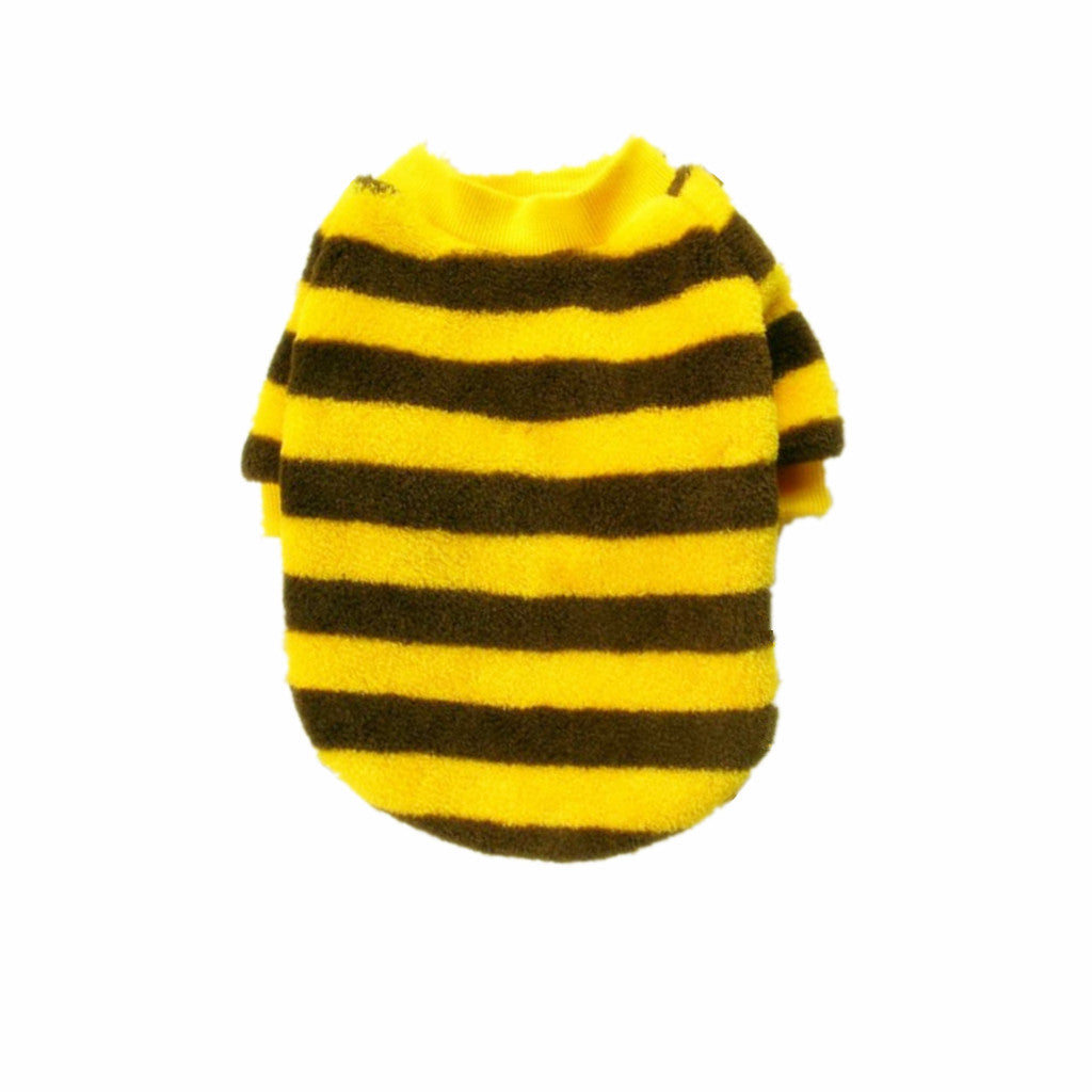 Puppy Pet Dog Cat Coral Fleece Yellow Brown Stripe Shirt Clothes Apparel XXS