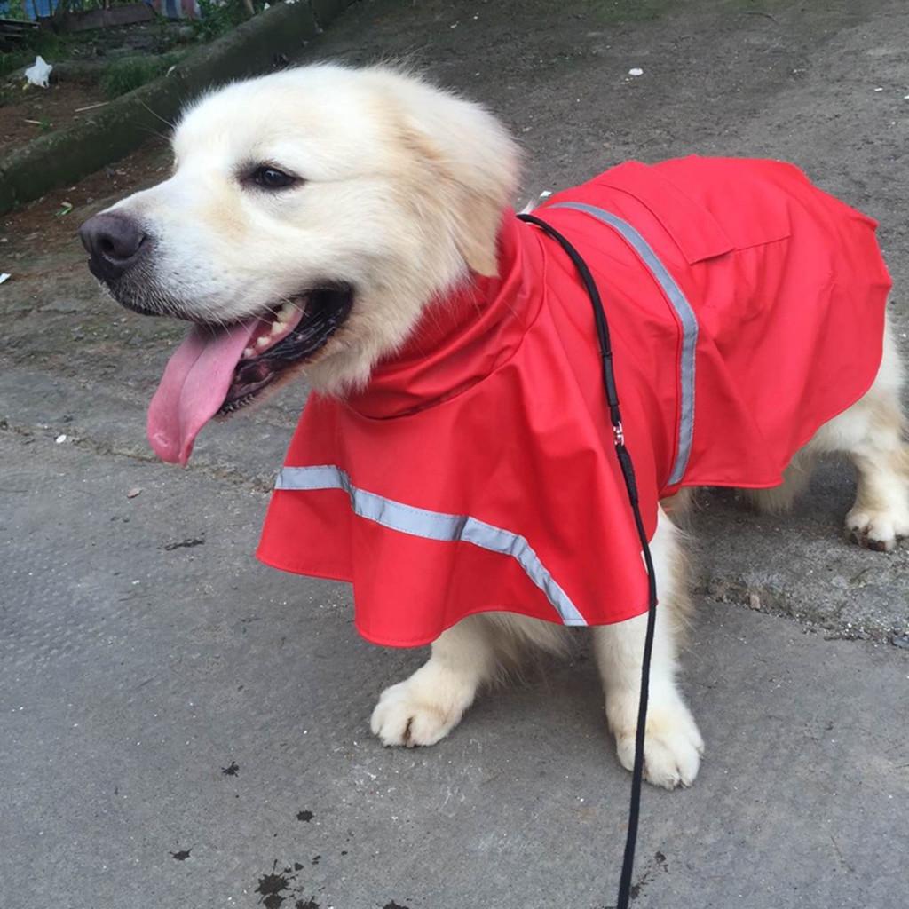 Reflective Dog Rain Coat Jacket Hooded Rainwear Poncho Slicker M Red