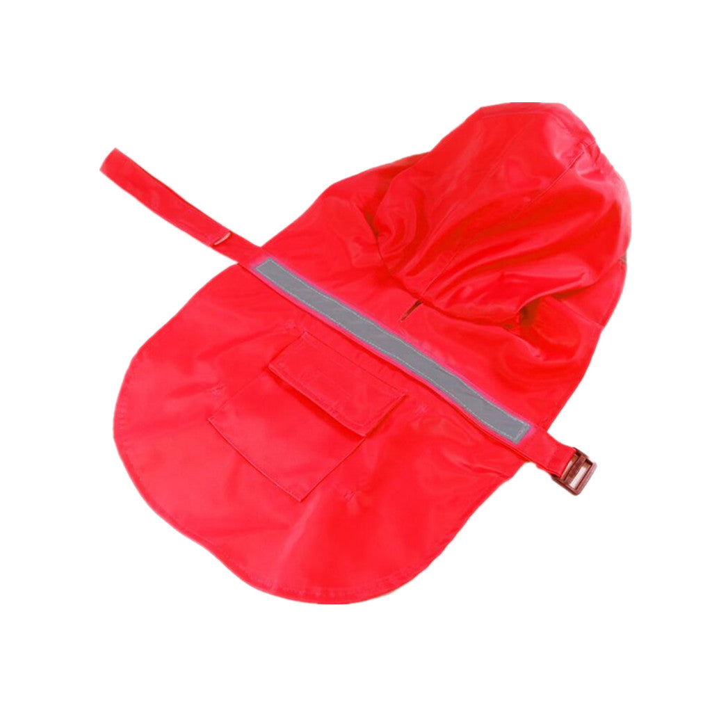 Reflective Dog Rain Coat Jacket Hooded Rainwear Poncho Slicker SM Red