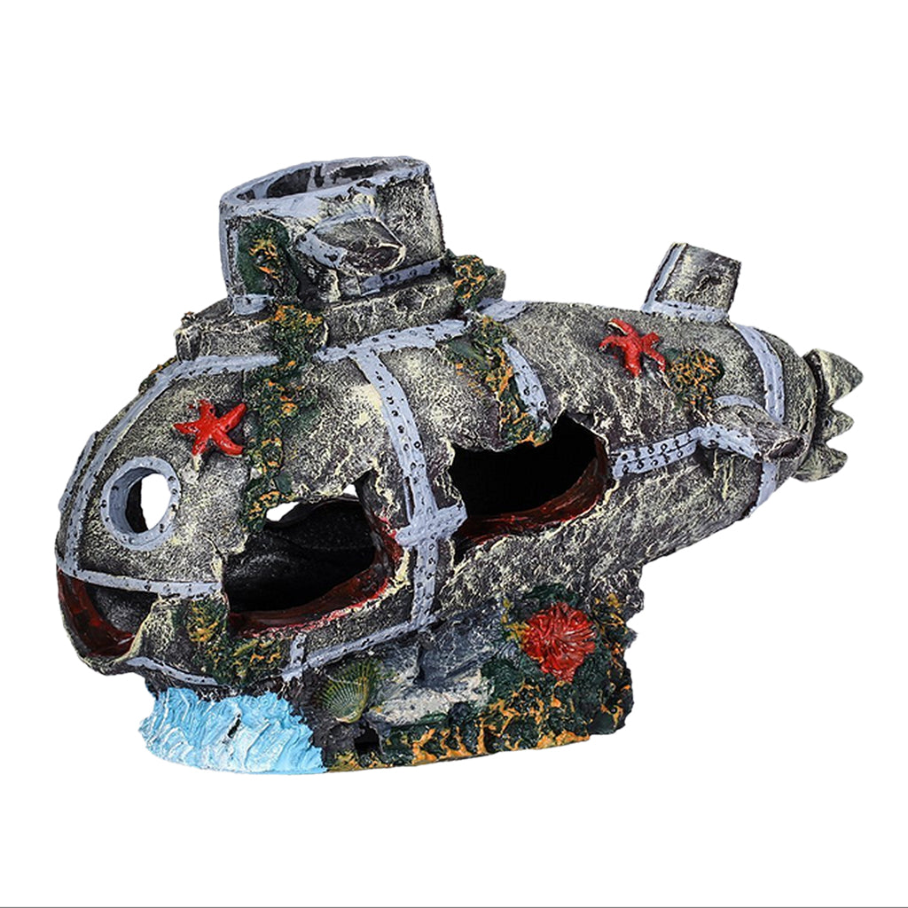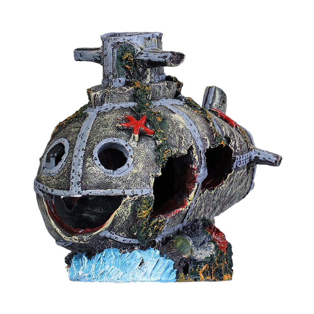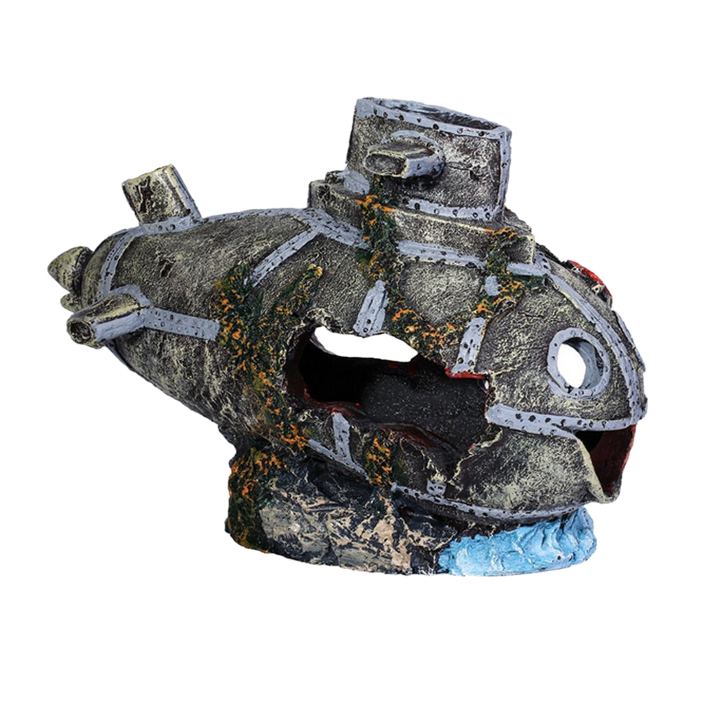 Resin Aquarium Submarine Simulation Wreck Ornament Fish Tank Decor-Black