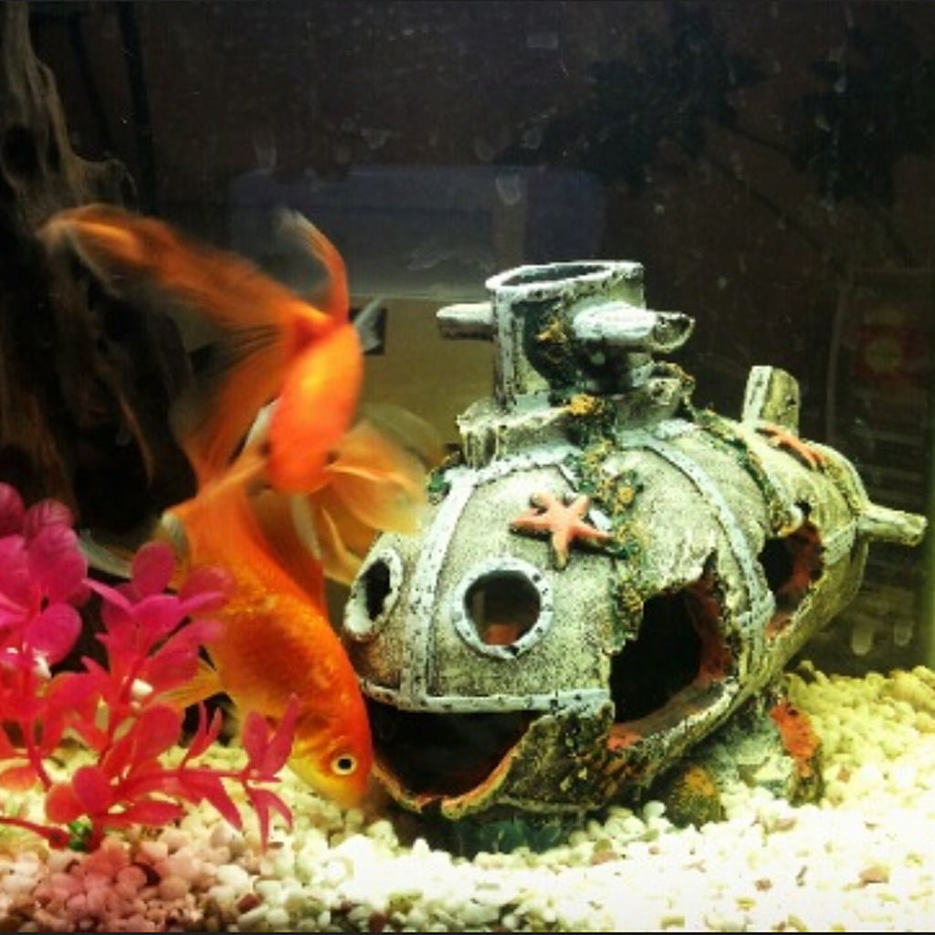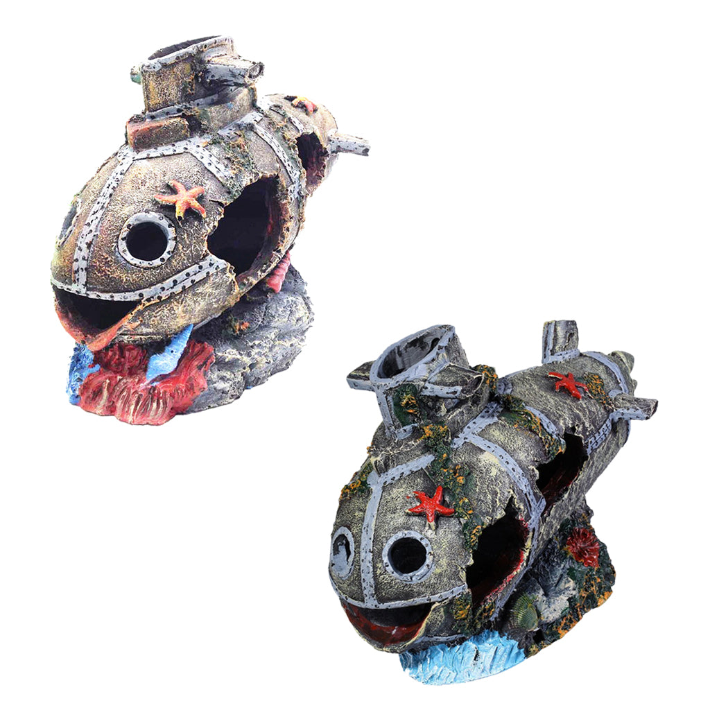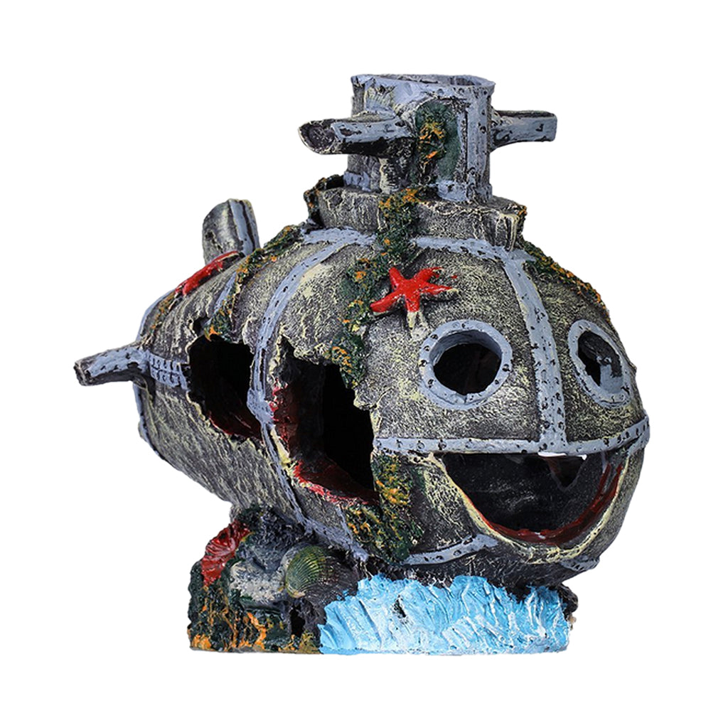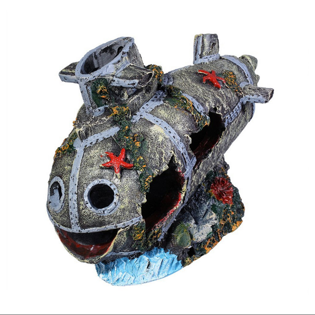 Resin Aquarium Submarine Simulation Wreck Ornament Fish Tank Decor-Black