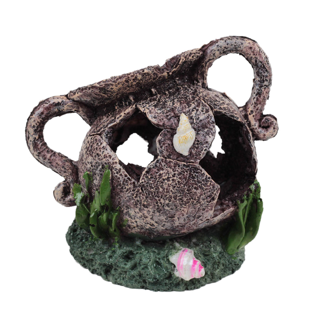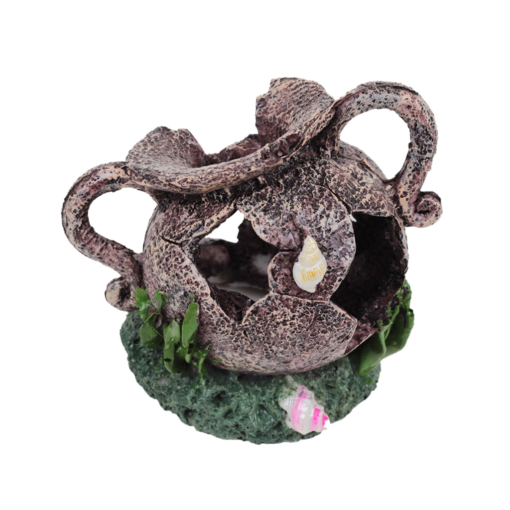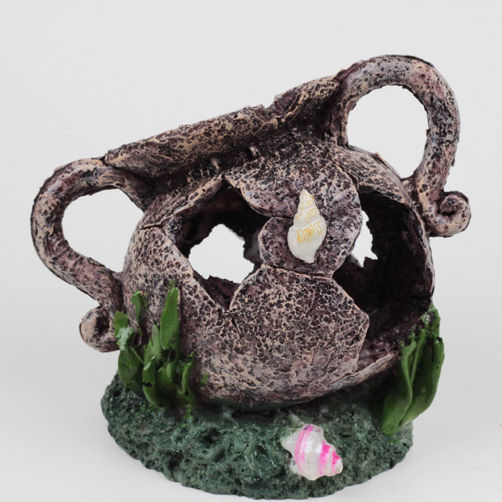 Resin Broken Vase Pot Fish Shrimp Hiding Cave Aquarium Ornament Decor
