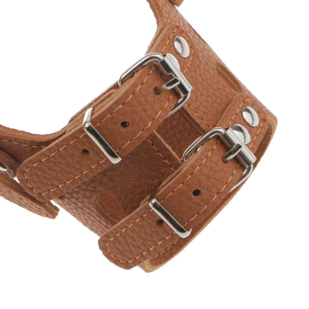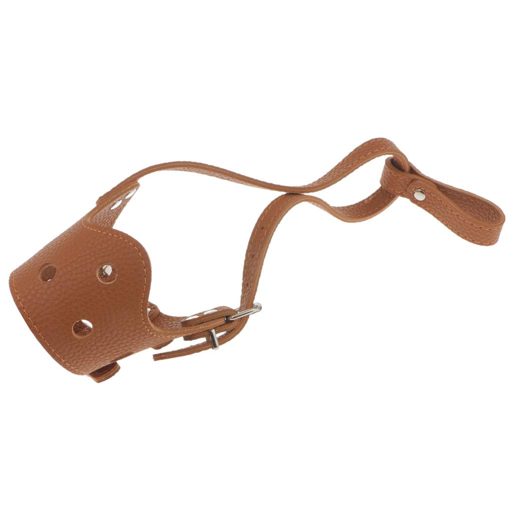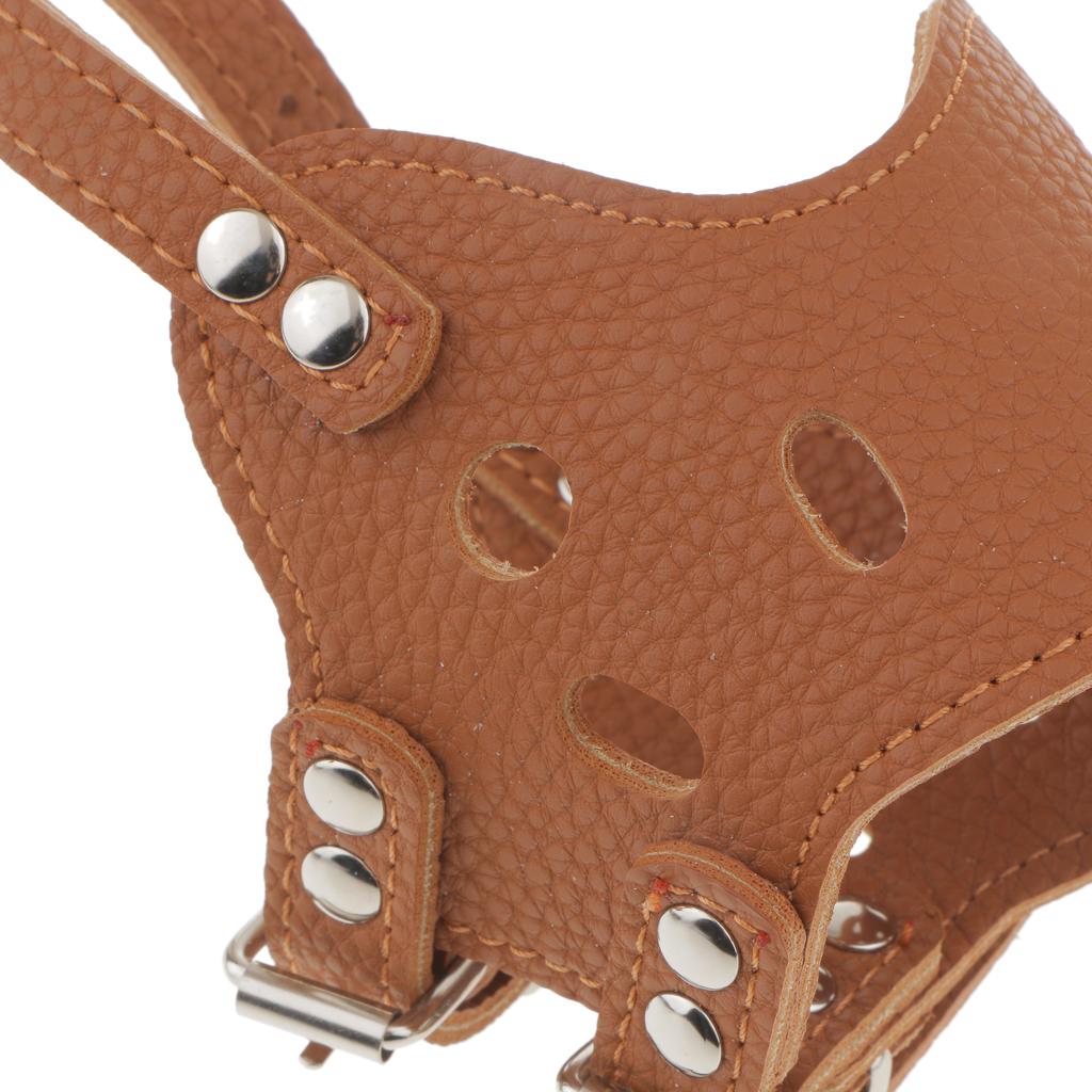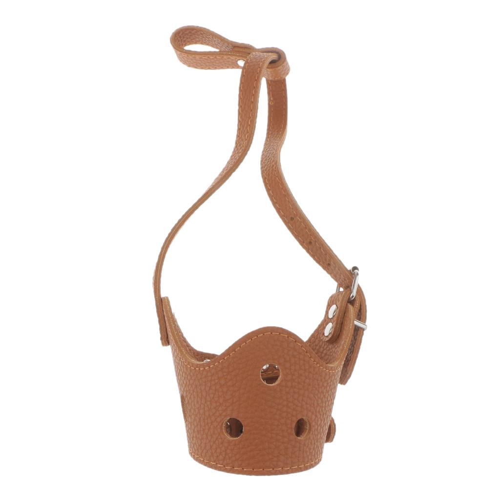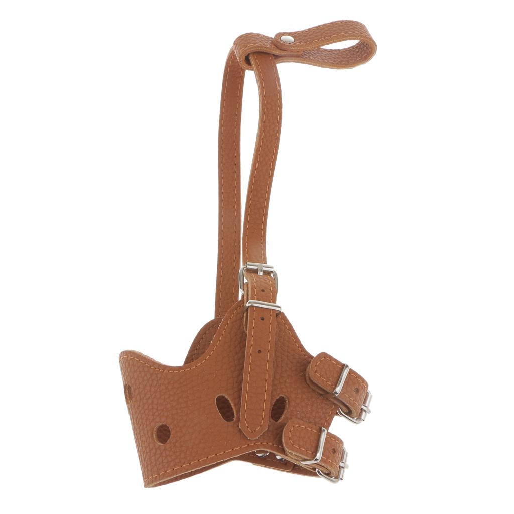 Safe Adjustable Soft Leather Dog Puppy Muzzle Basket Cage Anti-bark L Coffee