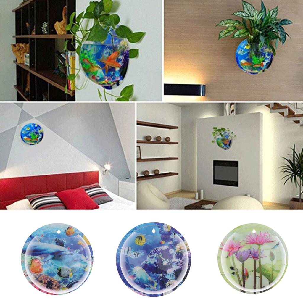 1 Piece Wall Mounted Fish Tank Bowl with Acessories
