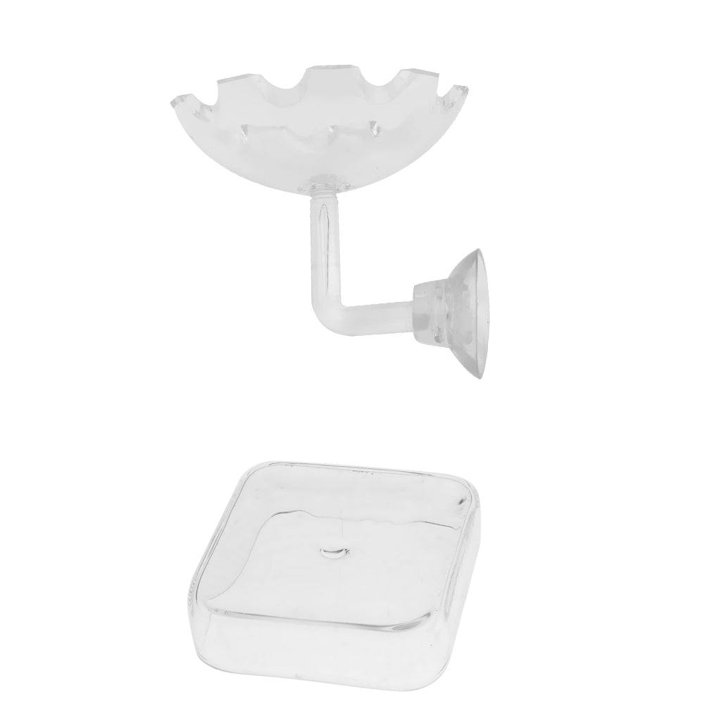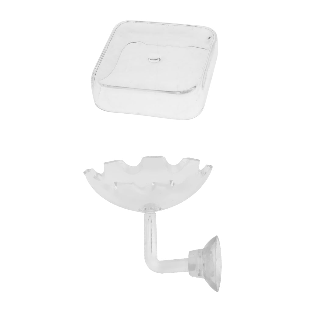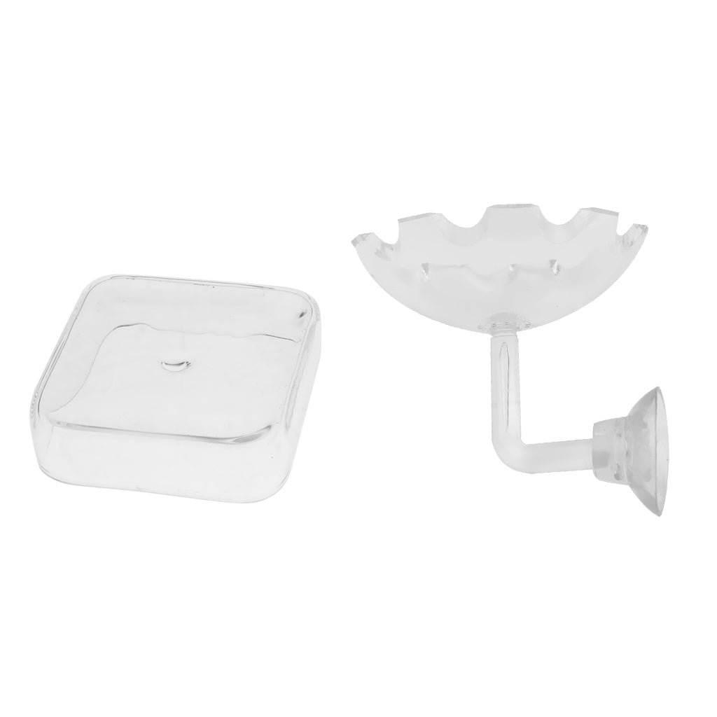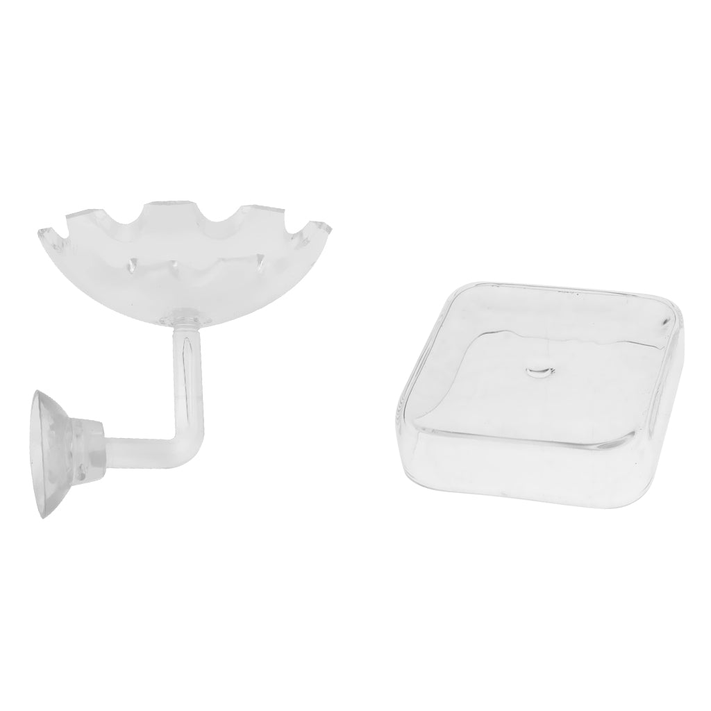 Package includes 2 style bowl, one is square shape, Size: Approx. 60x60mm/2.36x2.36inch, the other is flower shape can fixed on the fish Tank Wall. Size(DxH): Approx. 60x50mm/2.36x1.97inch, Perfect for all kinds of Aquarium, fish tank.