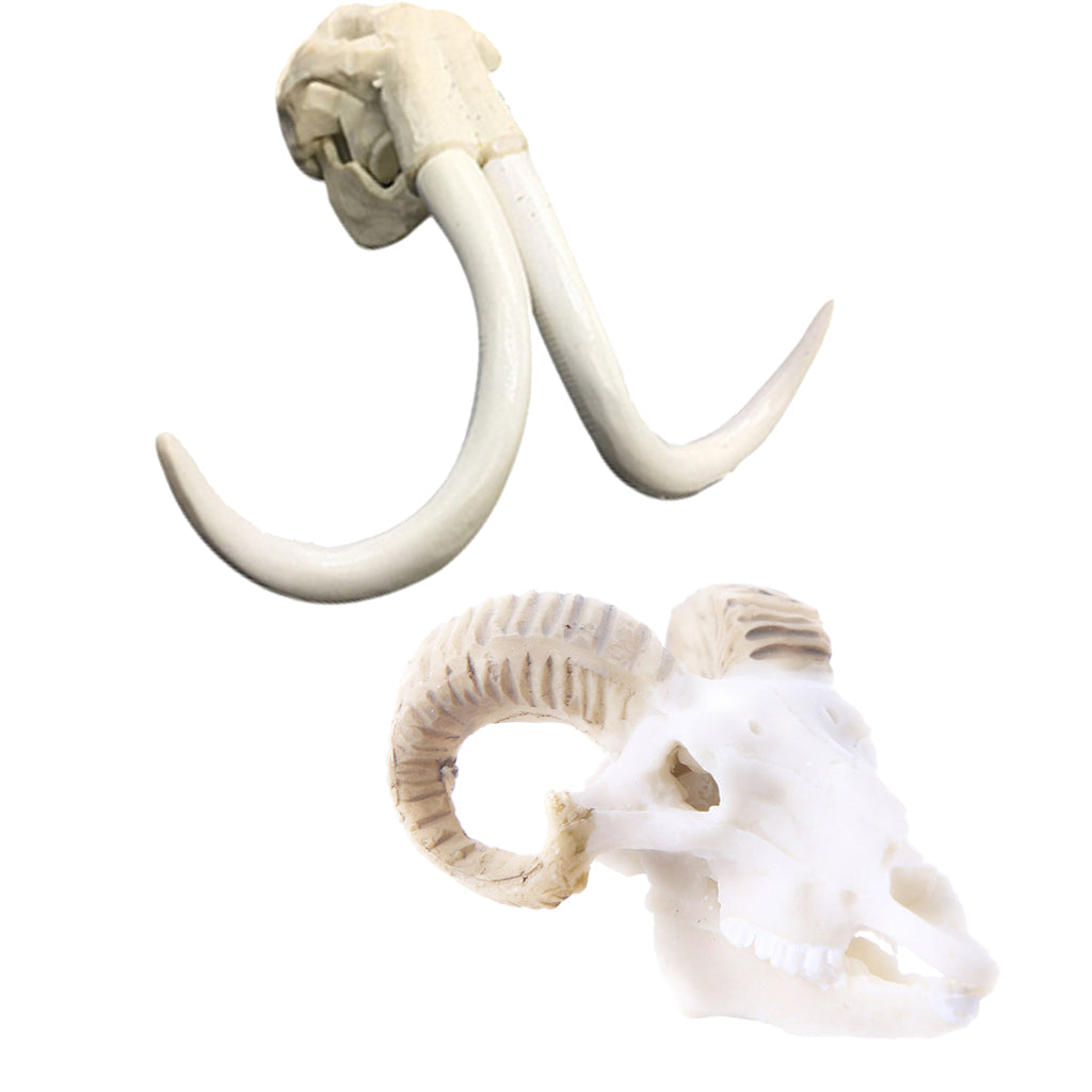 Quantity: 2Pcs, Material: Resin, Elephant Skull Size: Approx. 9.5 x 9 x 3.5cm/ 3.74 x 3.54 x 1.38inch, Goat Skull Size: Approx. 5 x 3 x 3.7cm/2 x 1.2 x 1.45 Inch