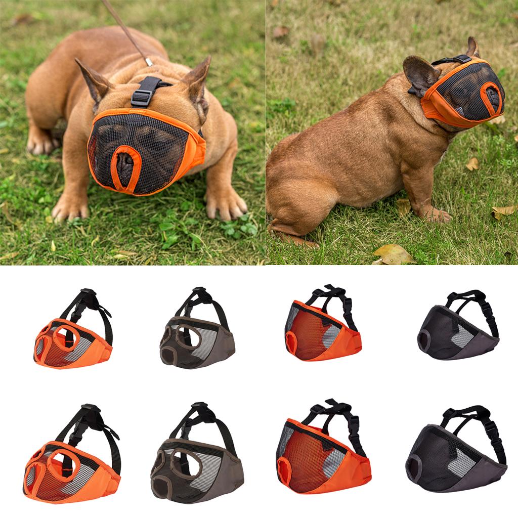 Short Nose Dog Breathable Mesh Muzzle For Pugs and Flat Faced Dogs Gray L
