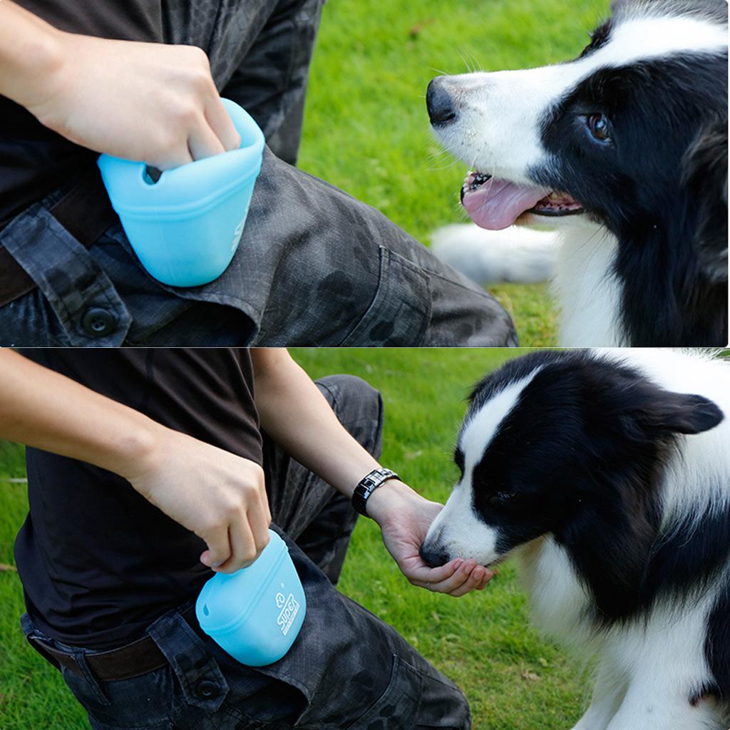 The training pounch equipped with magnet in the semi-closed opening, allows you to handily put in feeding food and snacks then take out to train your pet with automatic close.