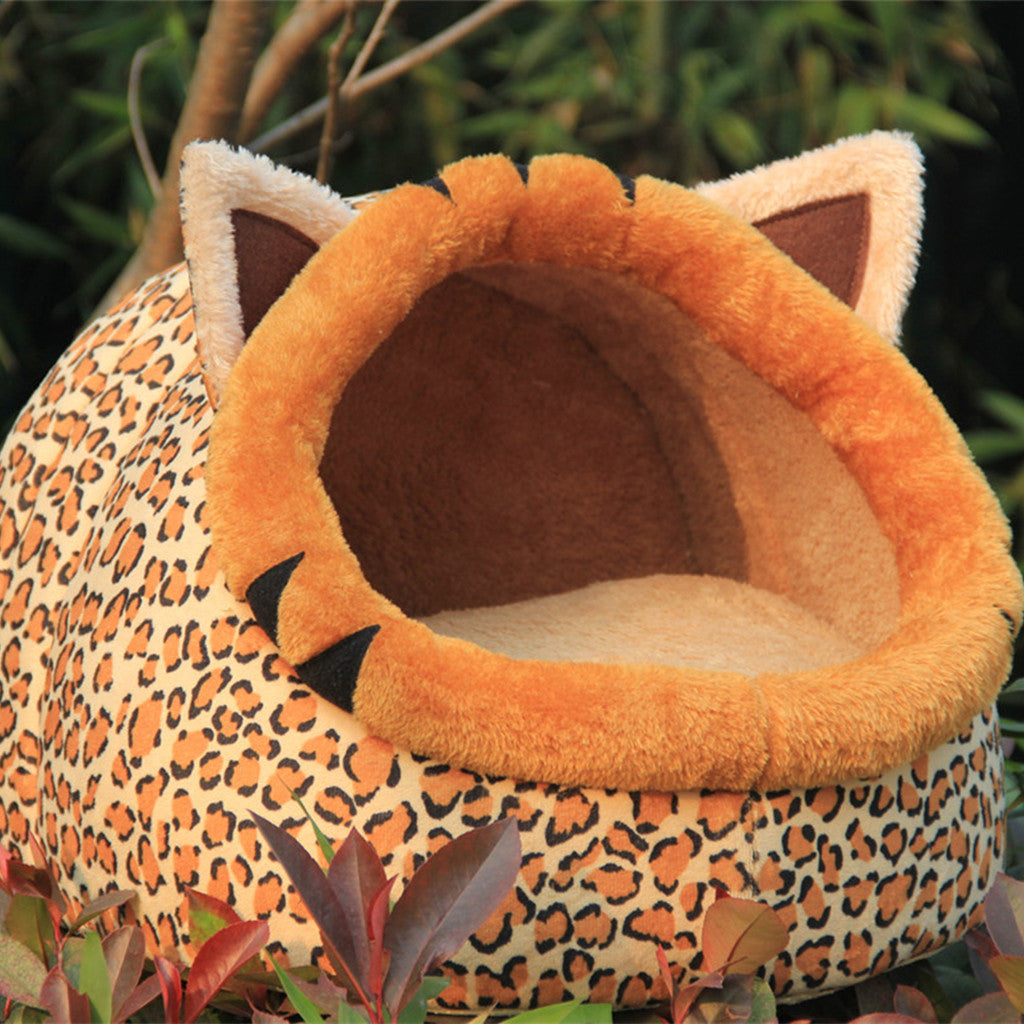 Soft Pet Kennel Cute Cheetah Warm Bed House Small Dog Cat Puppy House S