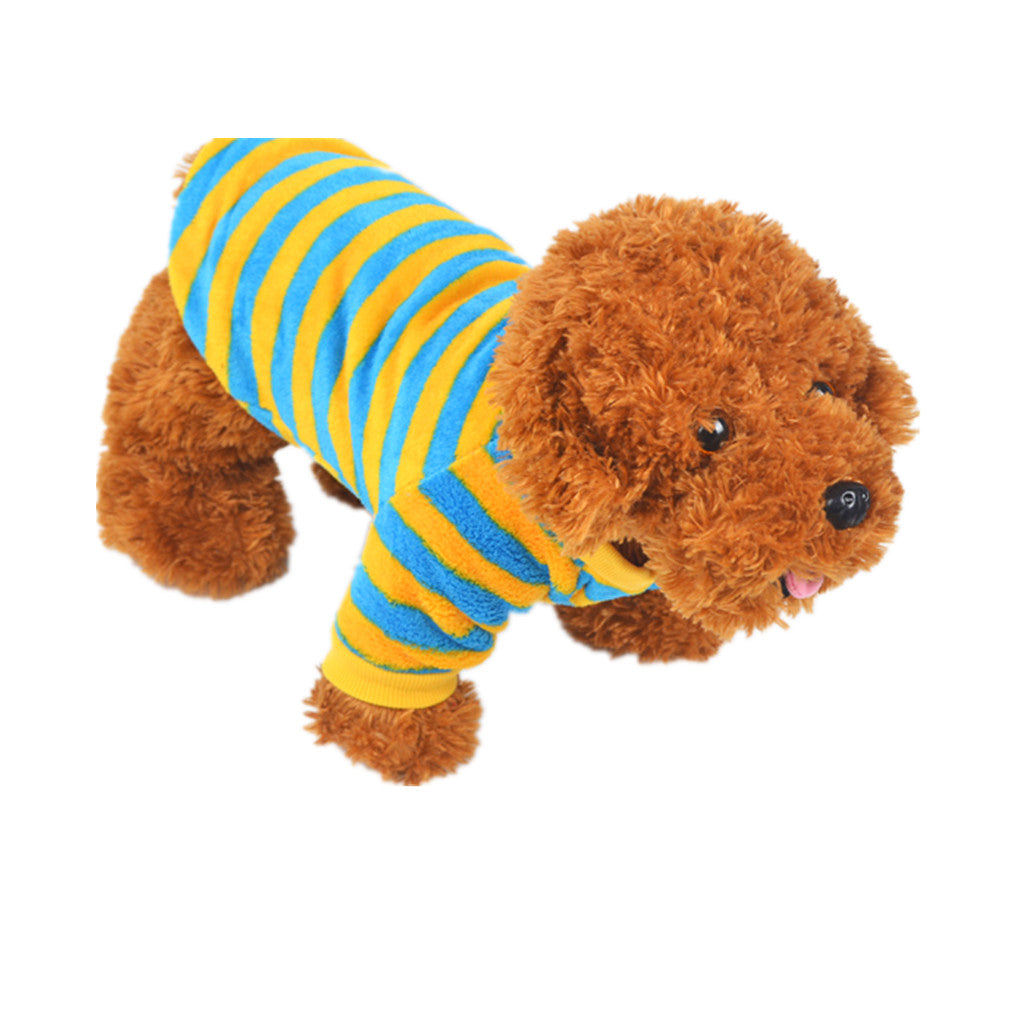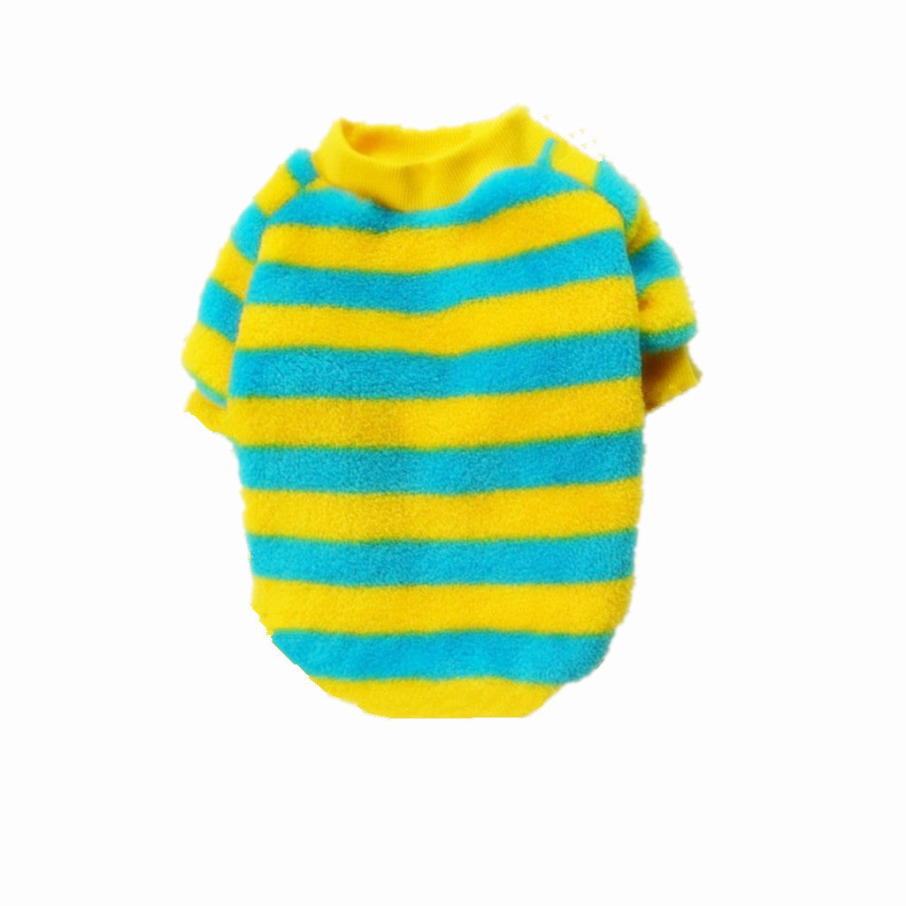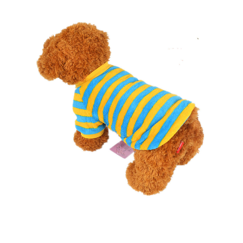 Soft Smooth Comfortable Warm Coral Fleece Dog Puppy Stripe Shirt Cloth Apparel Blue + Yellow M