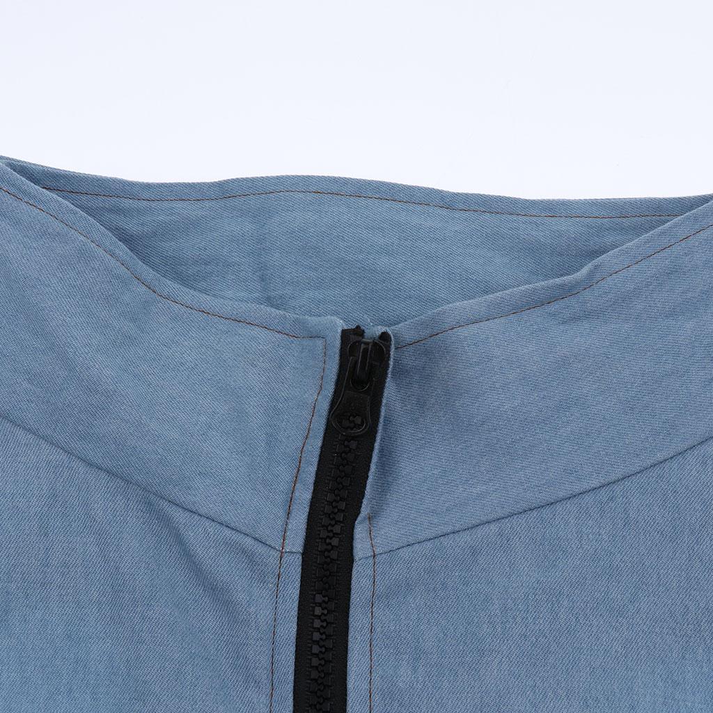 New D ring denim vest with back zipper design,easy to wear and take off.