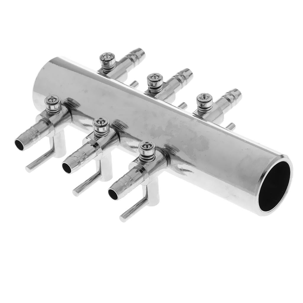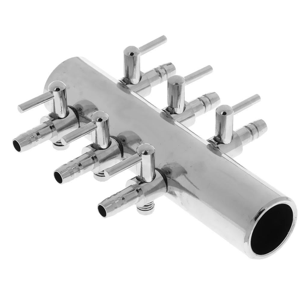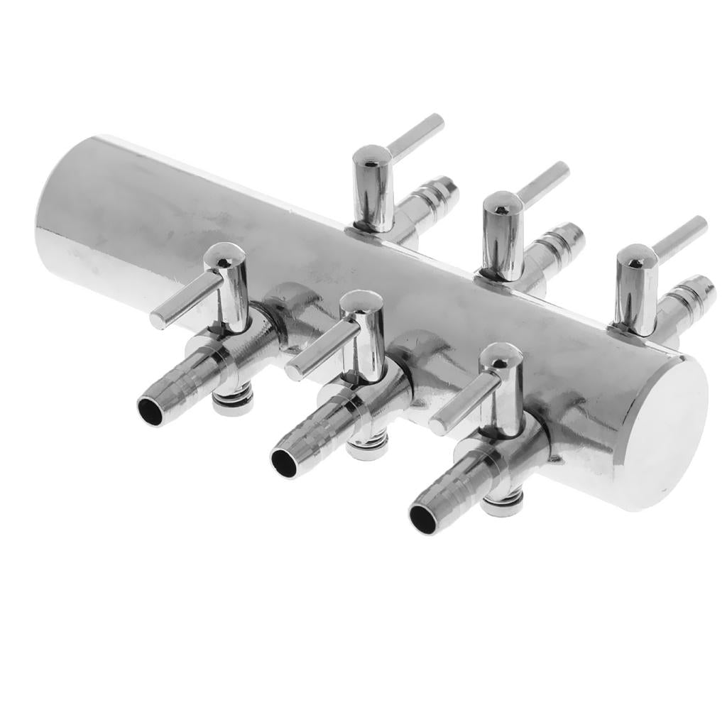 Aquarium air valve for high power air pumps, with 6 way individually controlled outlets.