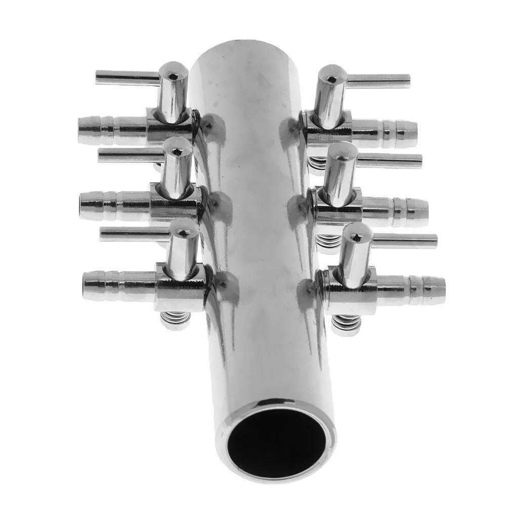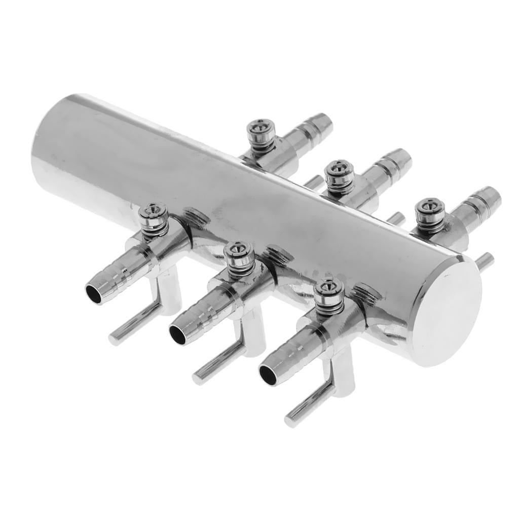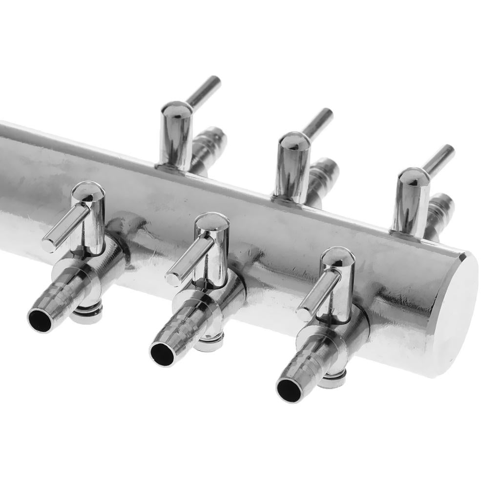 Aquarium air valve for high power air pumps, with 6 way individually controlled outlets.