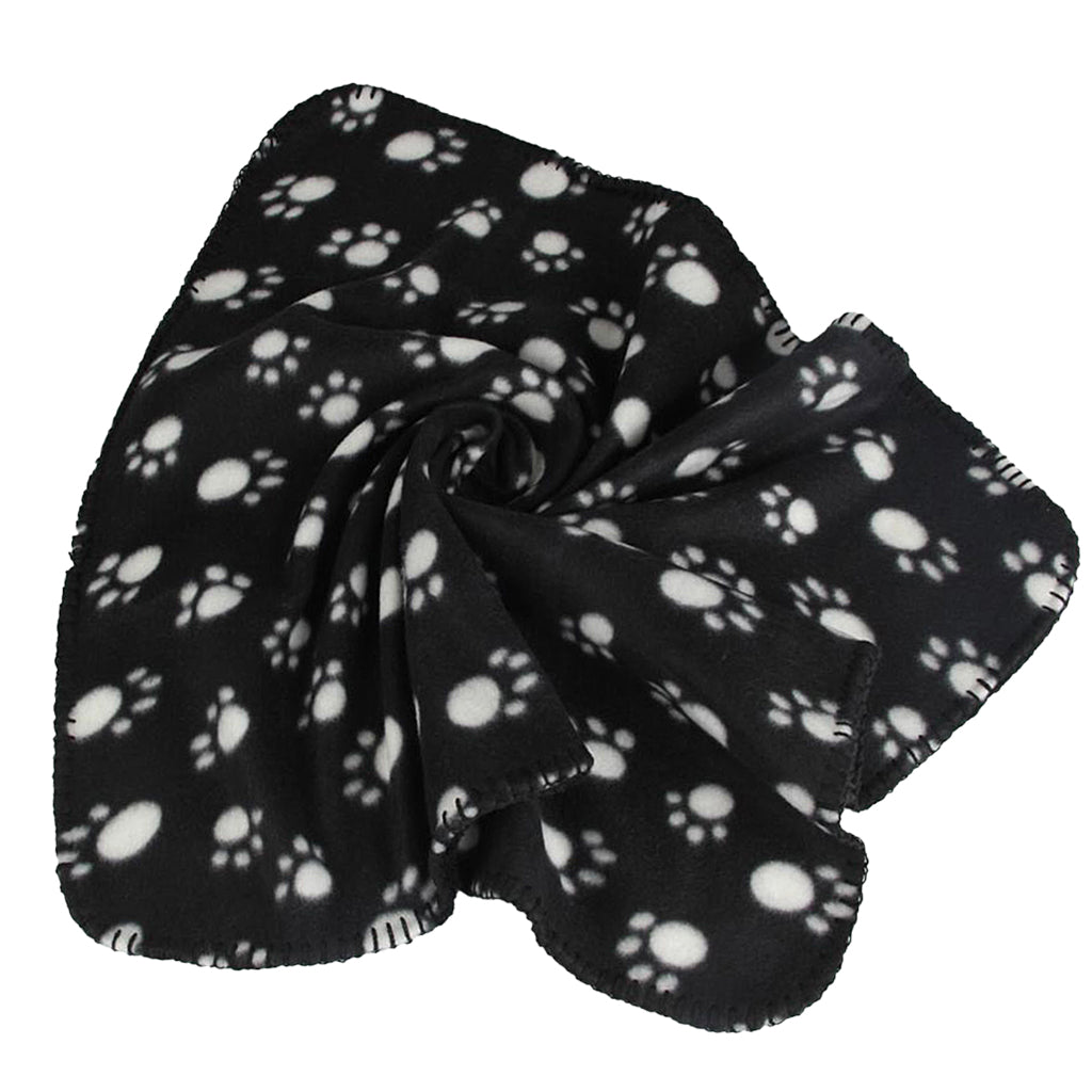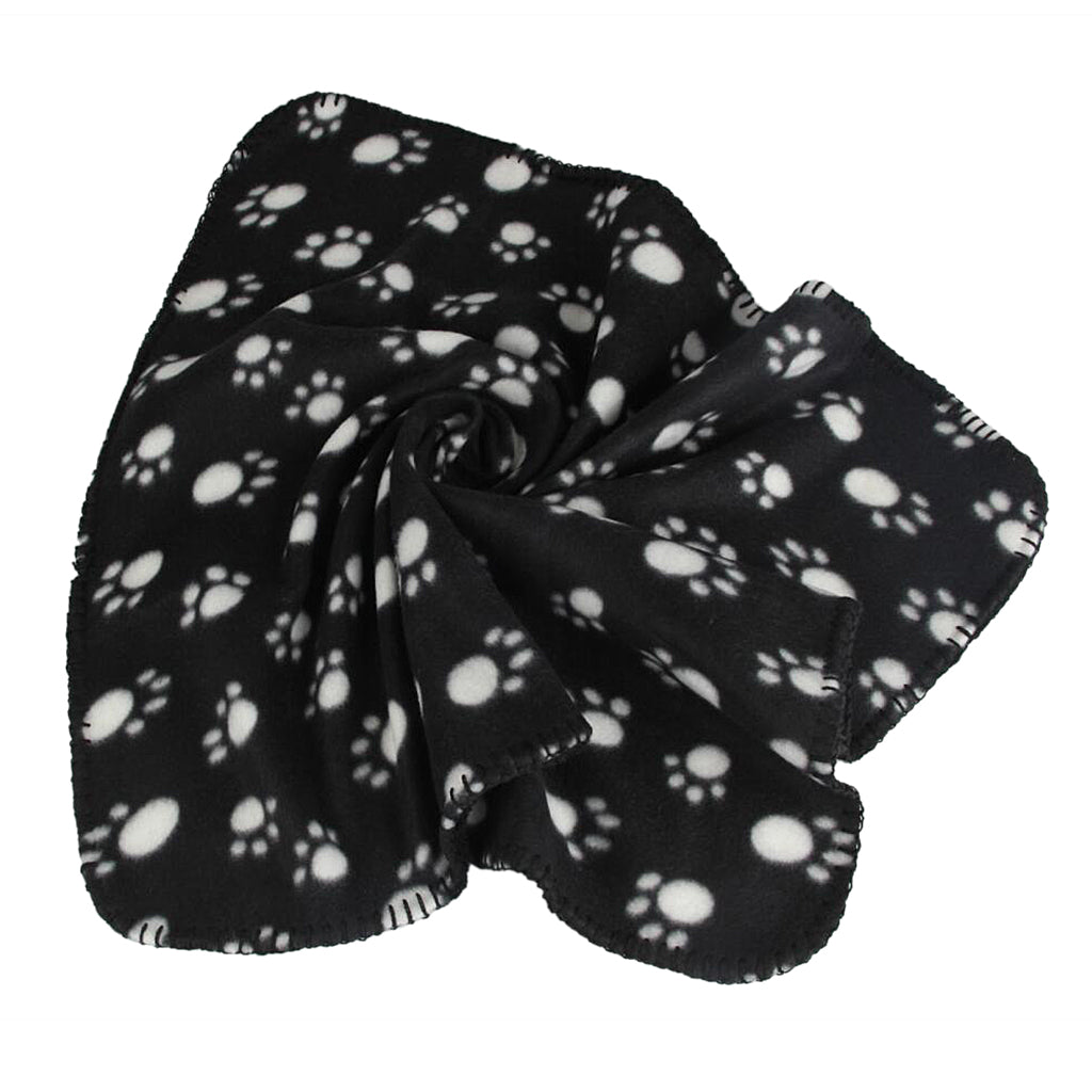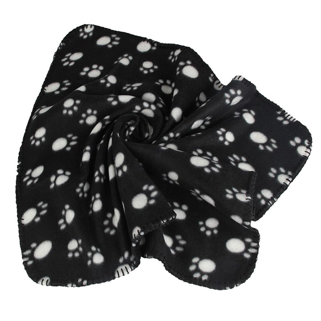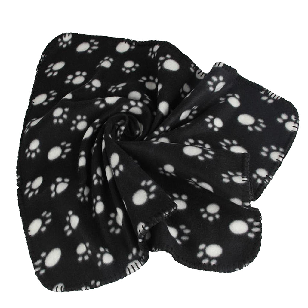 Warm Black Fleece Blanket Pet Dog Paw Print Pattern Soft Bed Mat--M