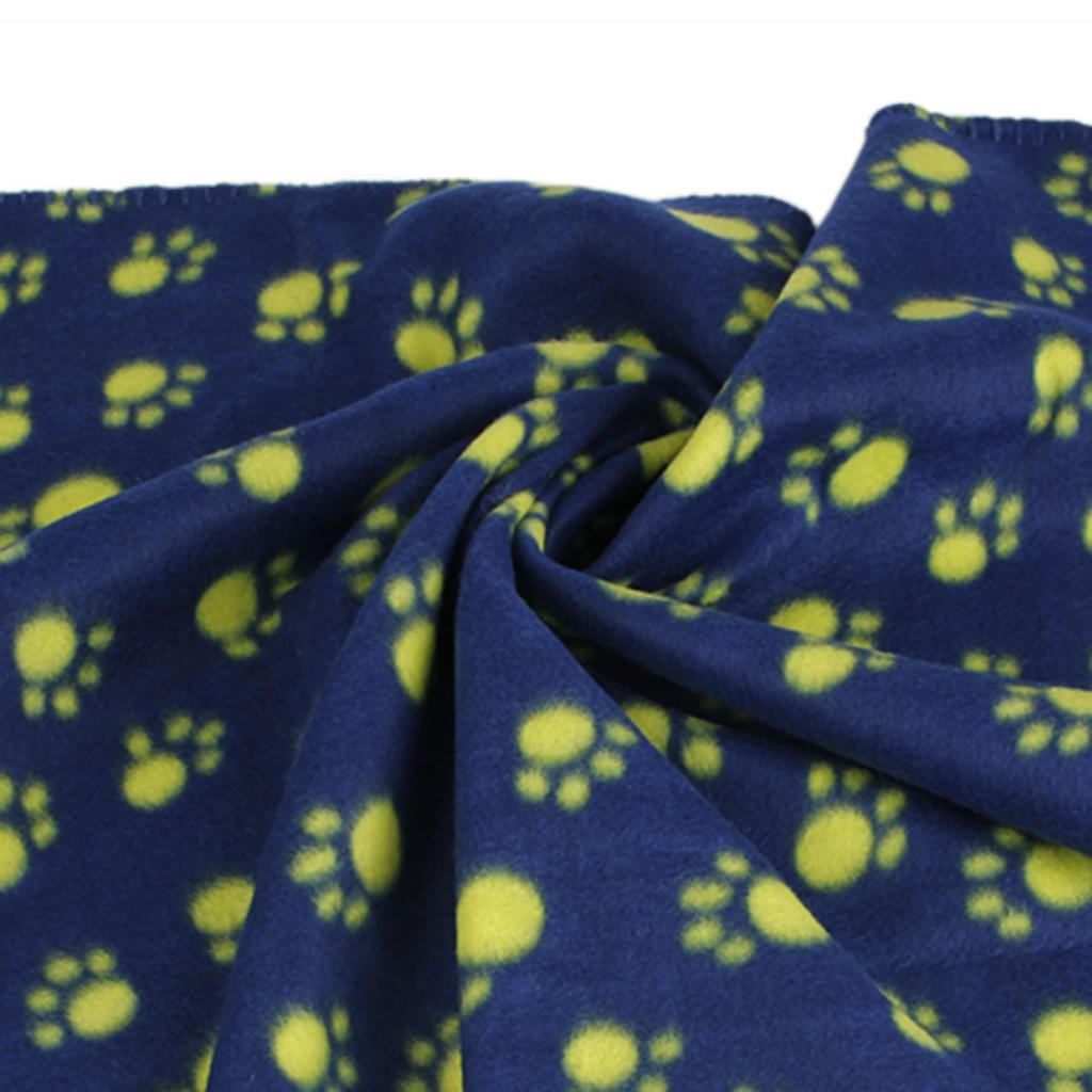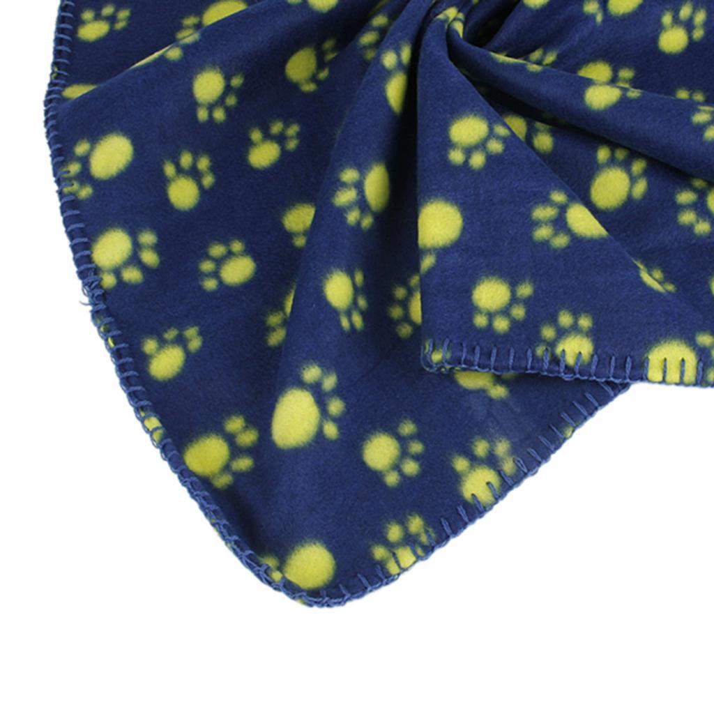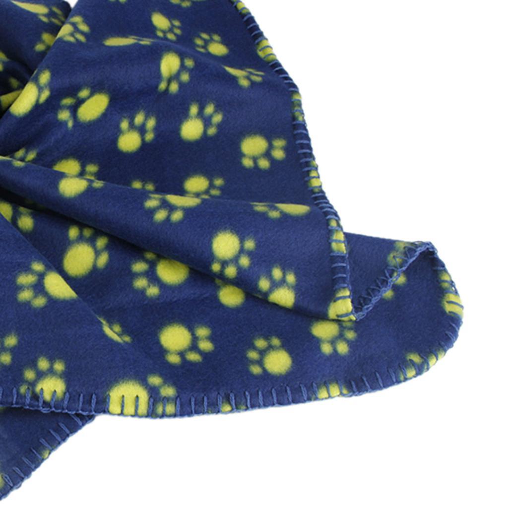 Warm Blue Fleece Blanket Pet Dog Paw Print Pattern Soft Bed Mat--S