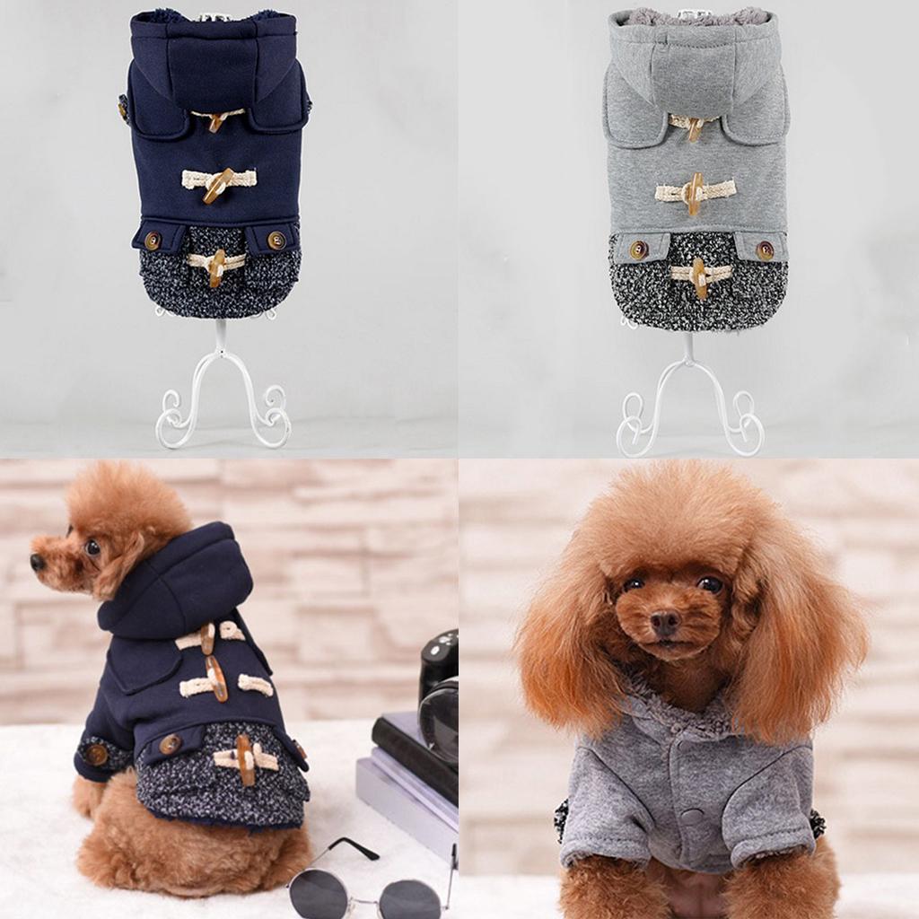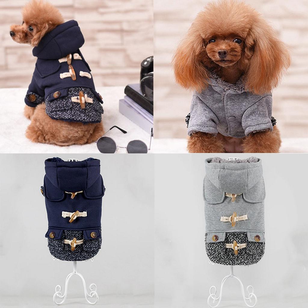 Warm Pet Dog Overcoat Winter Clothes Christmas Outfit with Horn Buttons Navy_L