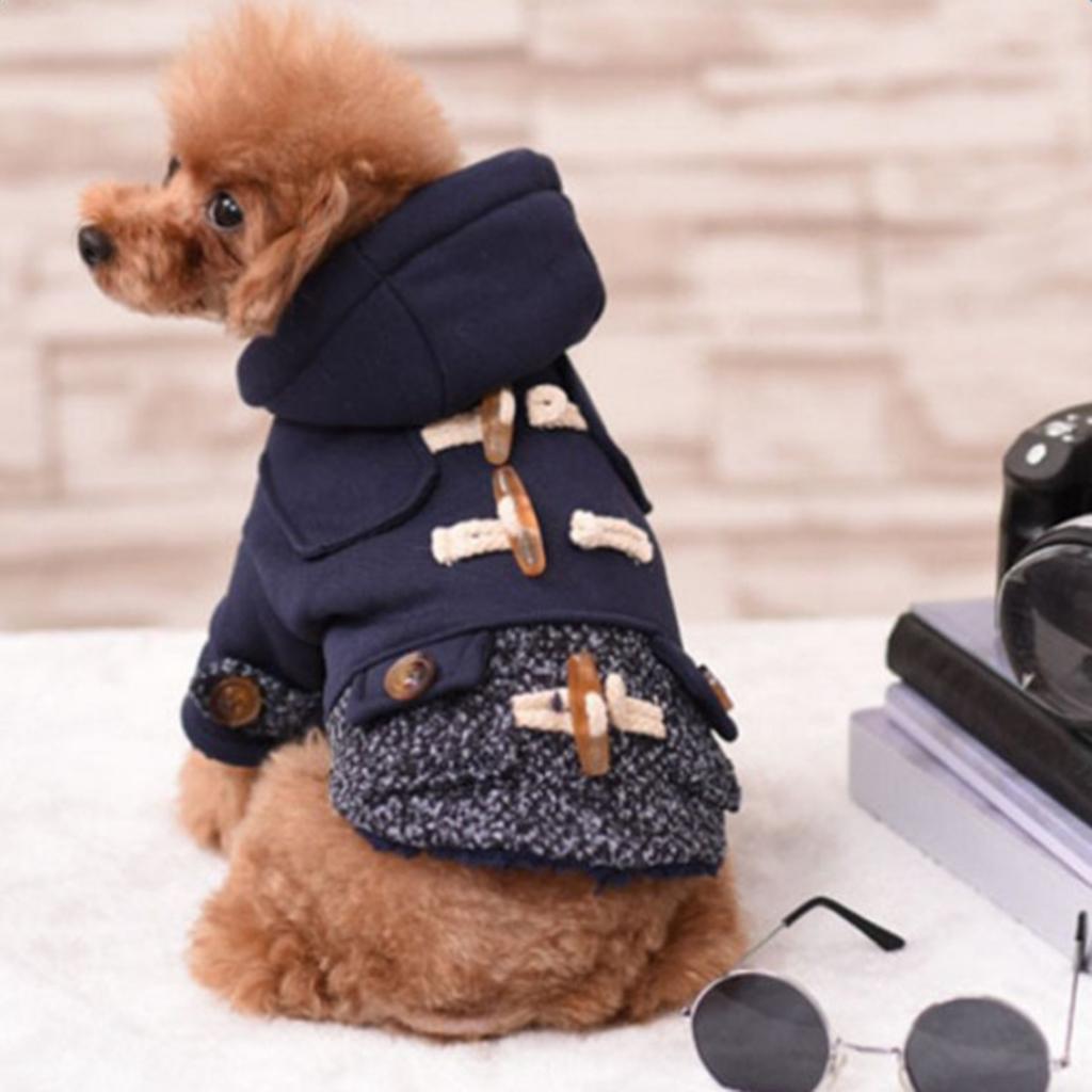 Warm Pet Dog Overcoat Winter Clothes Christmas Outfit with Horn Buttons Navy_XL