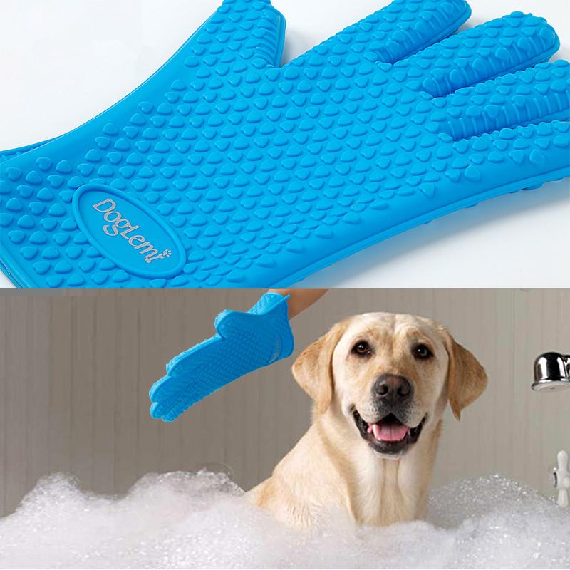 Waterproof Pet Dog Cat Grooming Glove Dirt Hair Fur Removal Remover Blue
