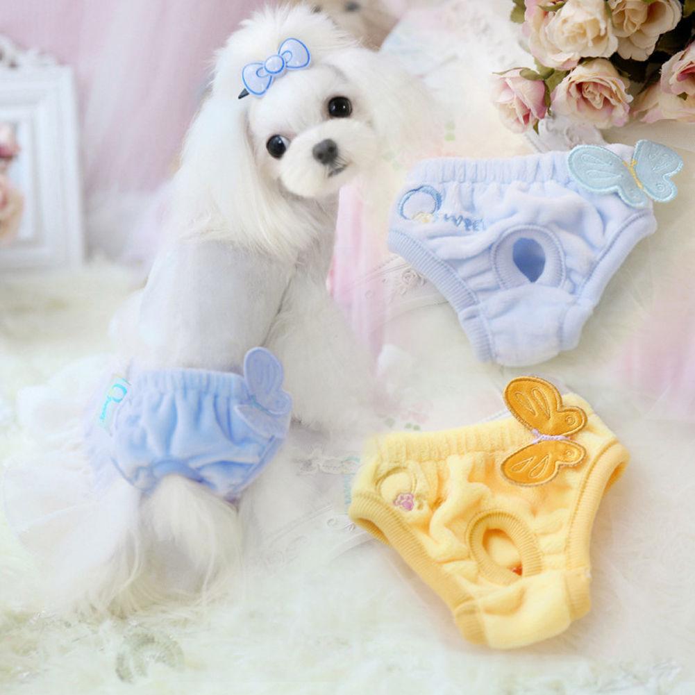 Yellow Butterfly Female Pet Dog Physiological Pant Diaper Underwear Size M