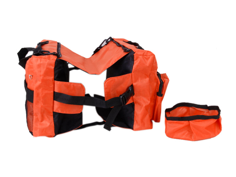Take your dog on a walk or hike and make him do part of the work. They can carry your poop bags, canvas bowls for food or water, or anything else you may need to take with you. This is great for hiking or camping.