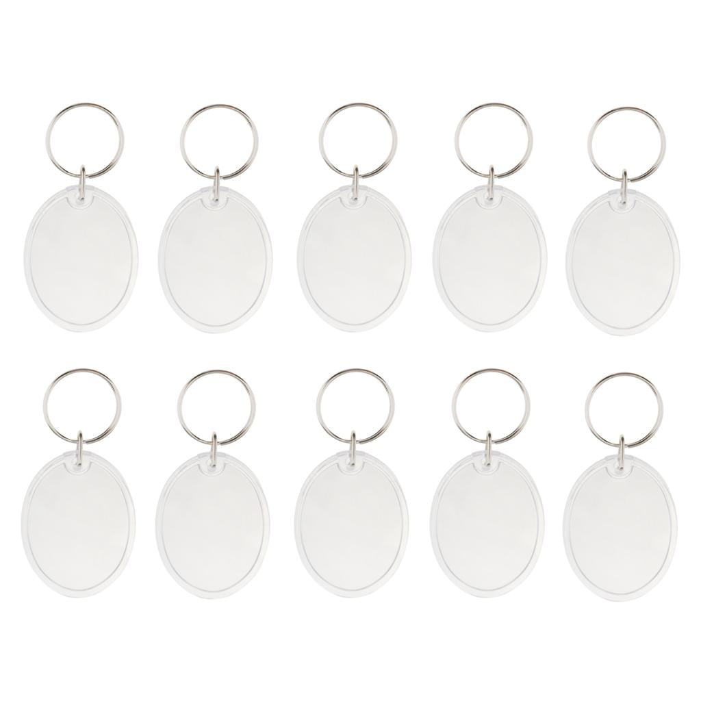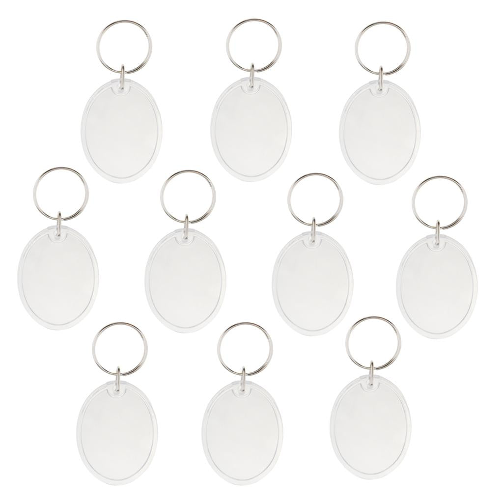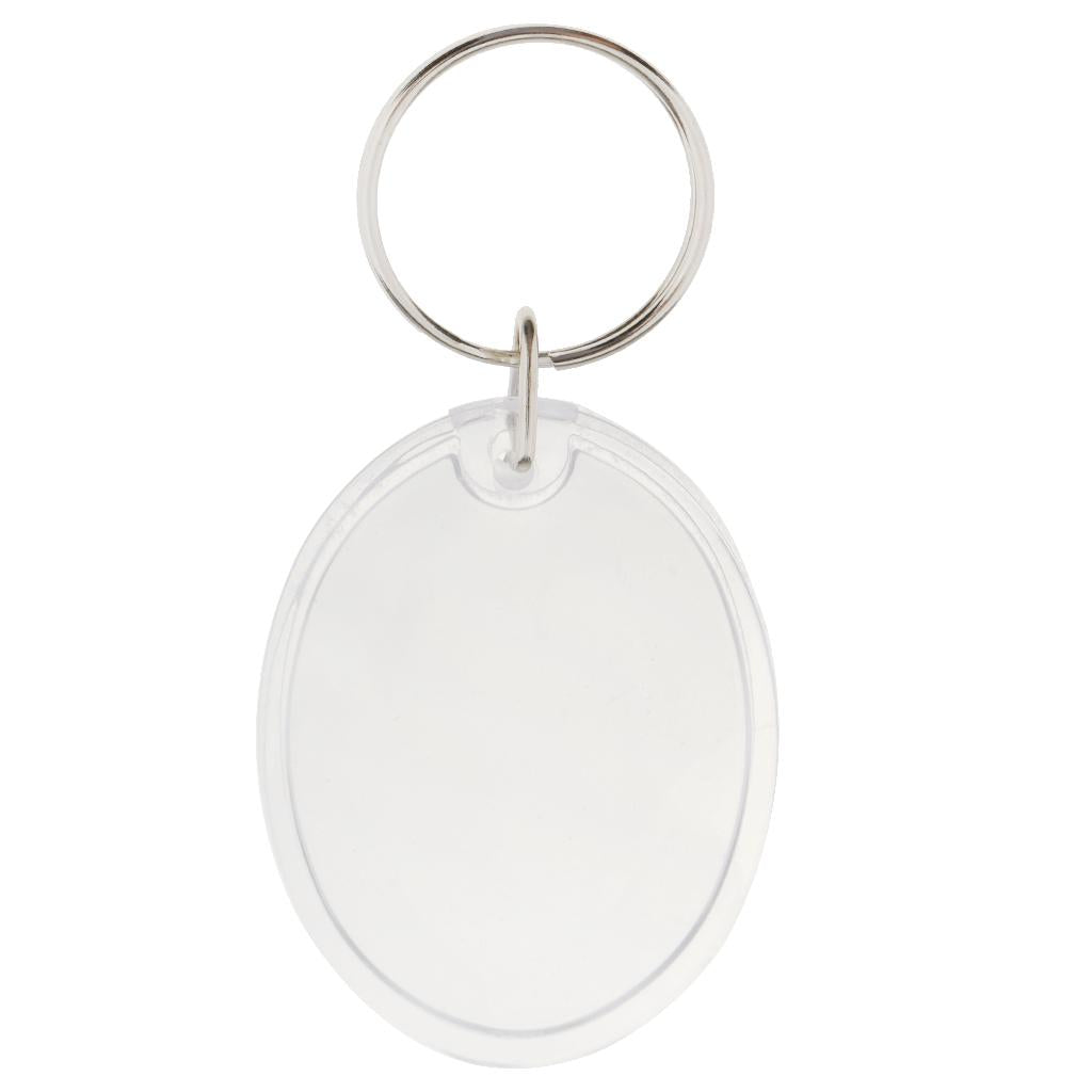 Easy to assemble shatter resistant clear acrylic plastic keyrings.