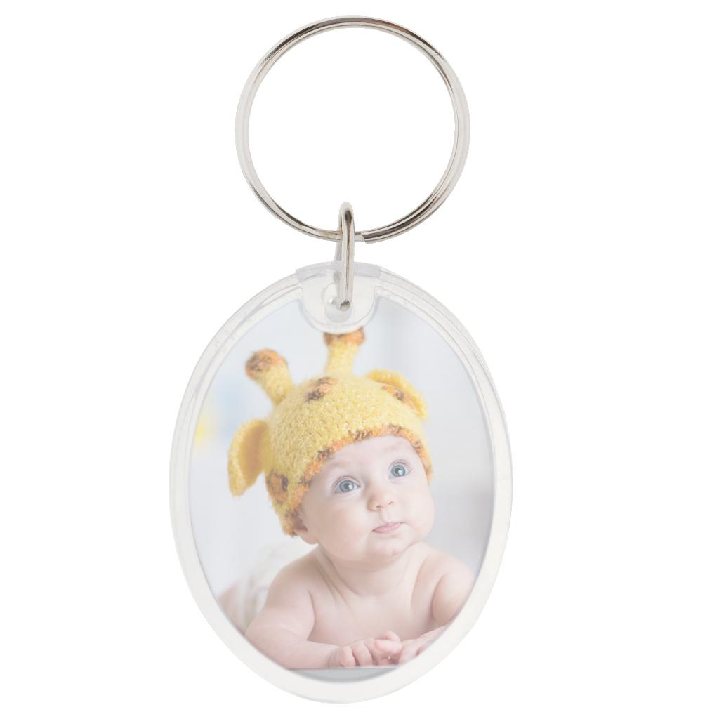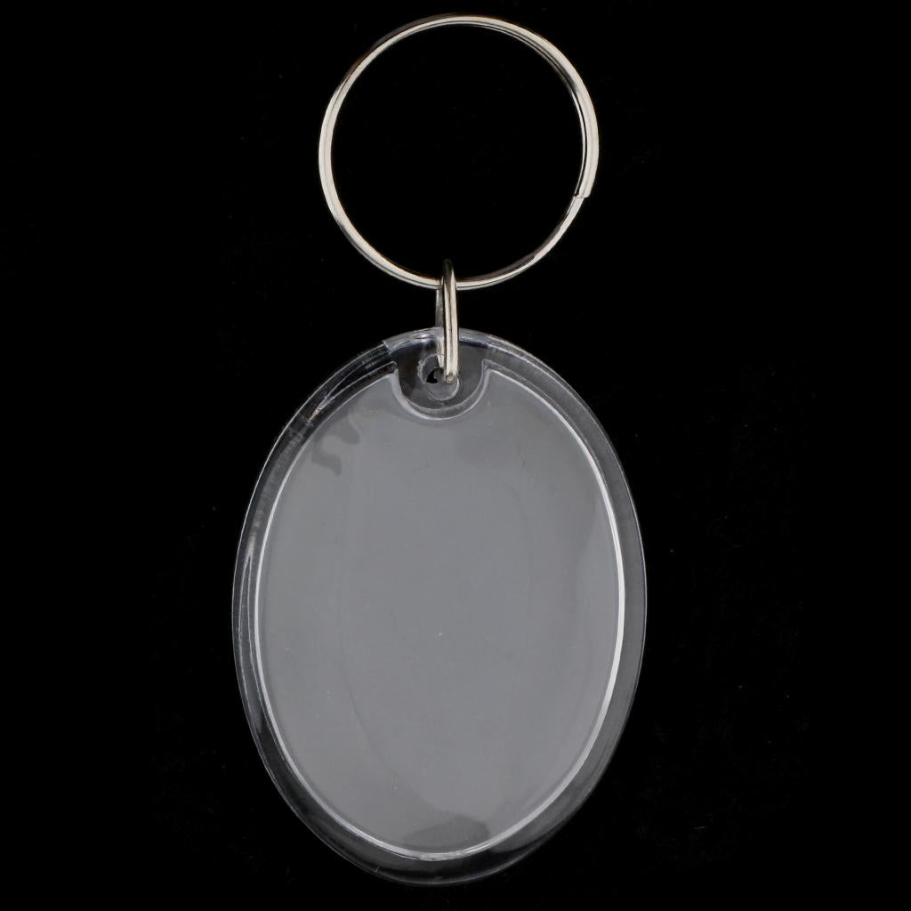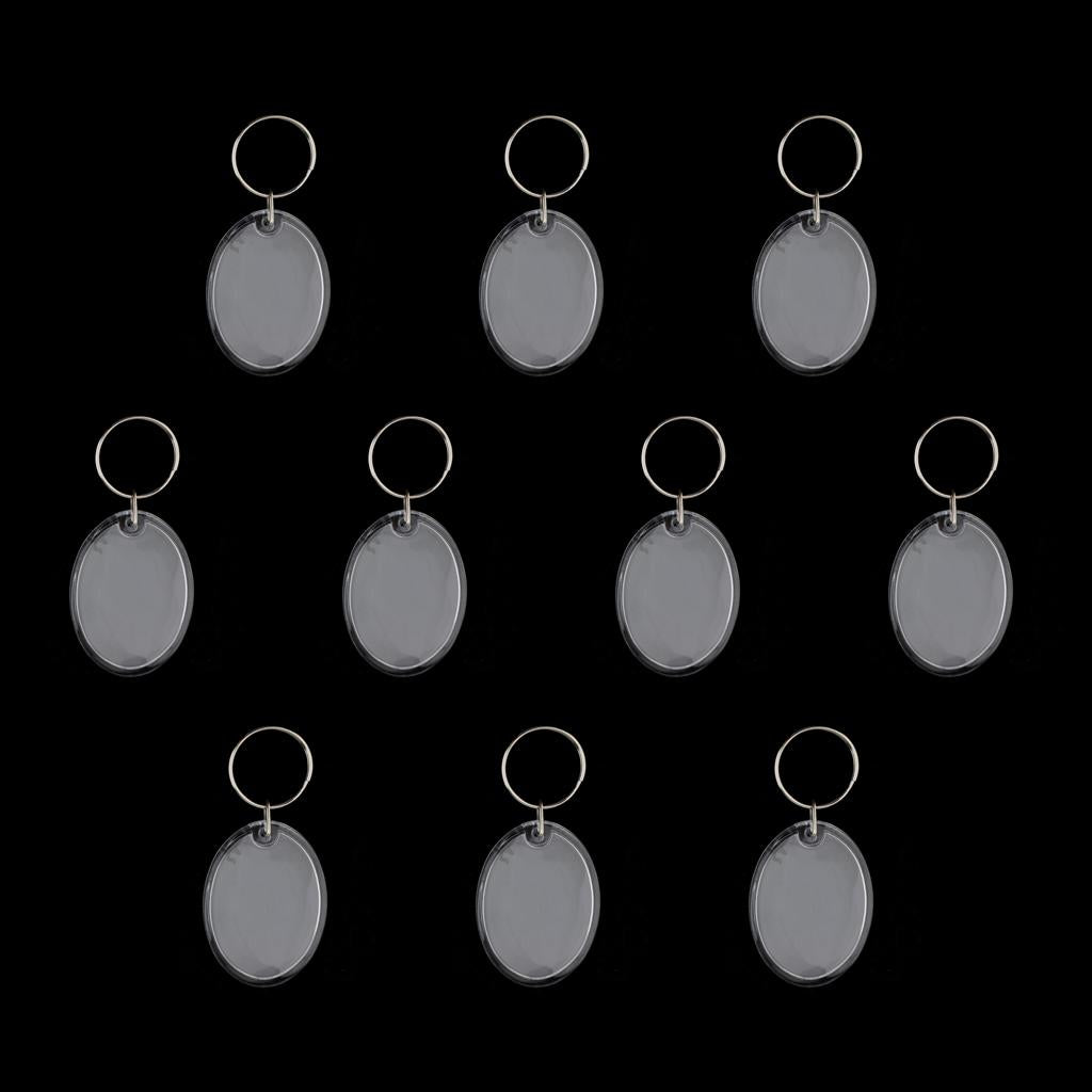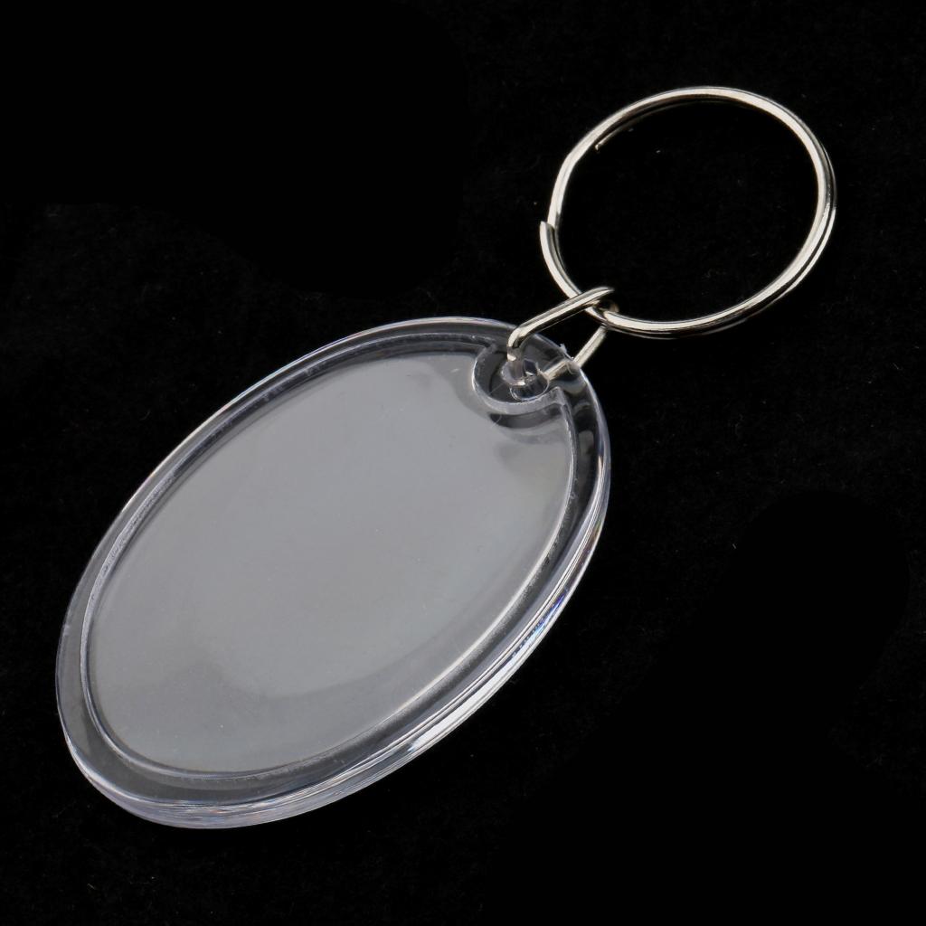Easy to assemble shatter resistant clear acrylic plastic keyrings.