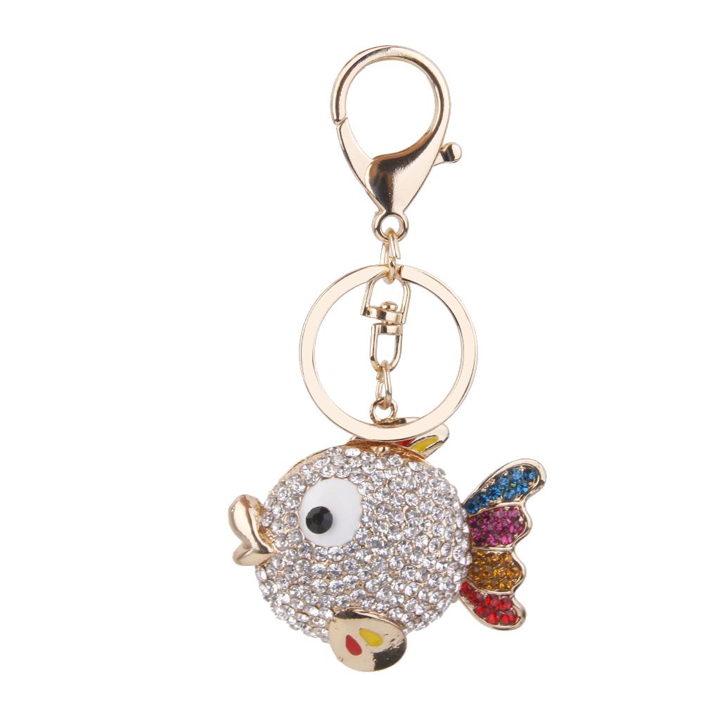 1pc Alloy Rhinestone Cute Fish Shape Pendant Keyring Keychain
