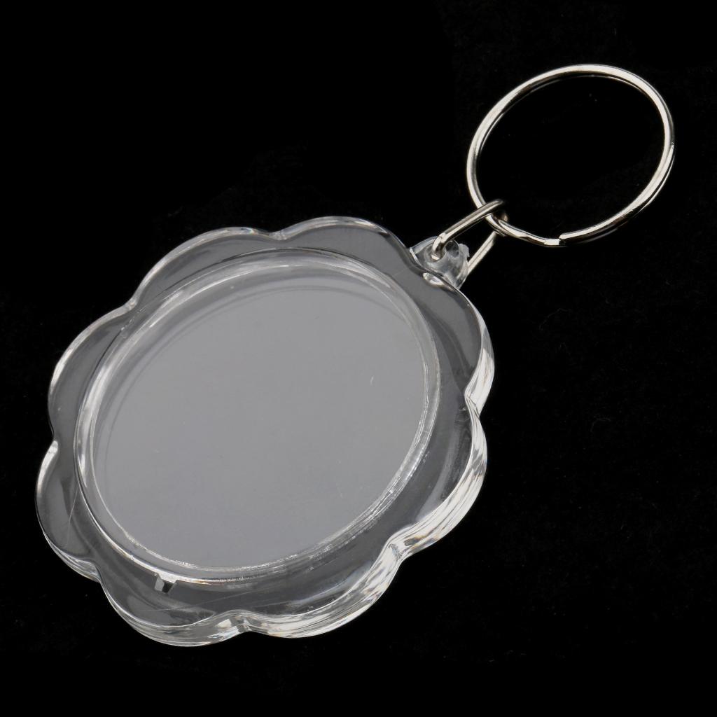 Easy to assemble shatter resistant clear acrylic plastic keyrings.