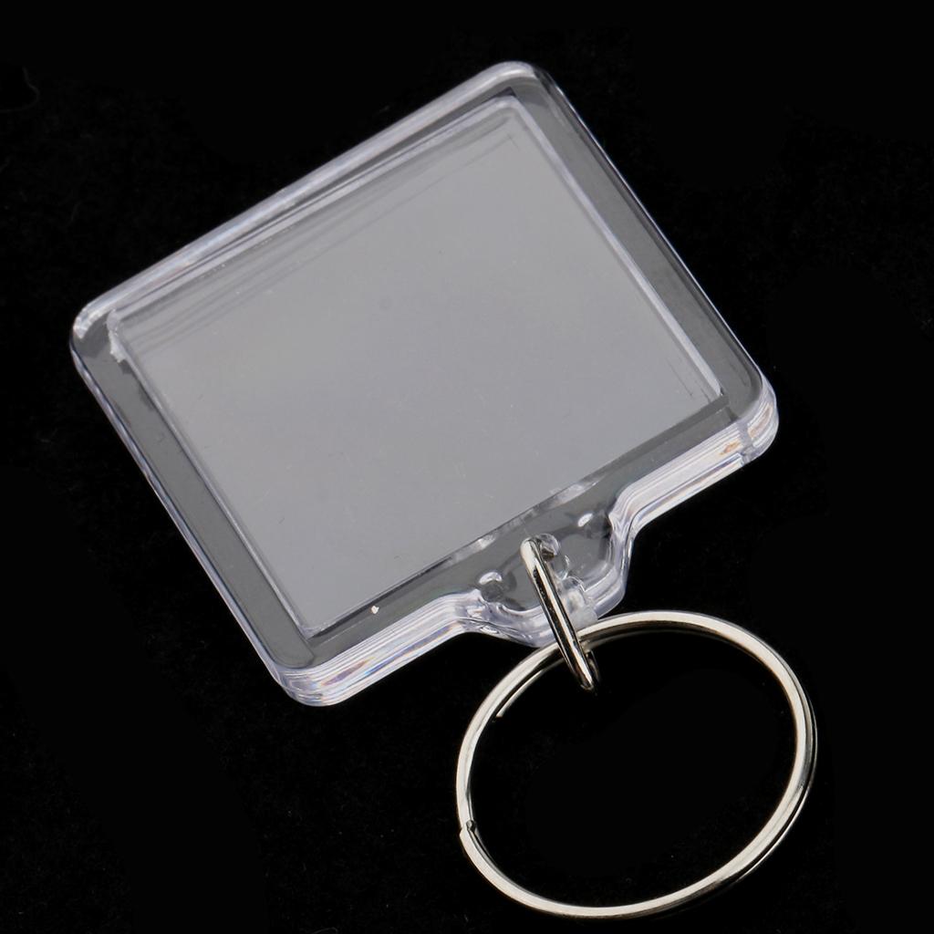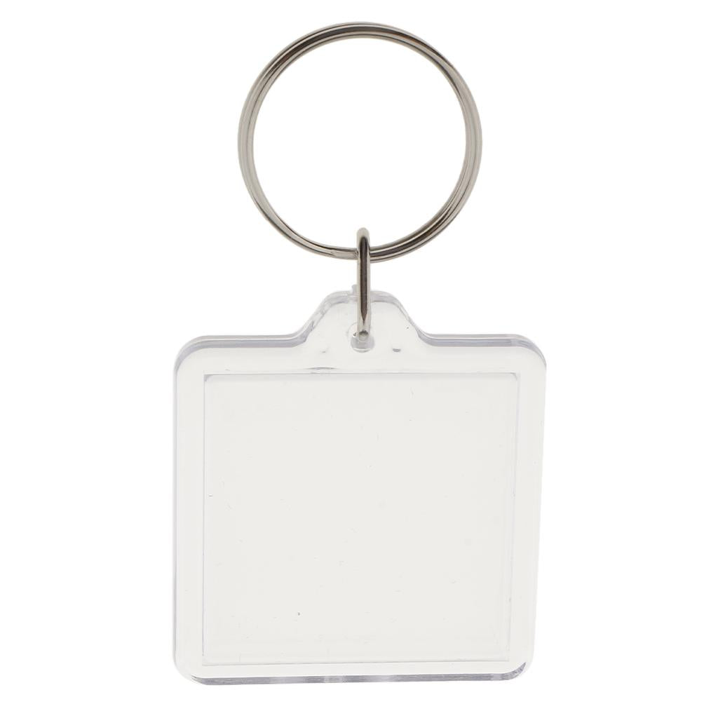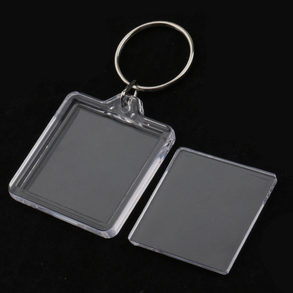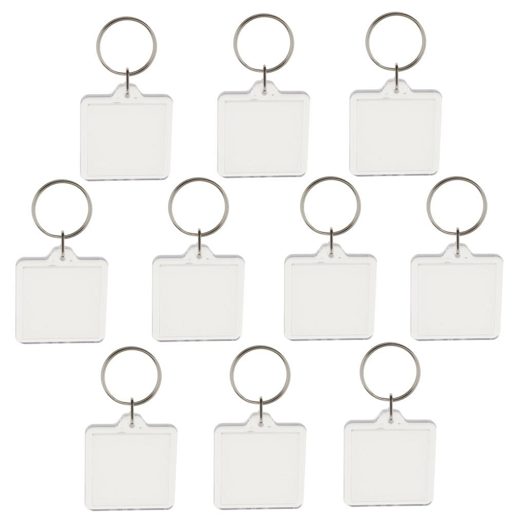 Easy to assemble shatter resistant clear acrylic plastic keyrings.