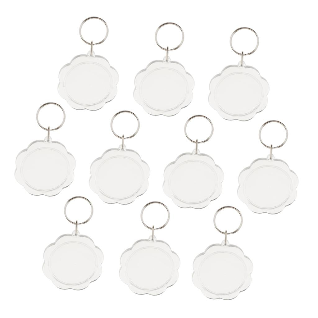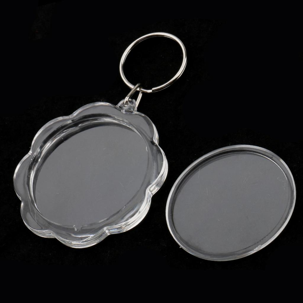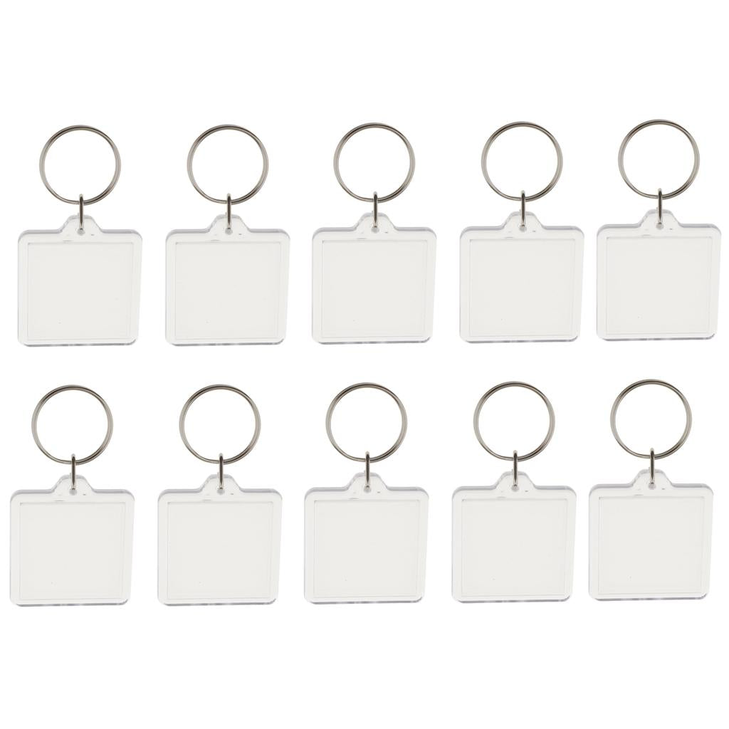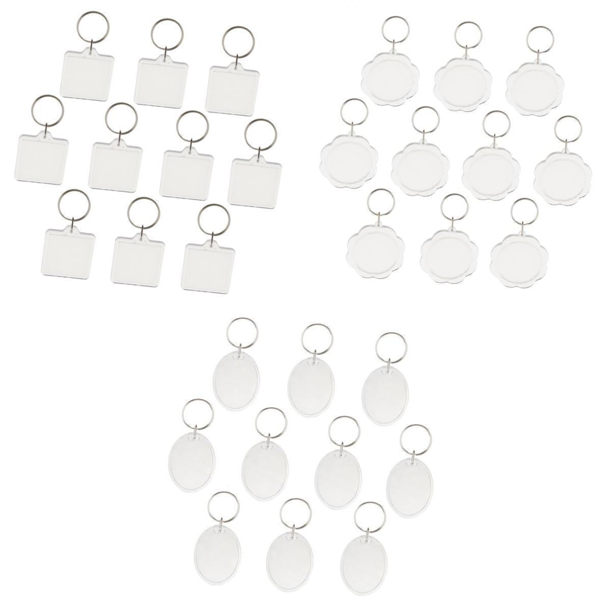 Easy to assemble shatter resistant clear acrylic plastic keyrings.