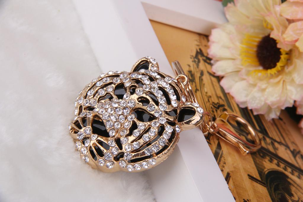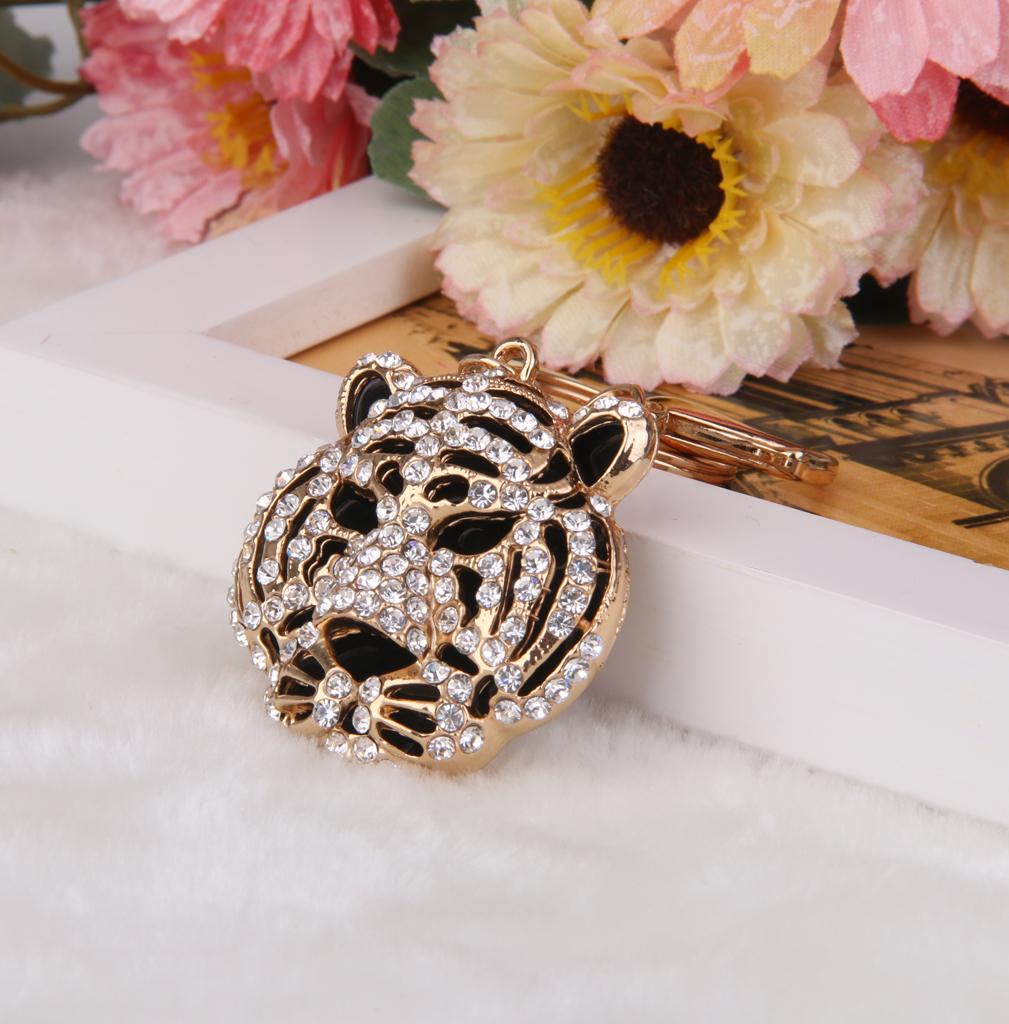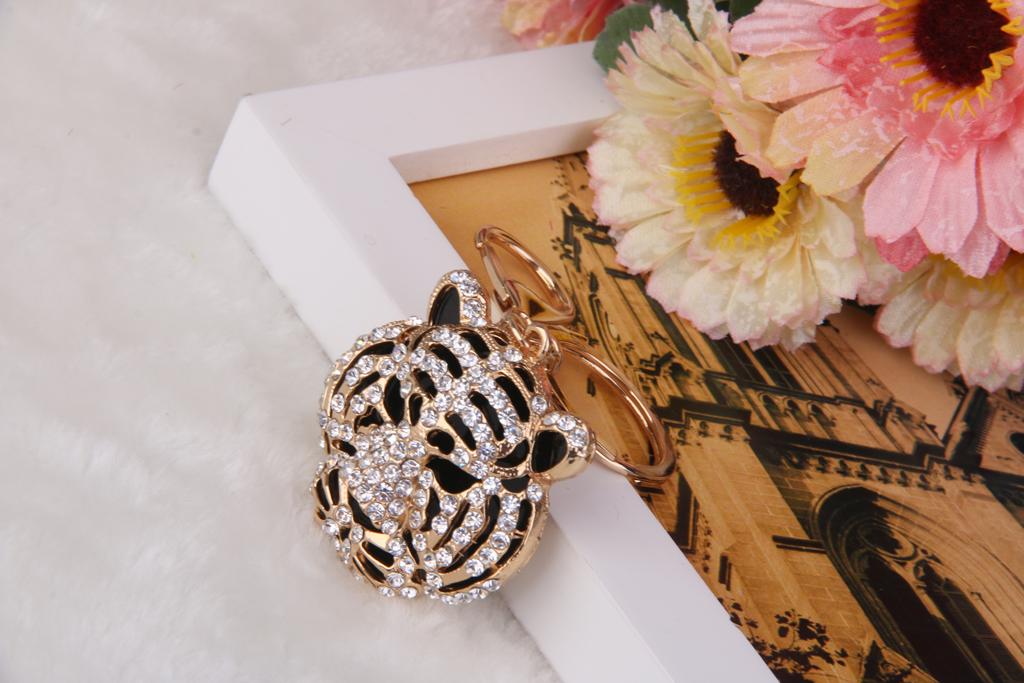 3D Crystal Tiger Head Keyring Charm Pendant Key Ring Chain Keychain
