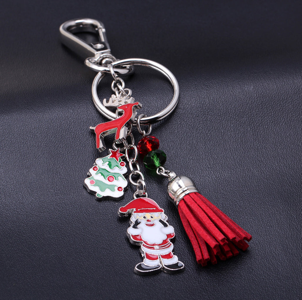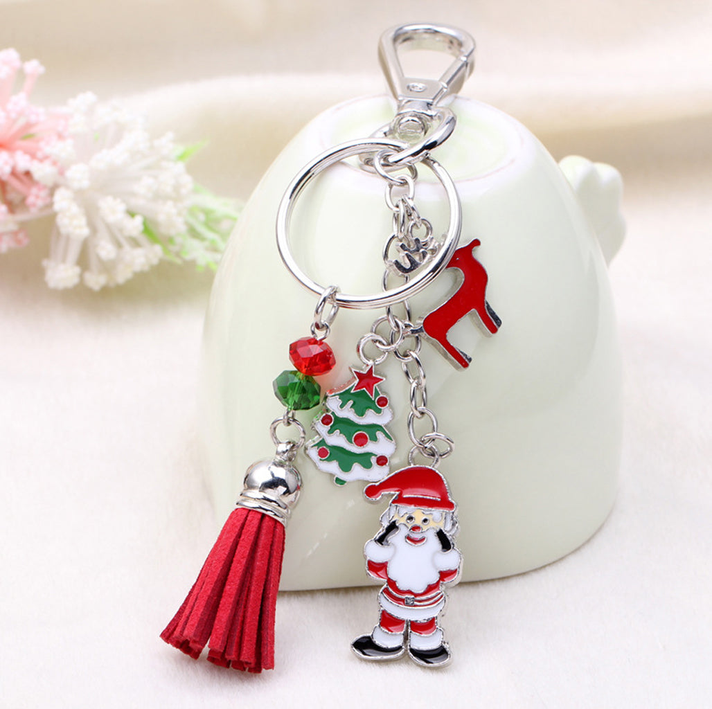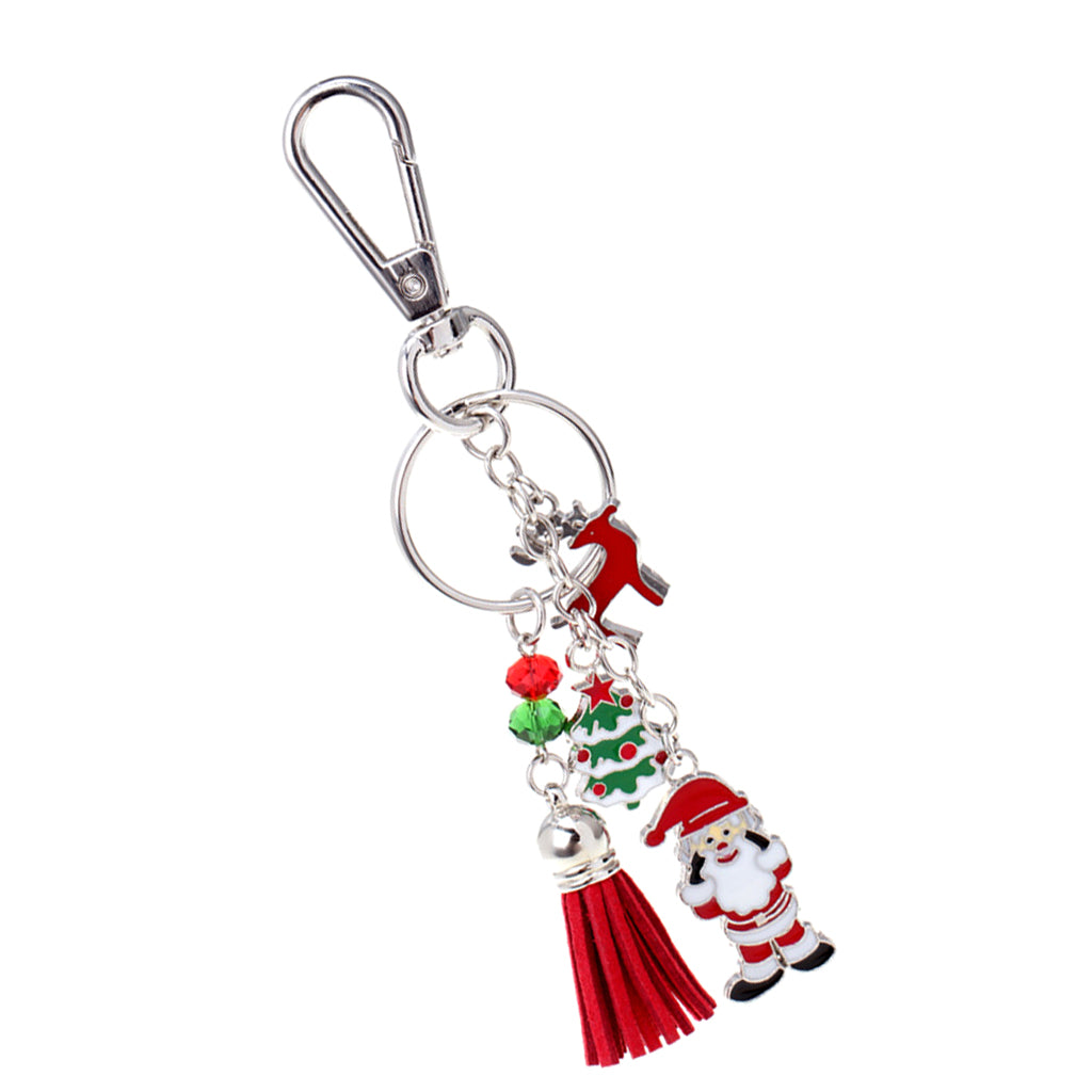 Charm Santa Claus Reindeer Pendant Keychain Purse Bag Key Ring Christmas