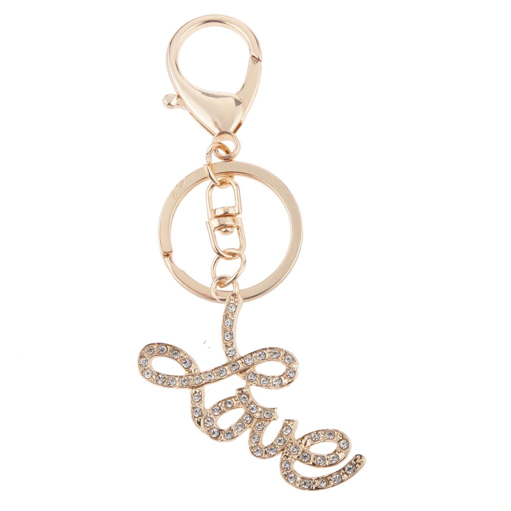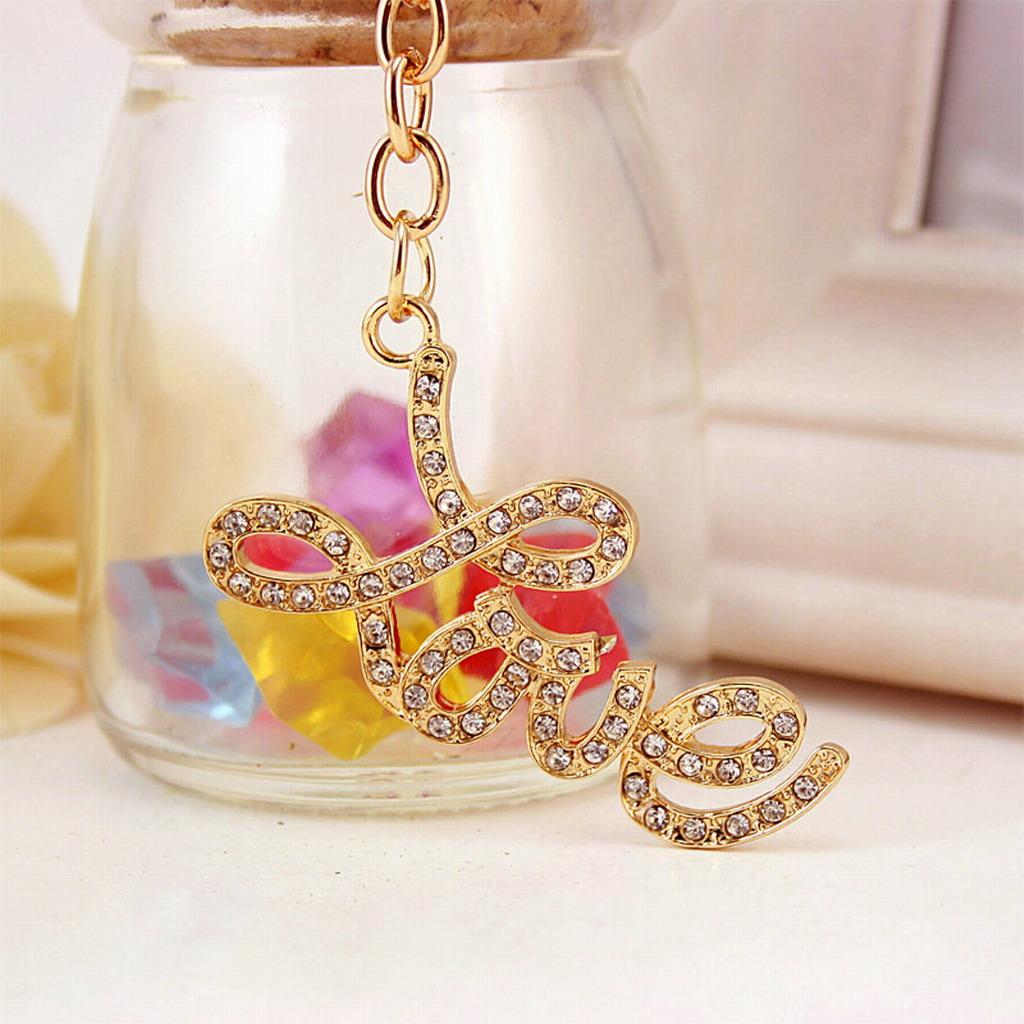 Charming White Stone Decorated Love Pendant Keychain Keyfob Women ACCS Gift