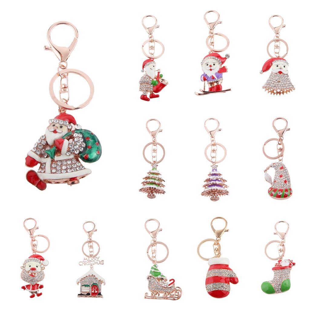 • Beautiful charming cute christmas diamond rhinestone pendant keychain keyring key ornament.