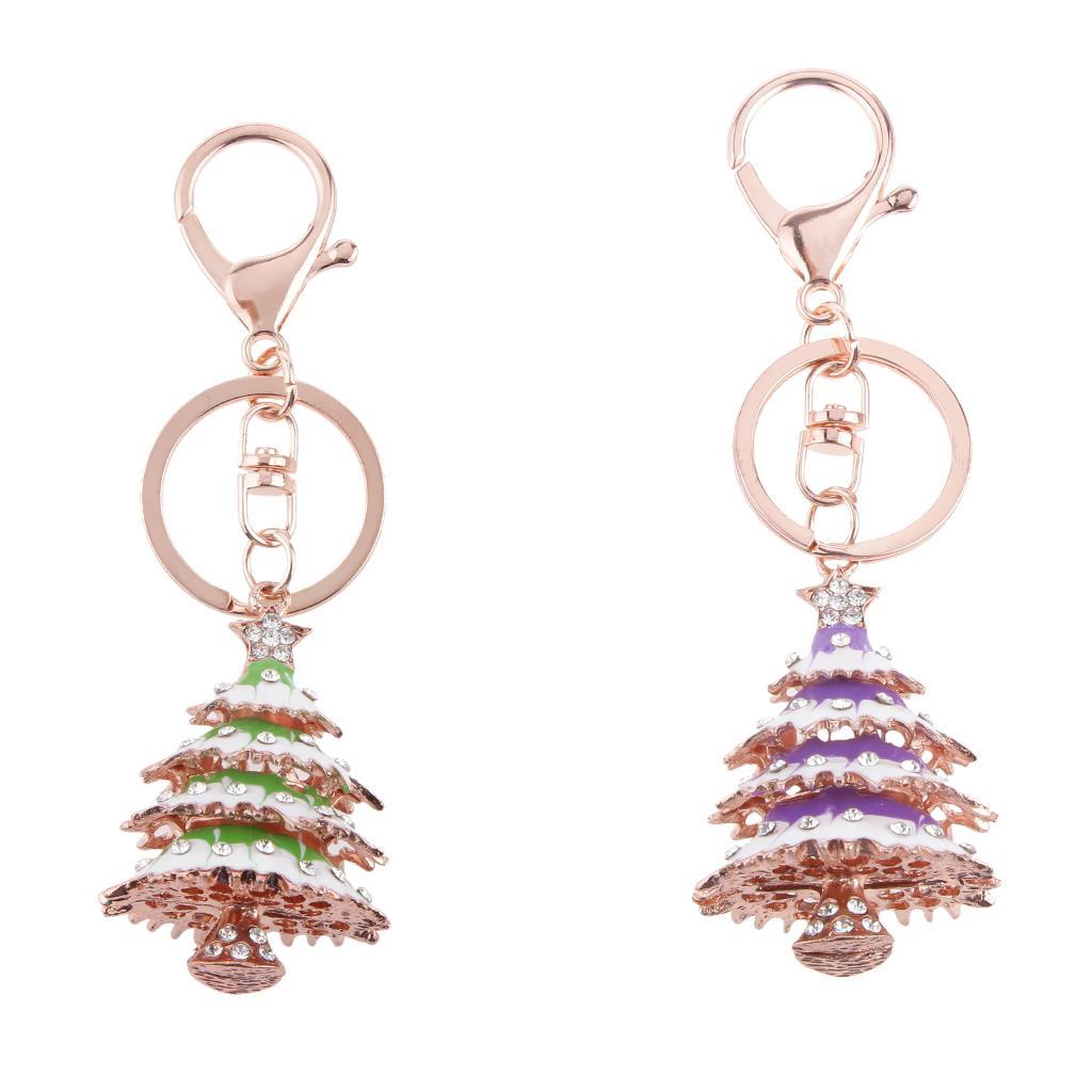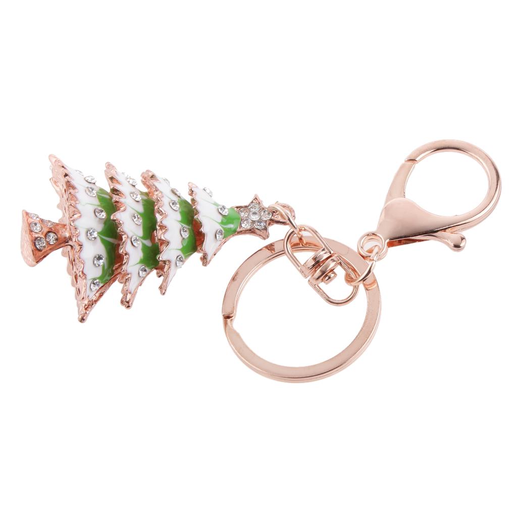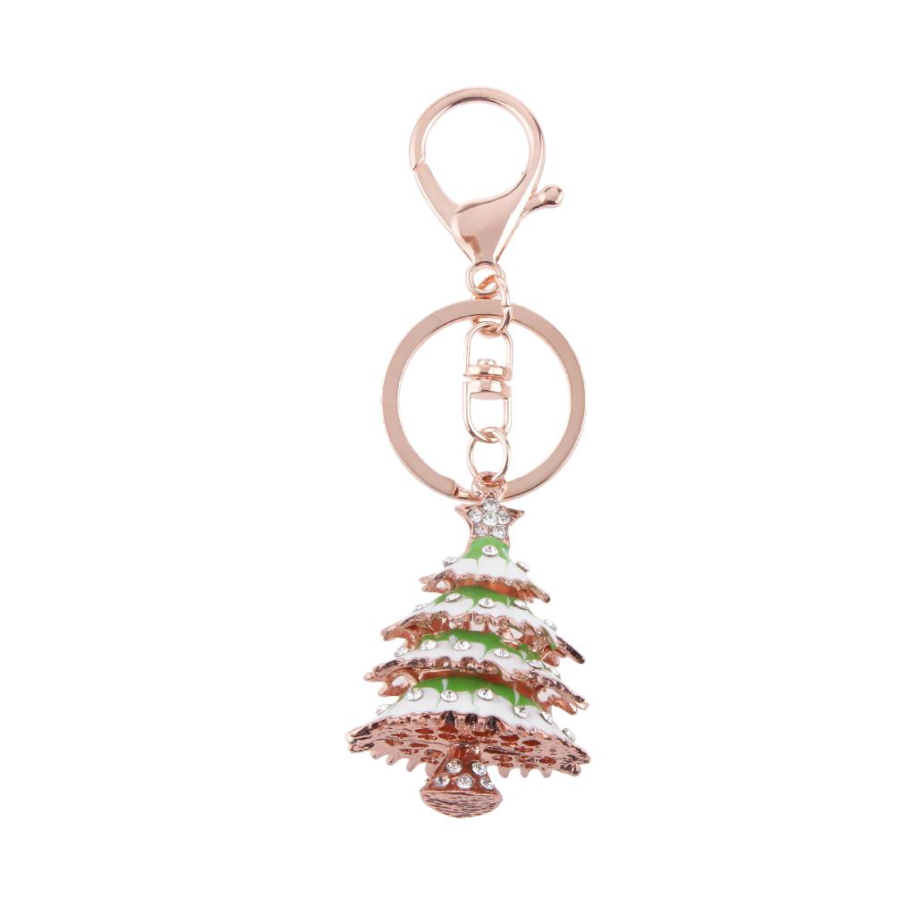 Christmas Tree Rhinestone Keychain Bag Key Ornament Pendant Key Ring Green