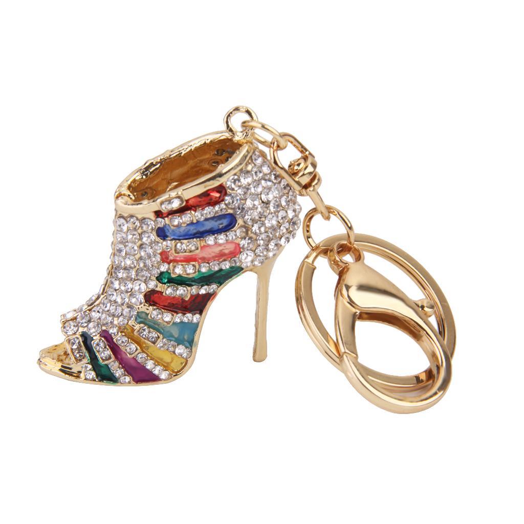 Crystal High Heel Shoe Keyring Charm Pendant Key Bag Chain Ring Keychain