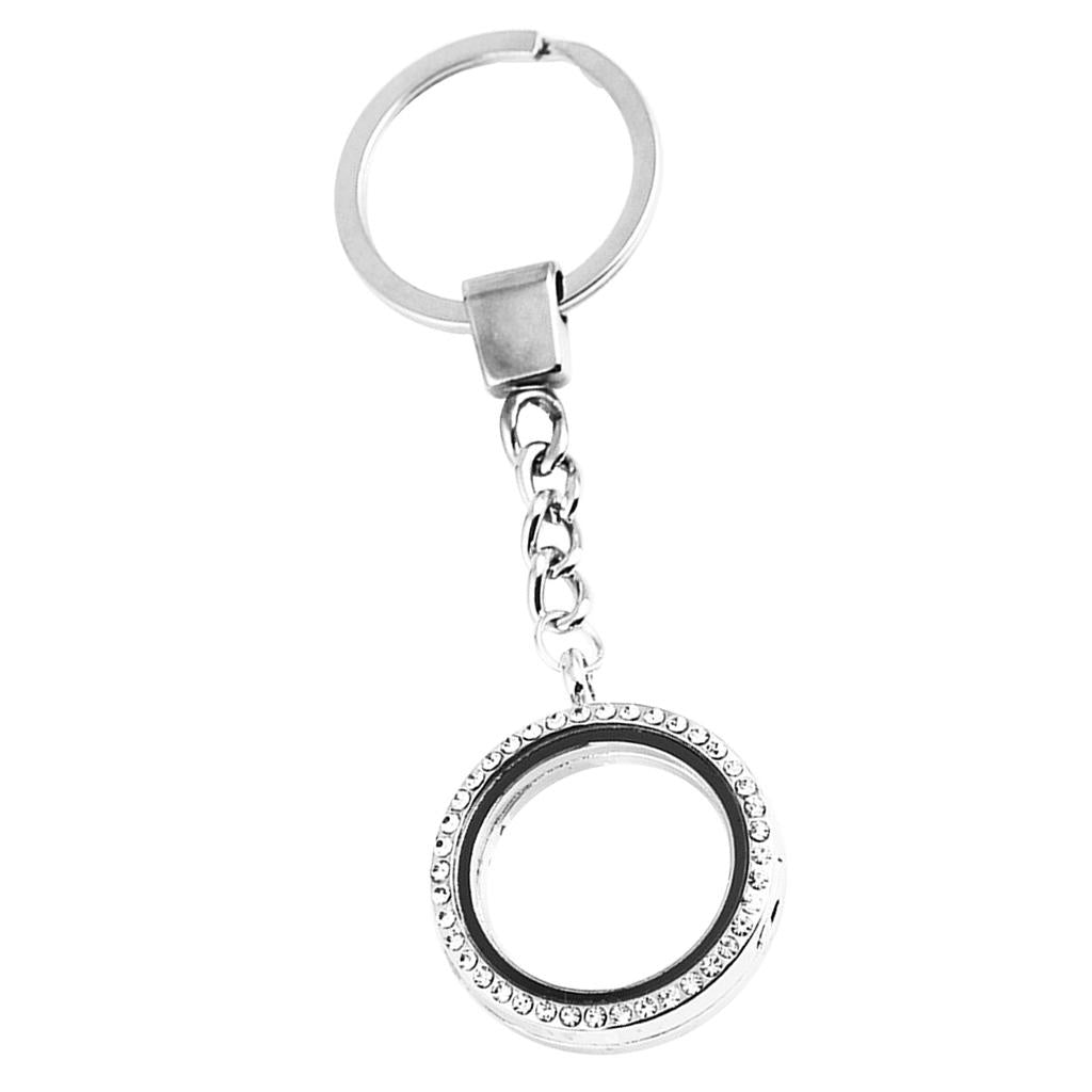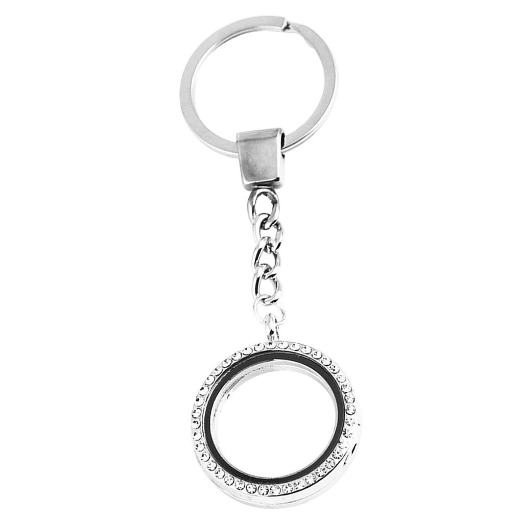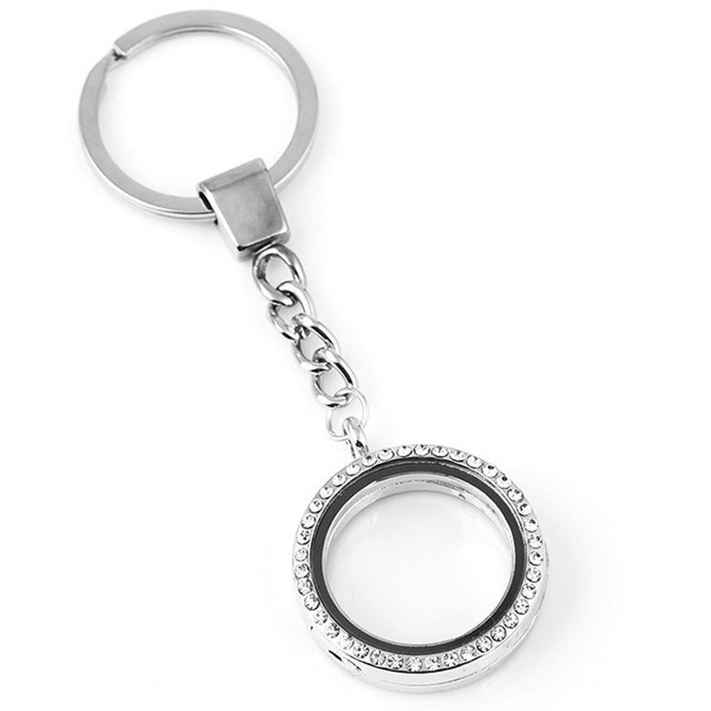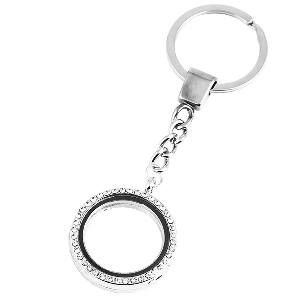 Crystal Round Floating Glass Locket Memory Keyring Charm Silver
