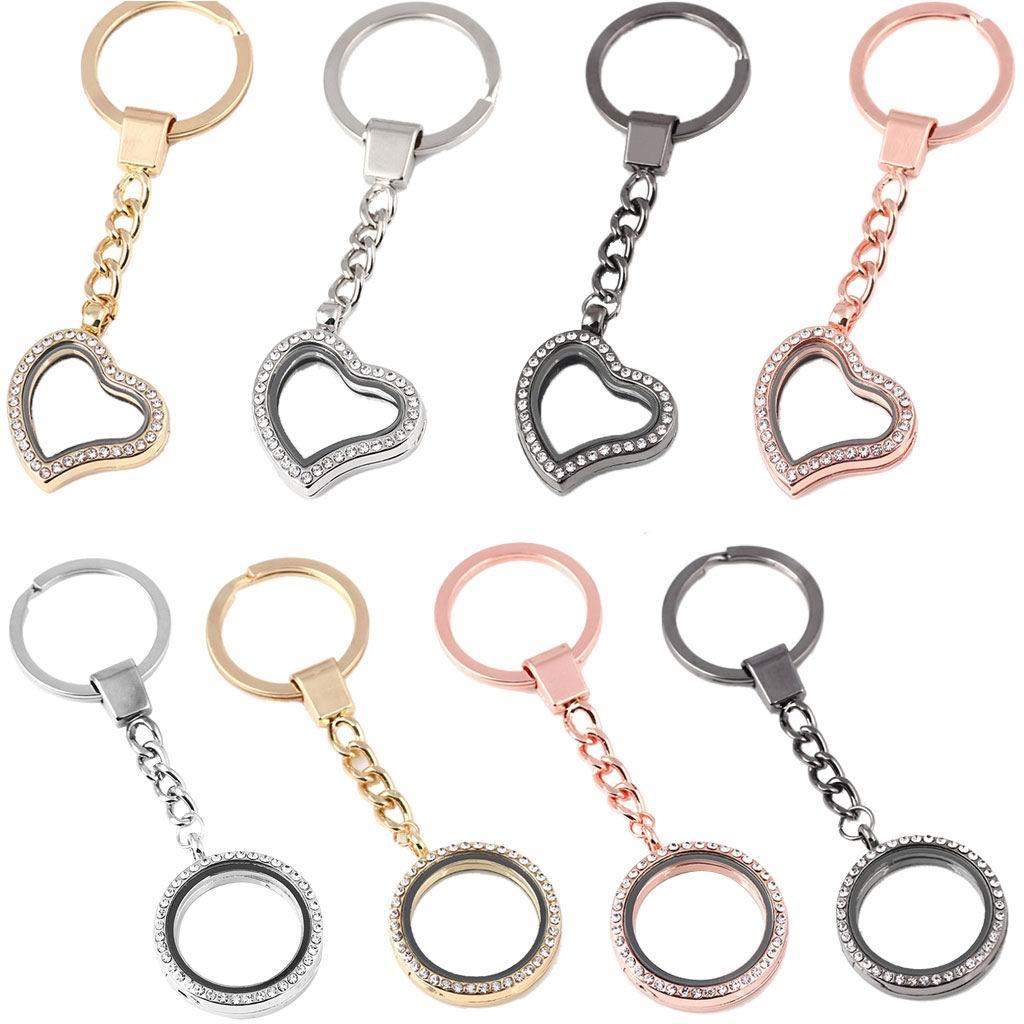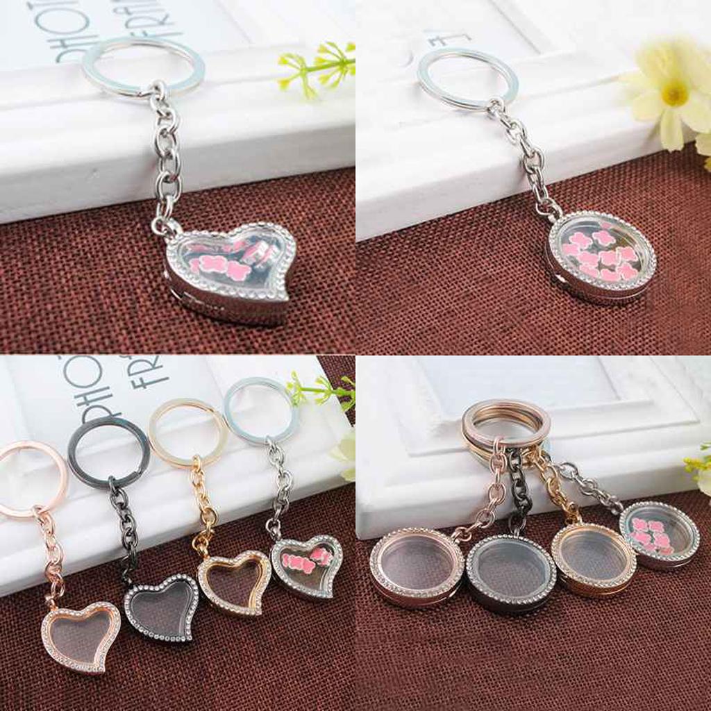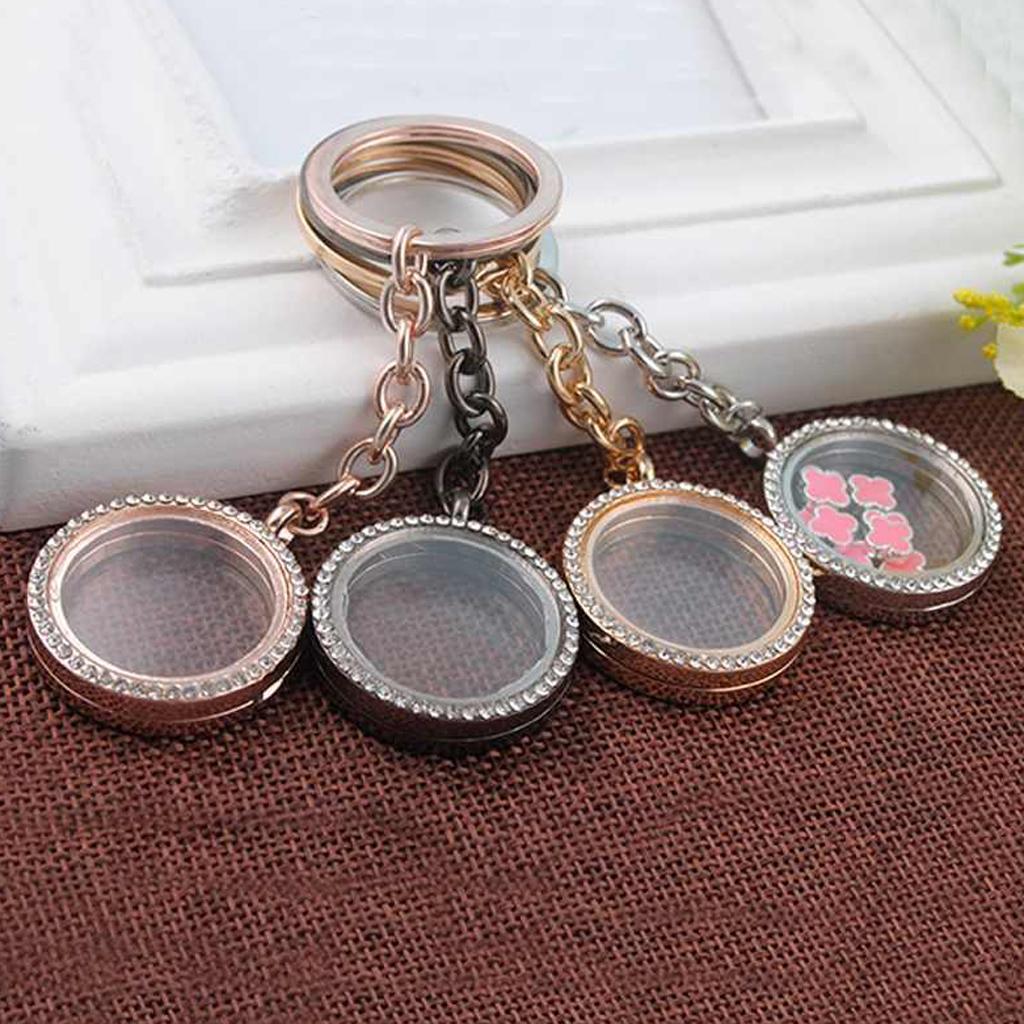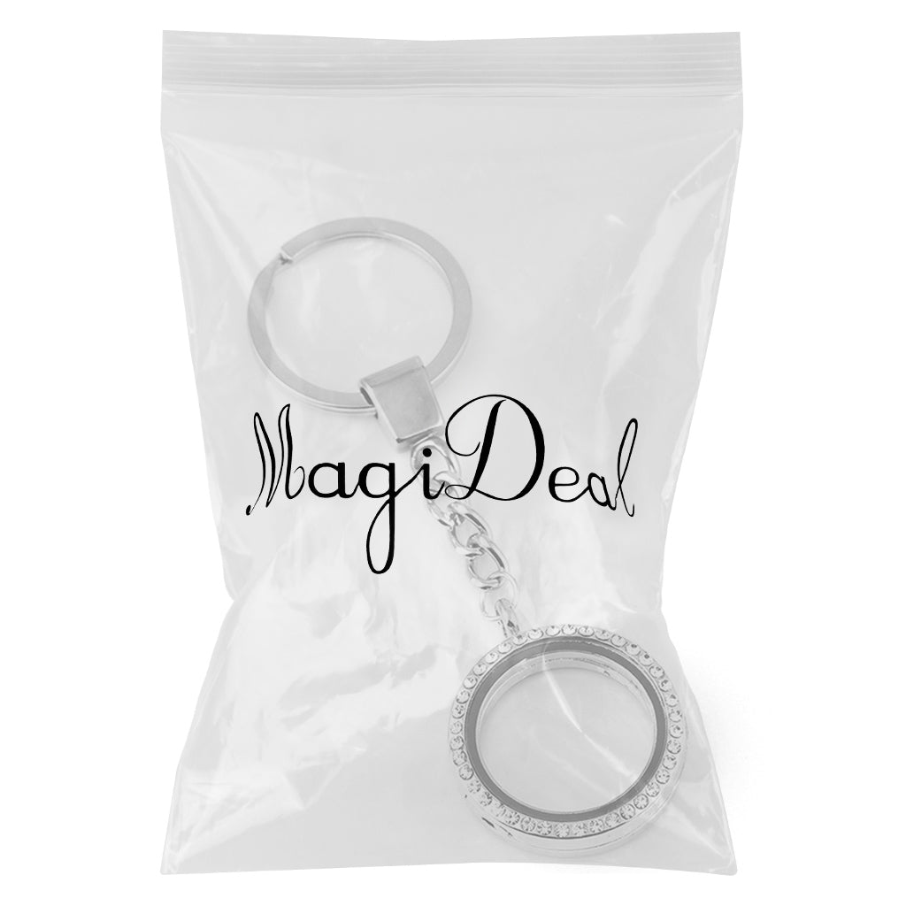 Crystal Round Floating Glass Locket Memory Keyring Charm Silver