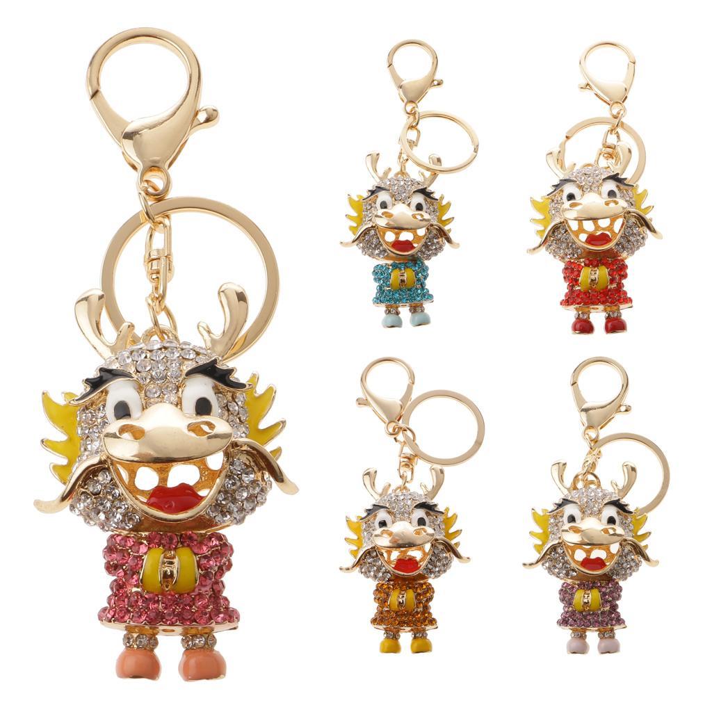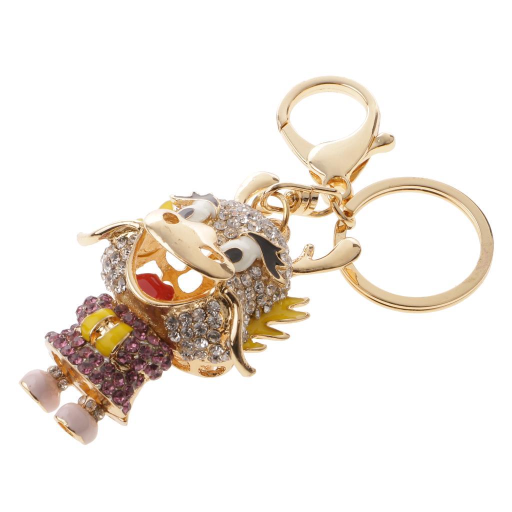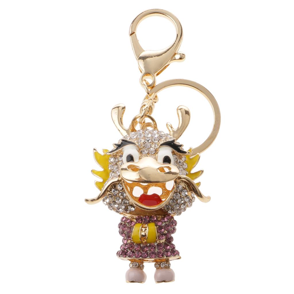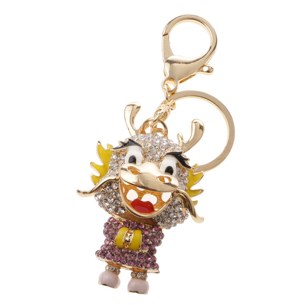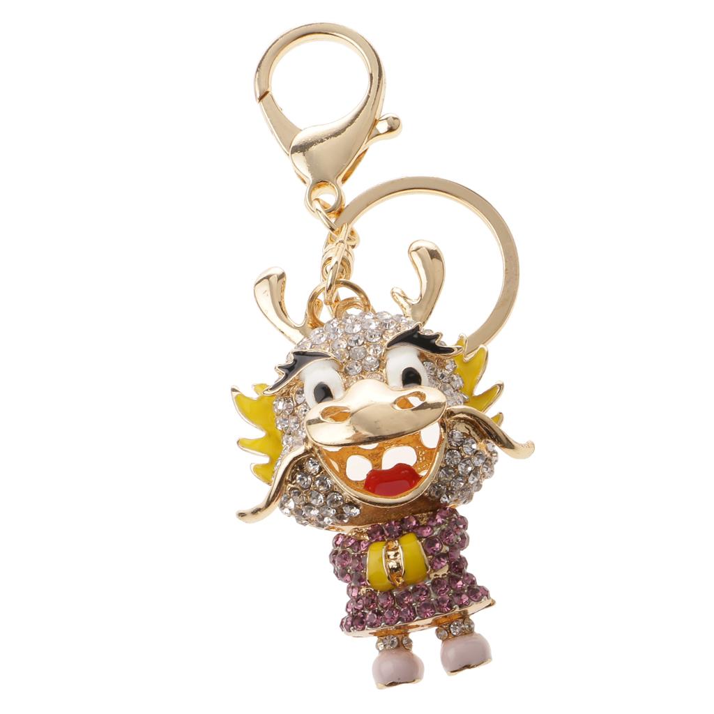 Cute Dragon Charm Pendant Crystal Purse Bag Car Key Ring Keychain Keyring Purple