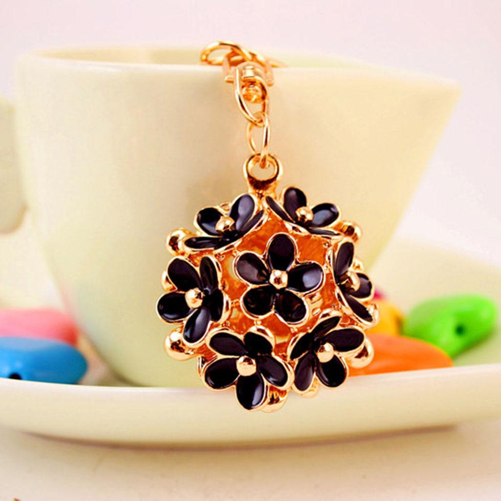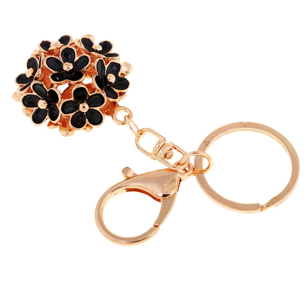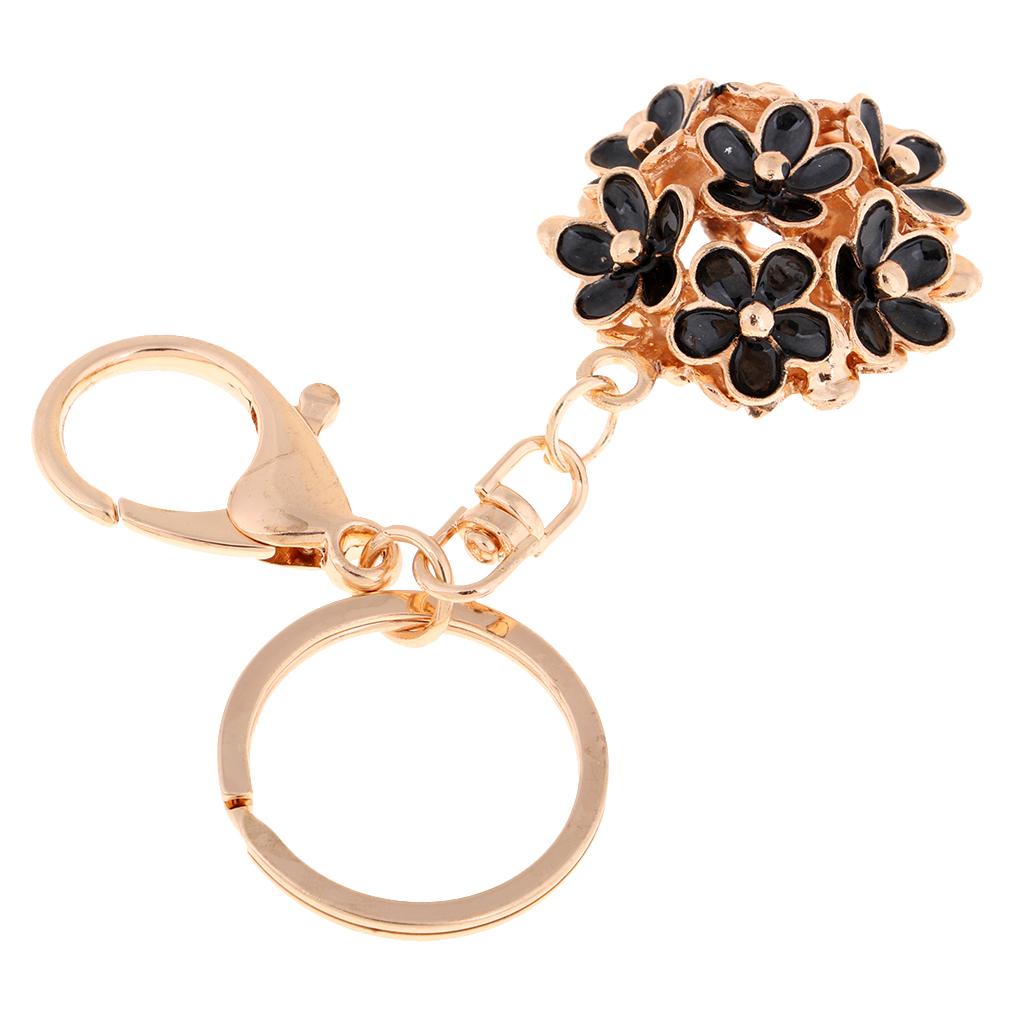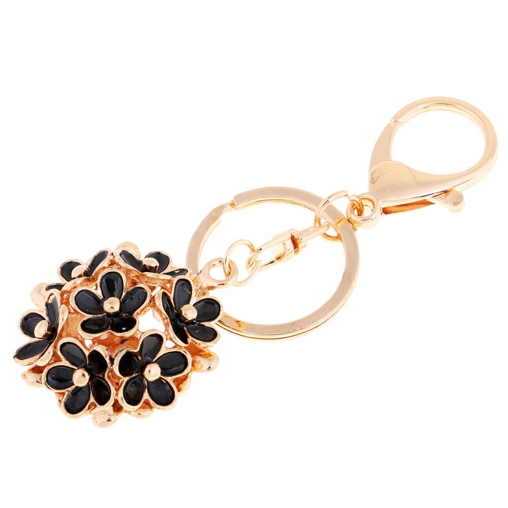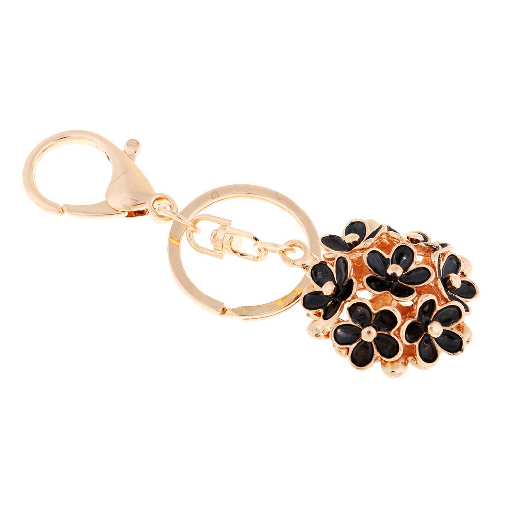 Fashion Enamel Five leaves Flower Keychain Ring Holder Charm Gift Black