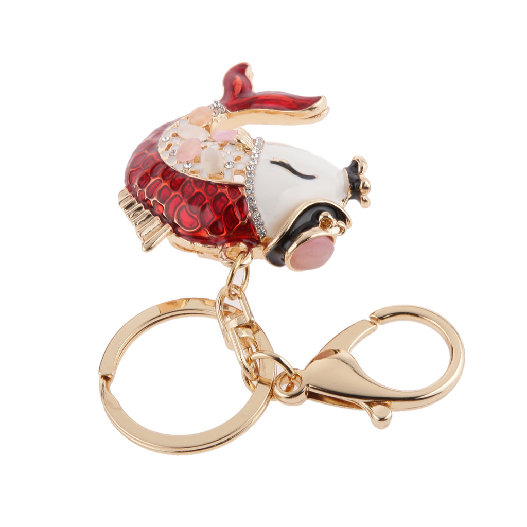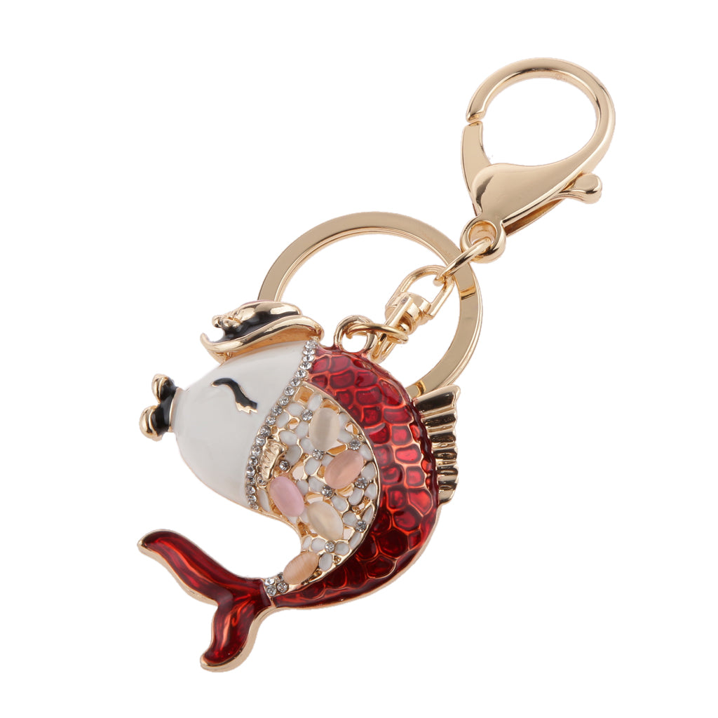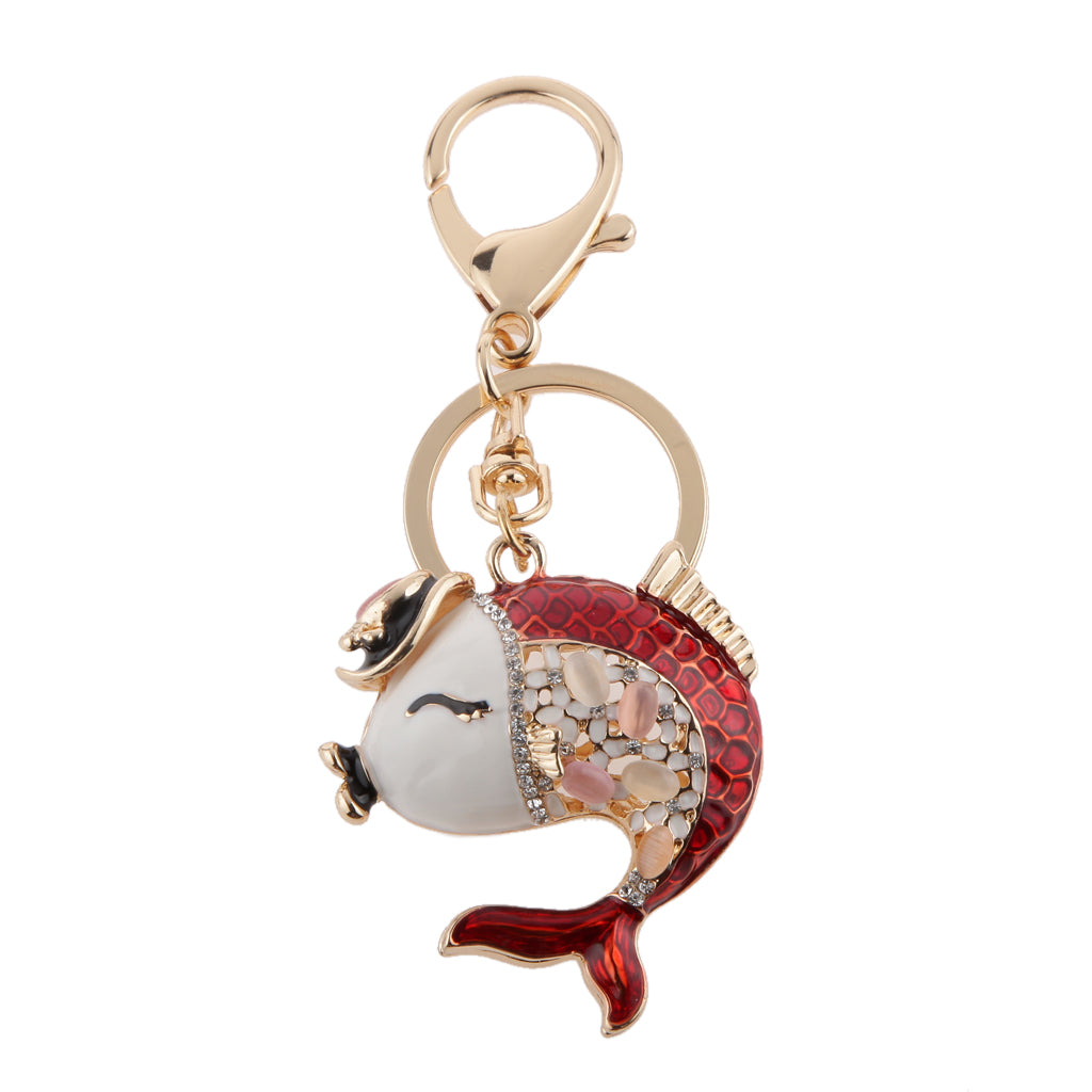 Fashion Rhinestone Crystal Red Carp Fish Charm Purse Bag Key Ring Keychain Keyfob