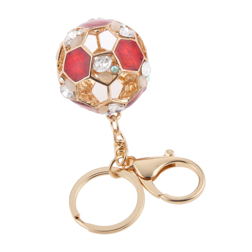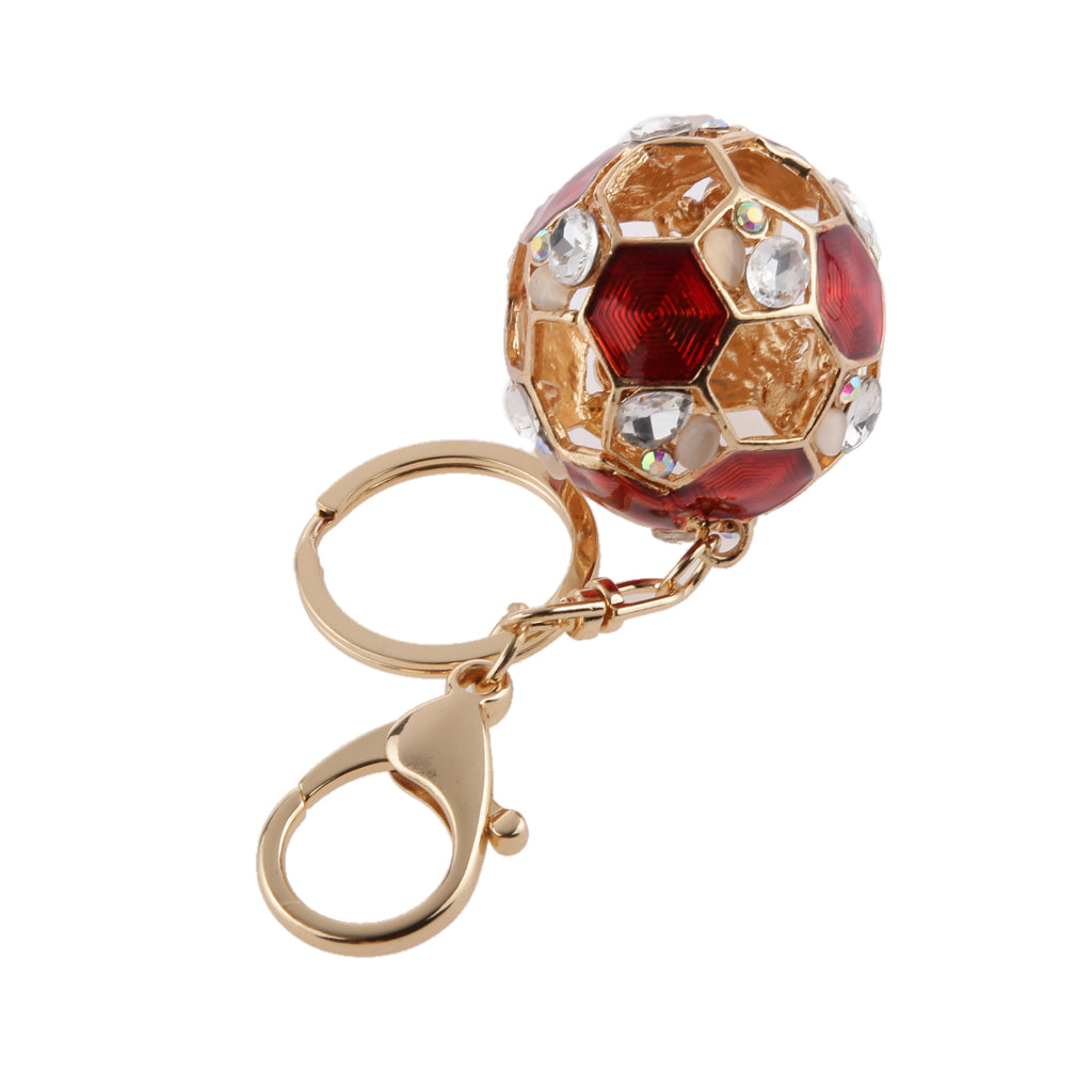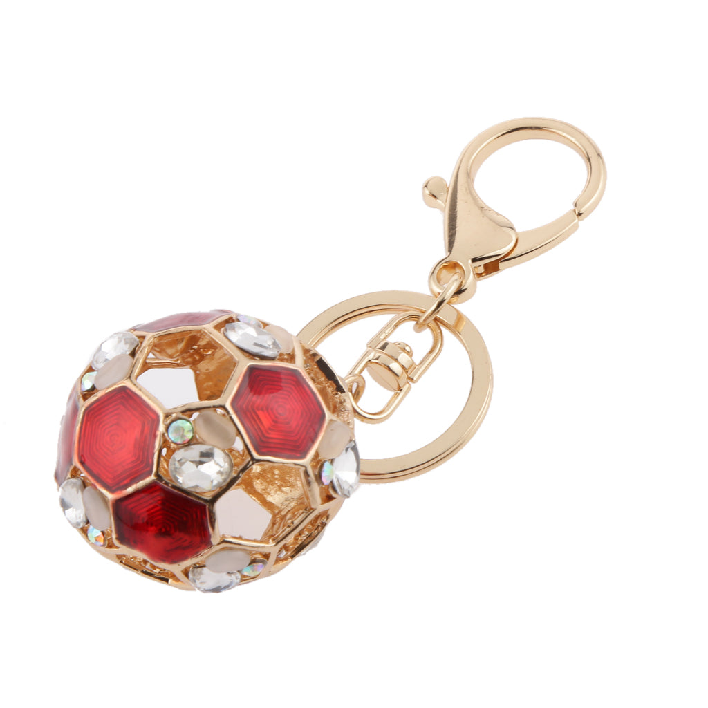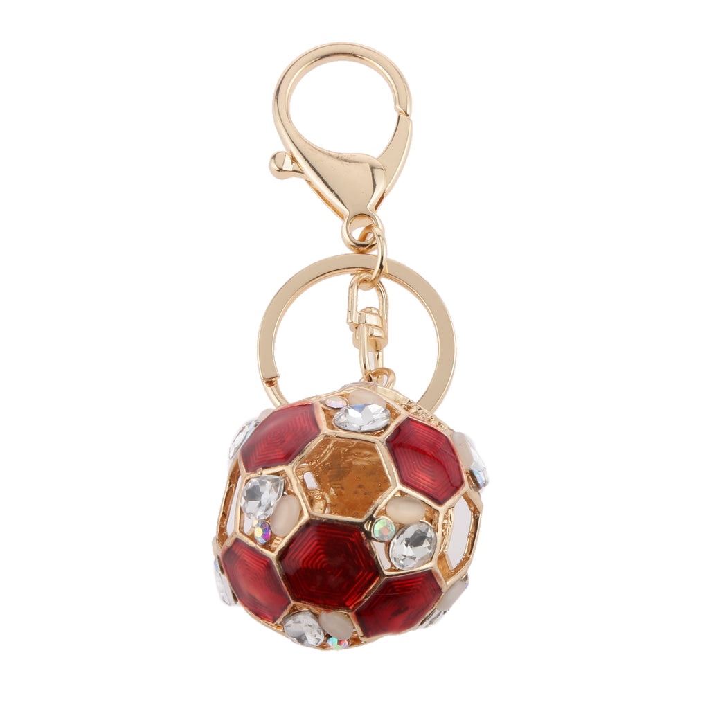 Fashion Rhinestone Crystal Red Football Soccer Charm Purse Bag Key Ring Keychain Keyfob