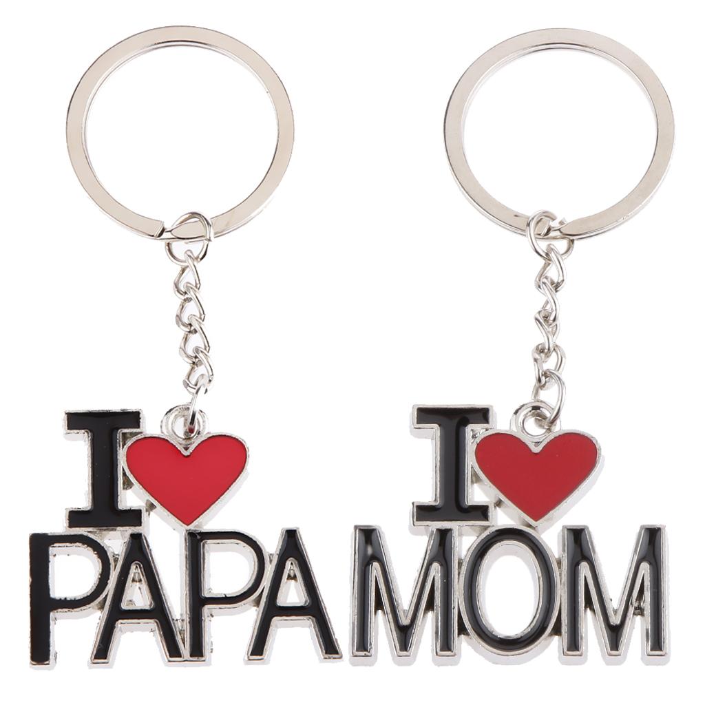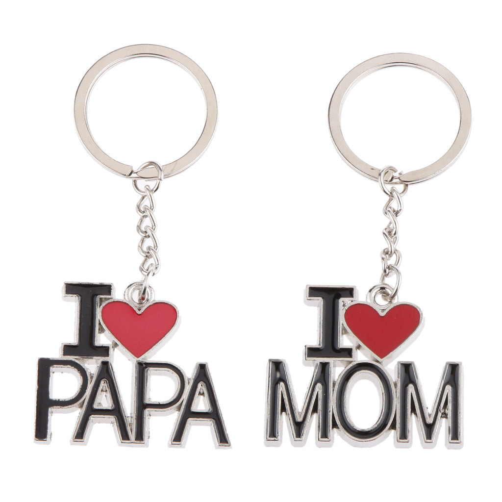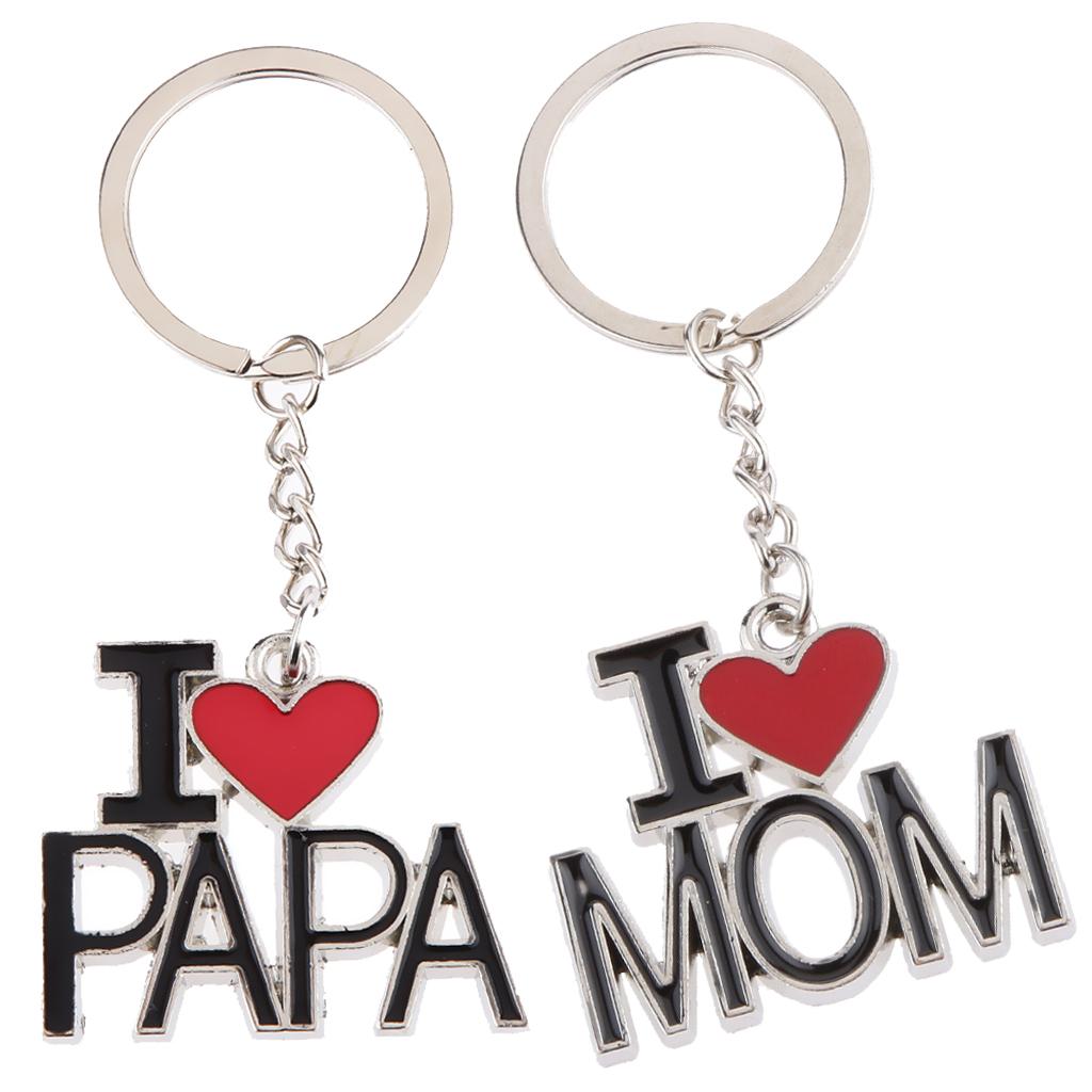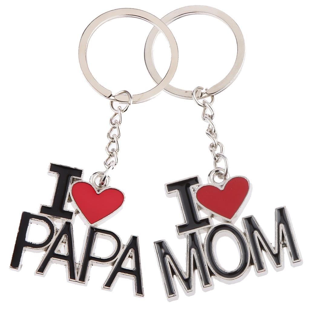 I LOVE MOM and I LOVE PAPA Lettering Charm Pendant Keyring Keychain Key Ring Chain Collectibles Gift