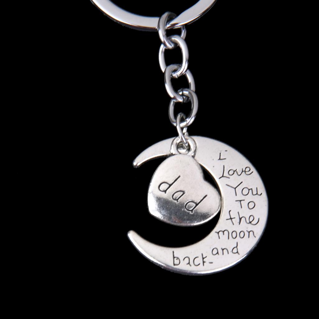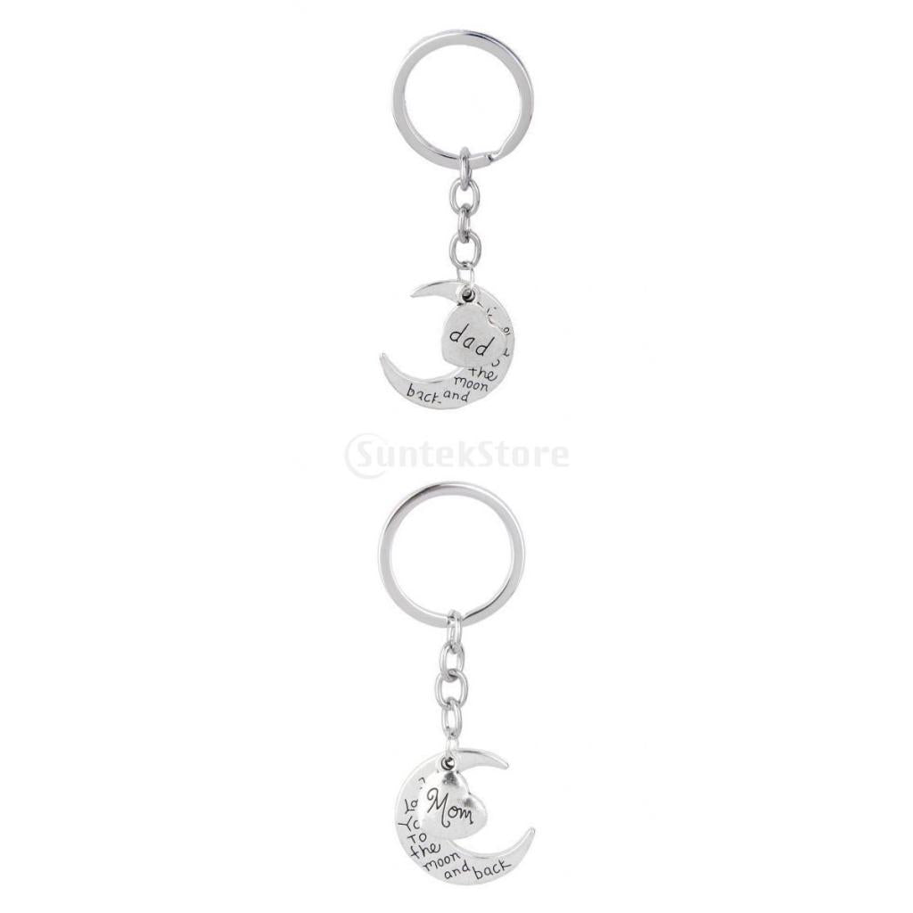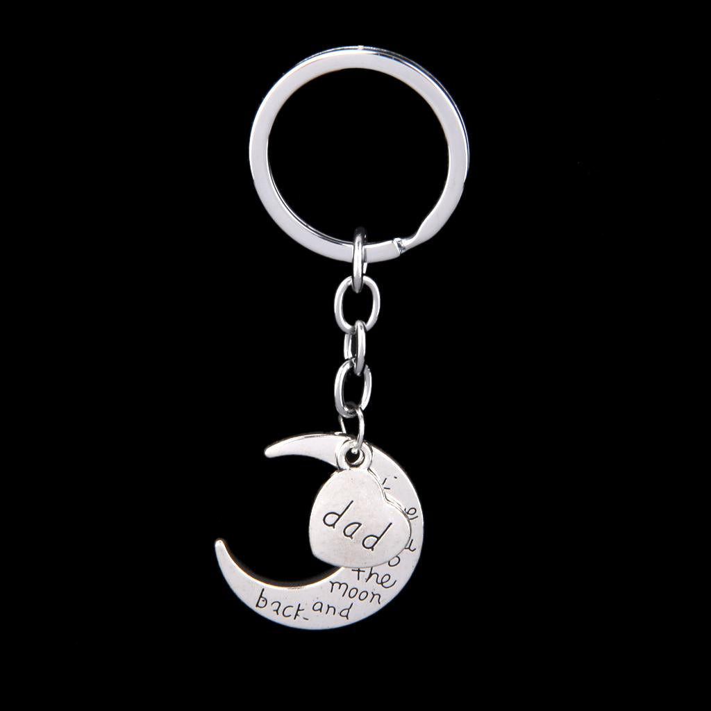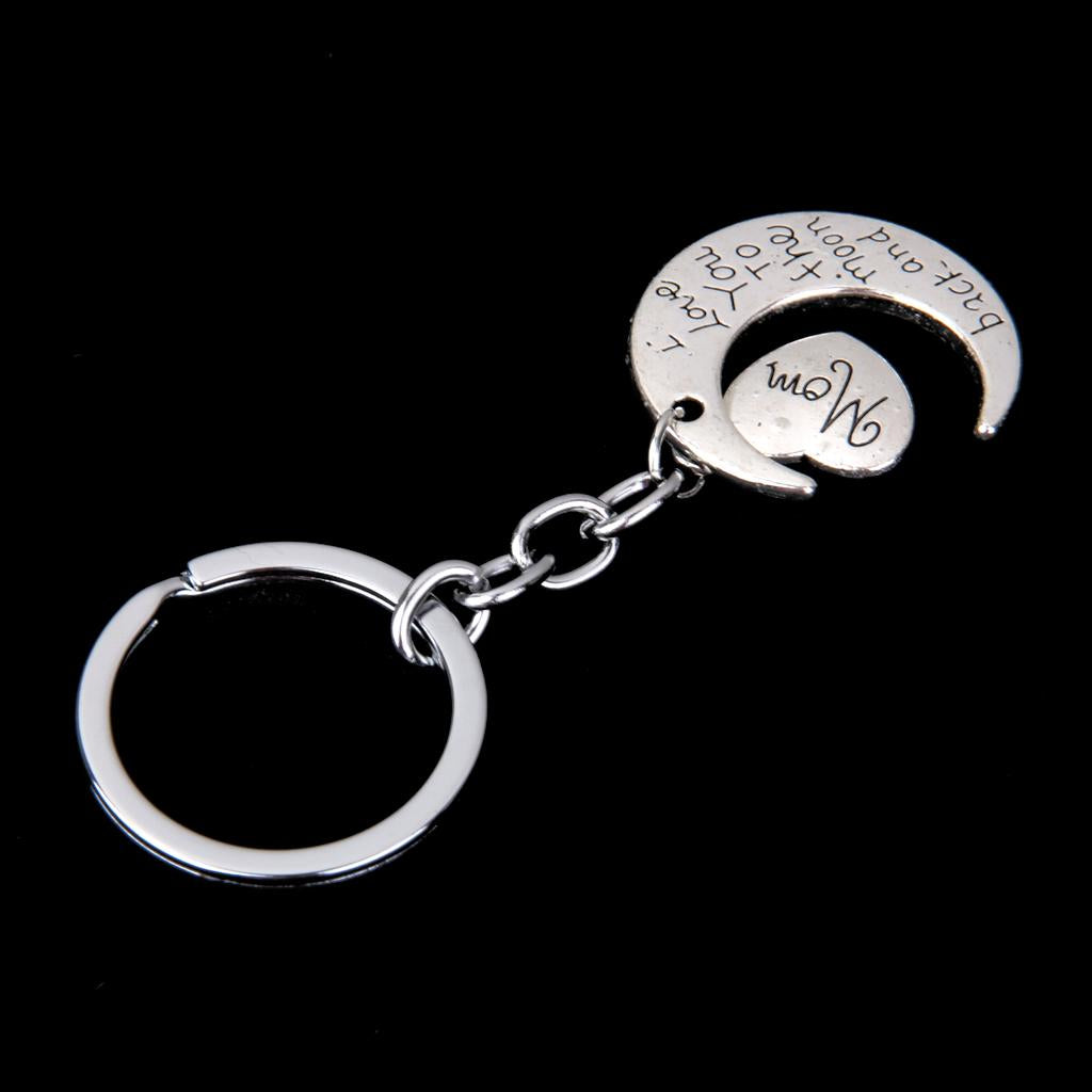 I LOVE YOU TO THE MOON AND BACK MOM DAD Heart Pendant Keyring Keychain Father Mothers Day Gift
