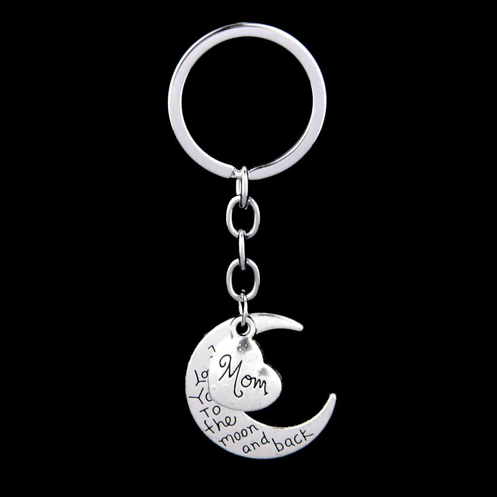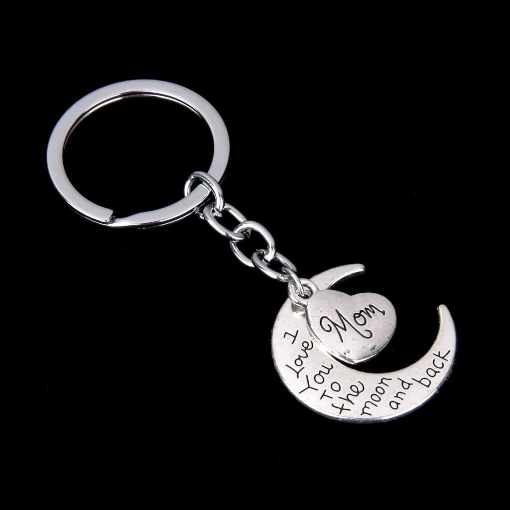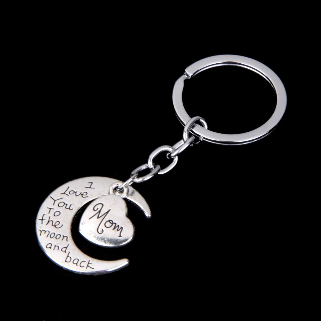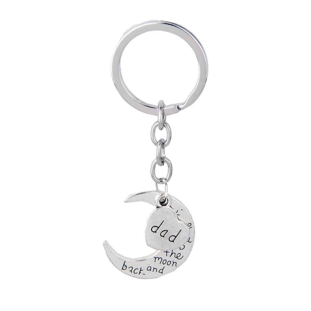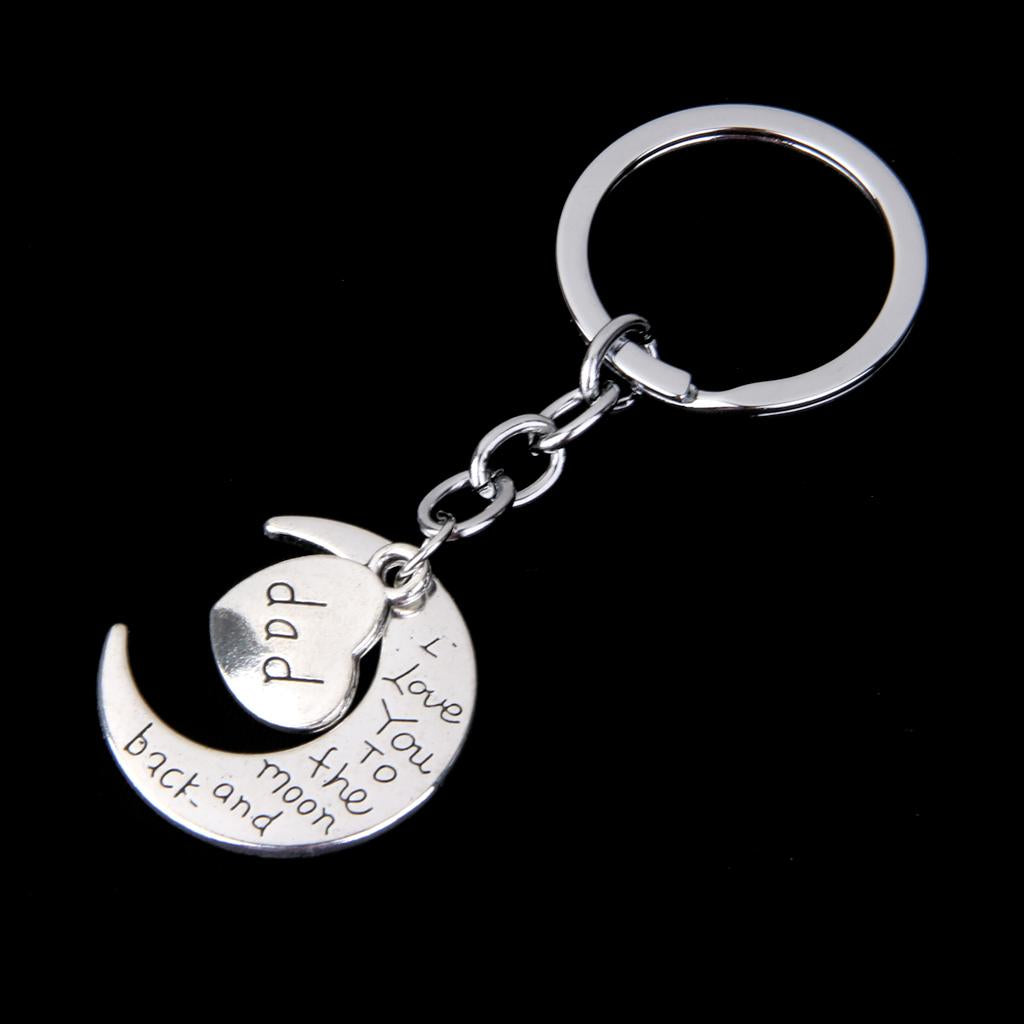 I LOVE YOU TO THE MOON AND BACK MOM DAD Heart Pendant Keyring Keychain Father Mothers Day Gift
